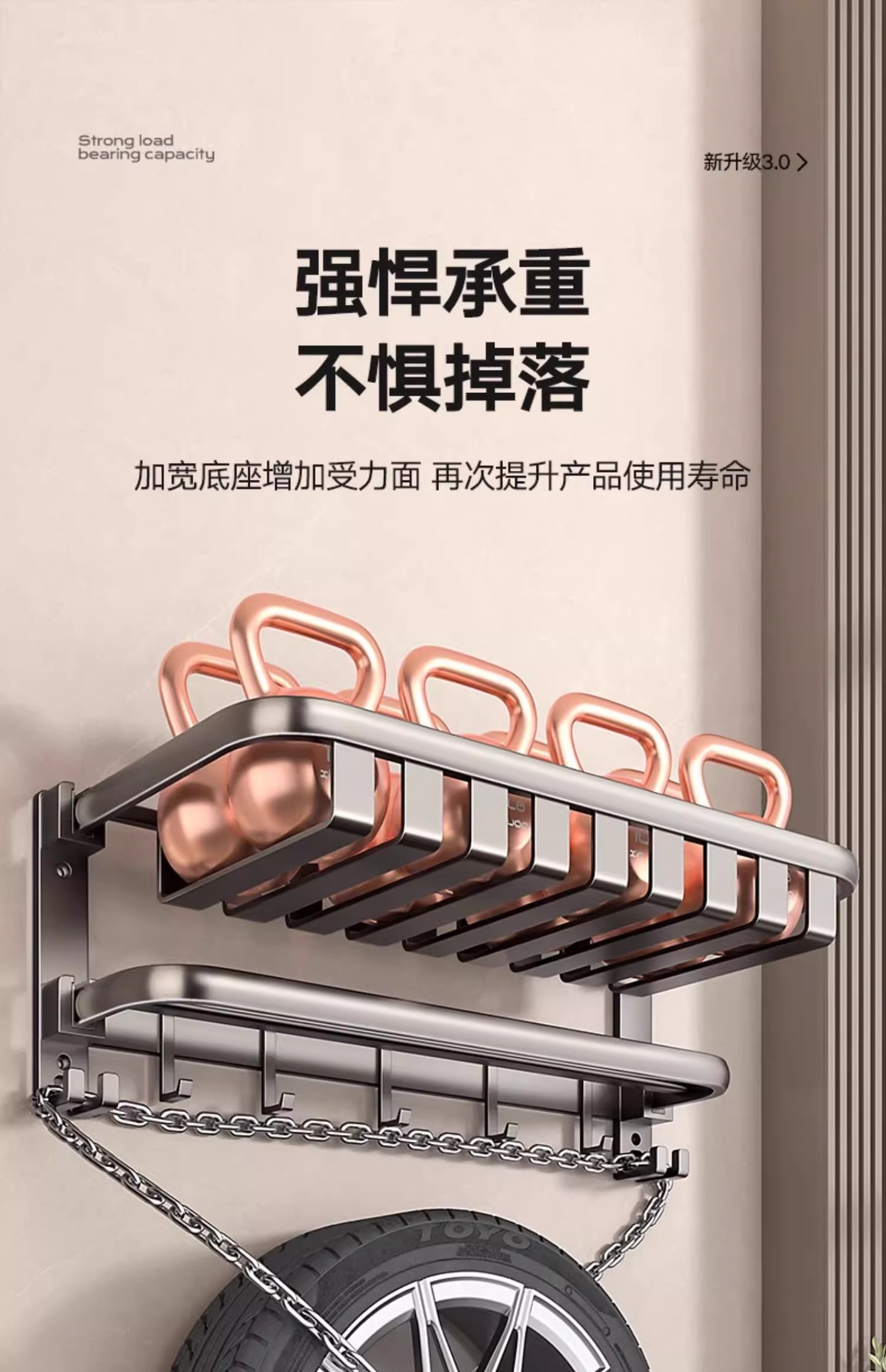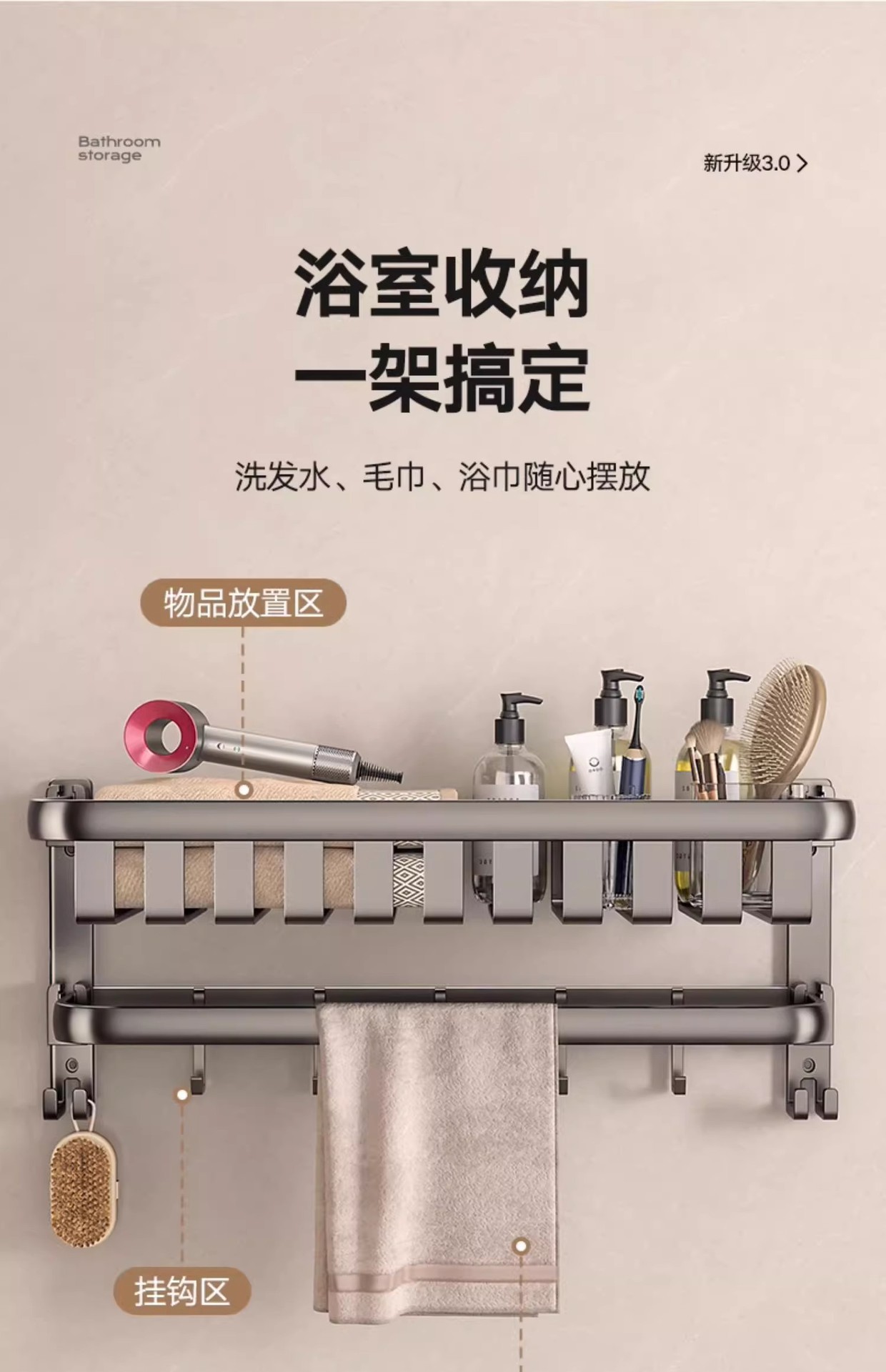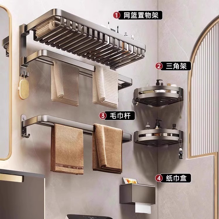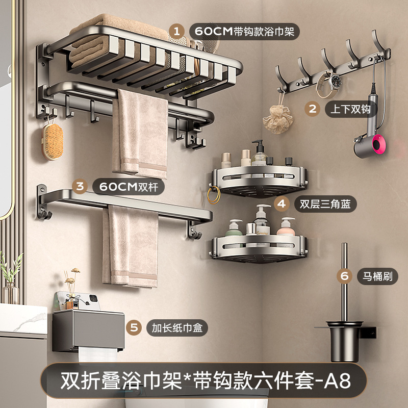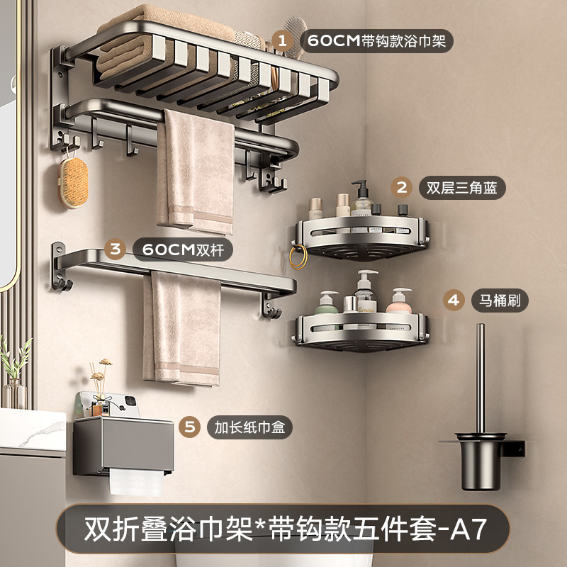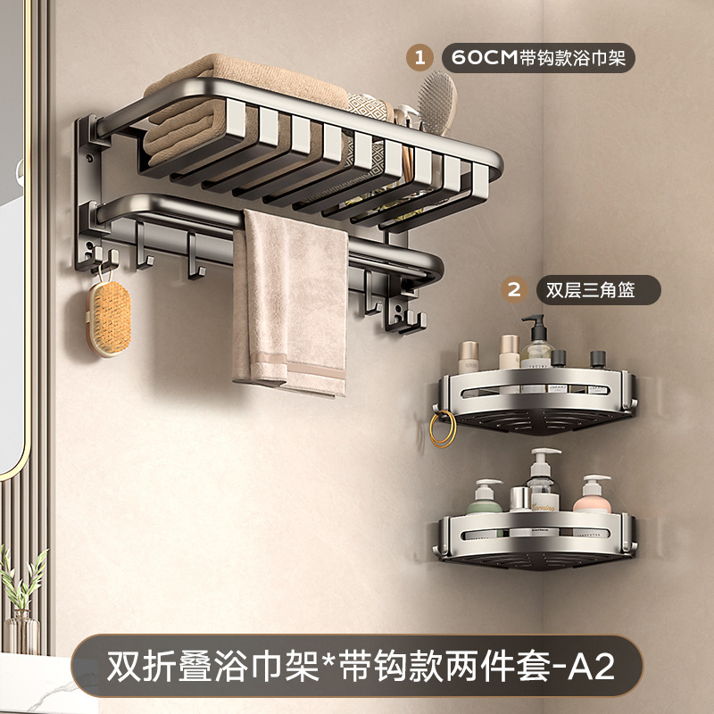 총 회색 공간 알루미늄 수건 랙 목욕 타월 랙 접히는 펀치 없는 화장실 화장실 욕실 화장실 랙스토어 가기