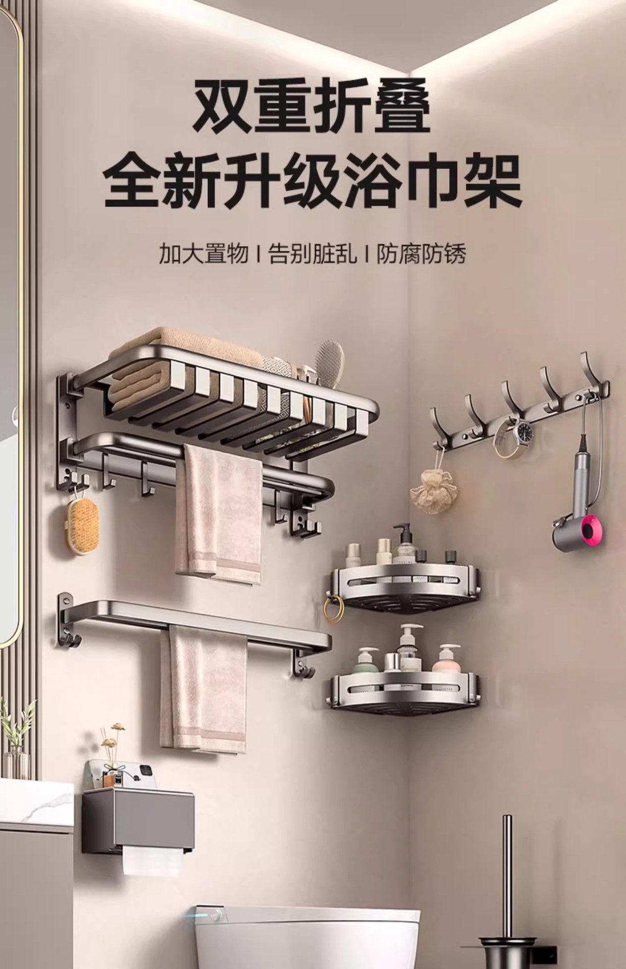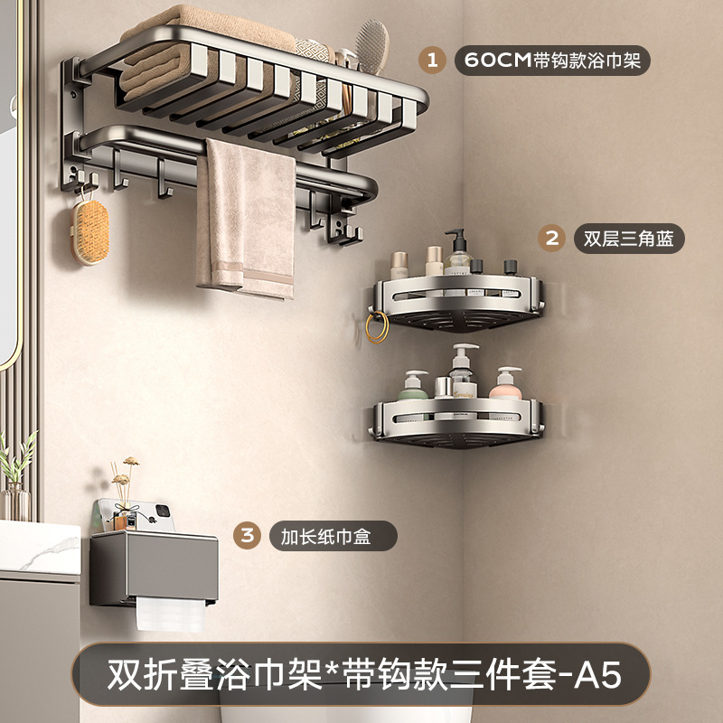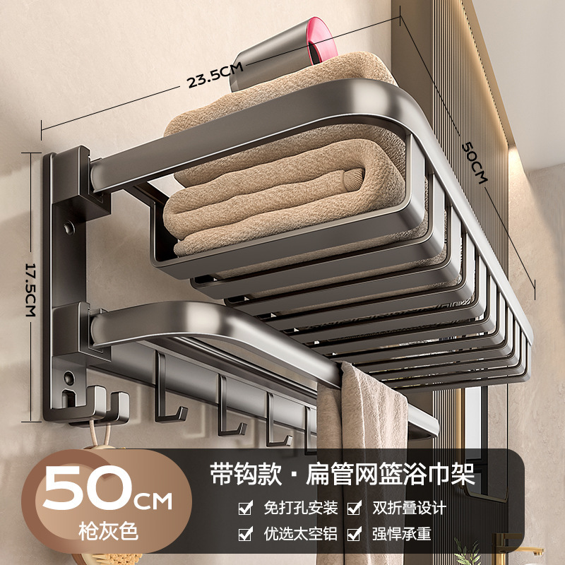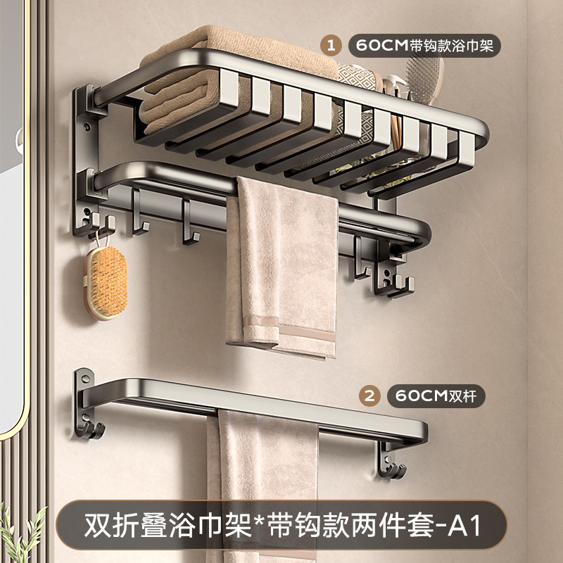 총 회색 공간 알루미늄 수건 랙 목욕 타월 랙 접히는 펀치 없는 화장실 화장실 욕실 화장실 랙