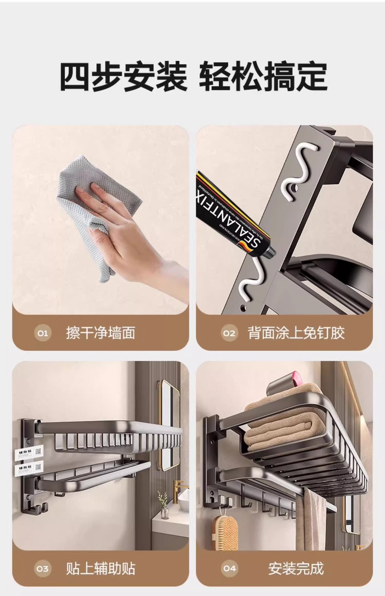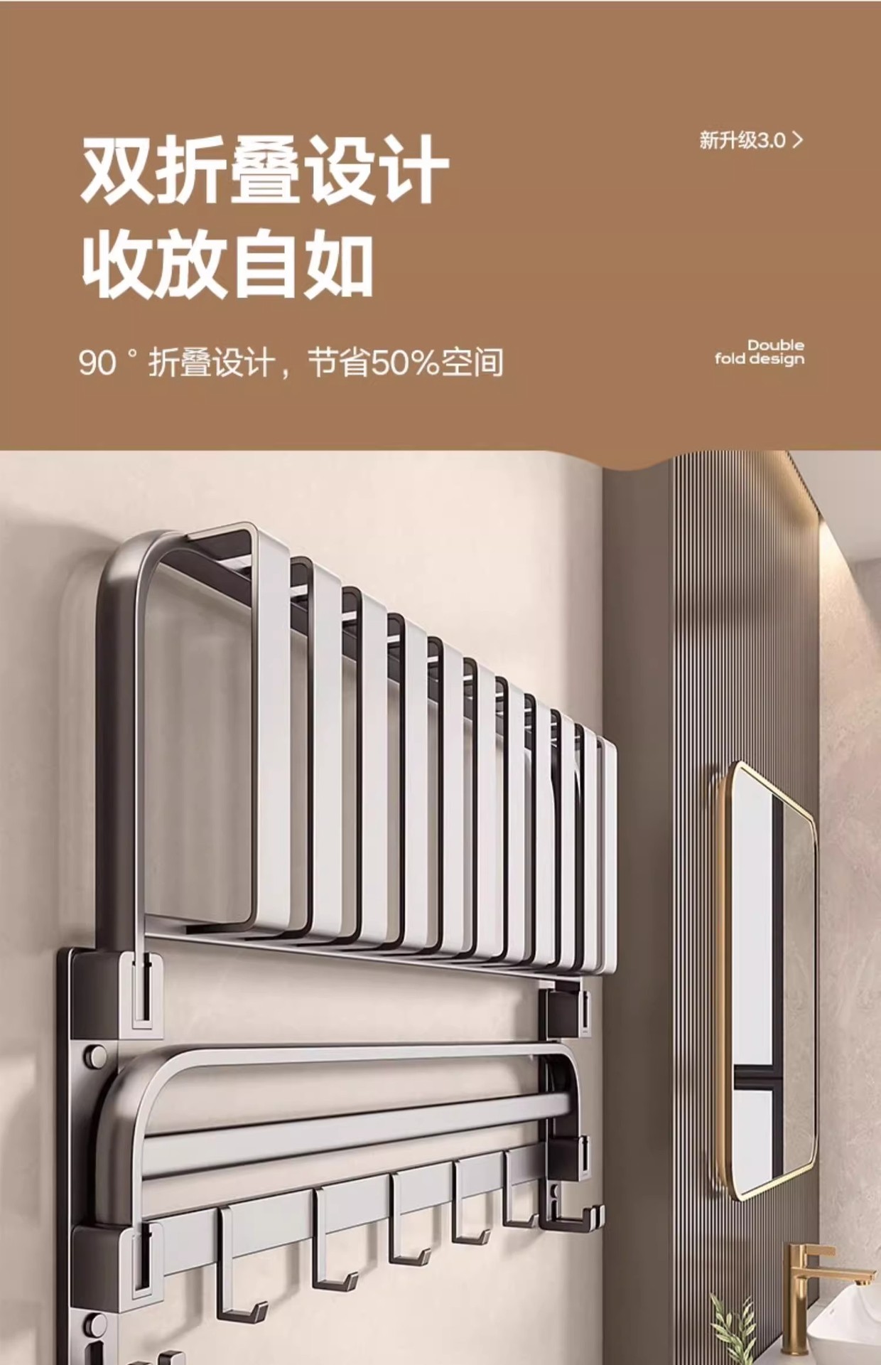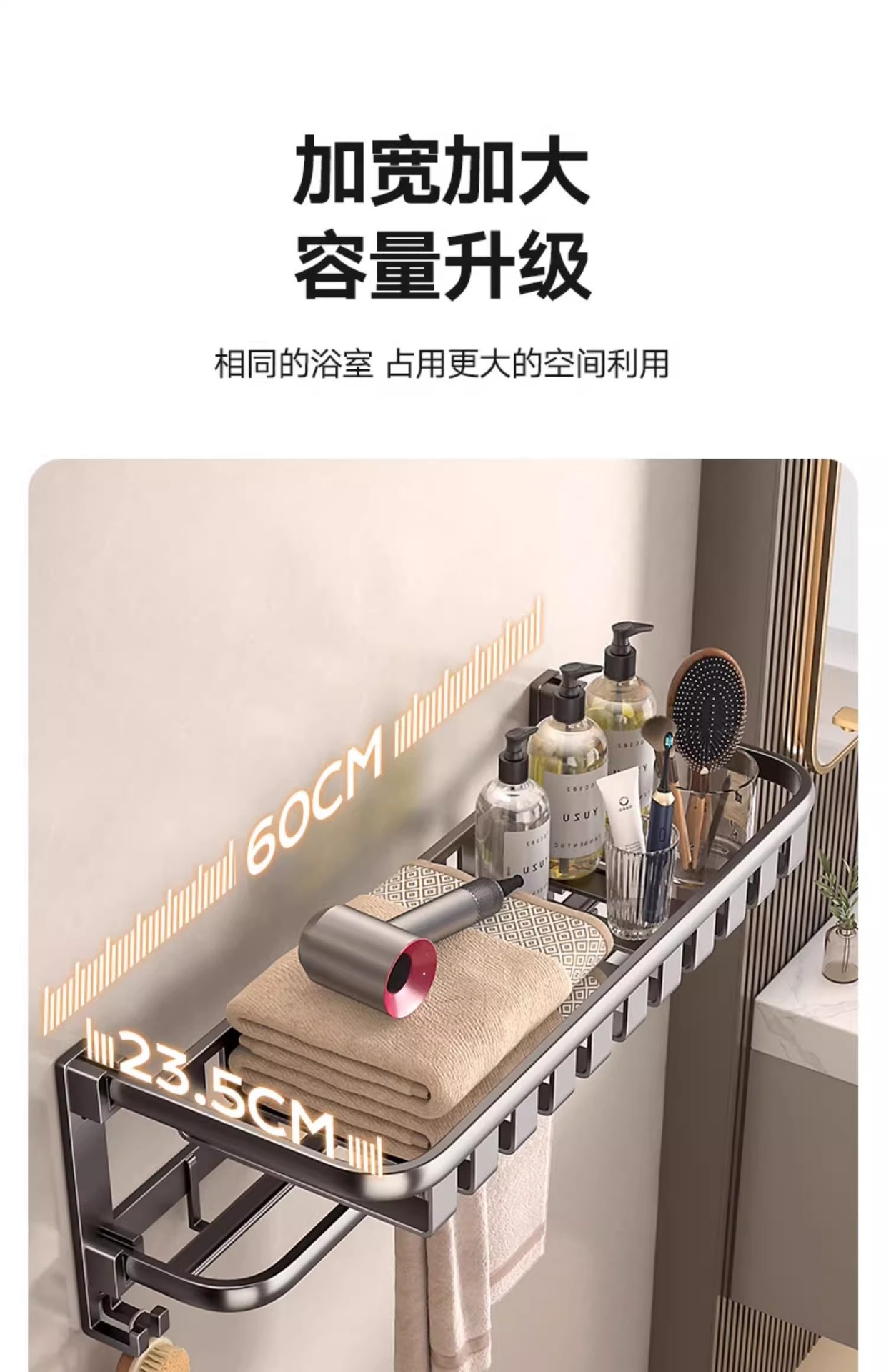 총 회색 공간 알루미늄 수건 랙 목욕 타월 랙 접히는 펀치 없는 화장실 화장실 욕실 화장실 랙