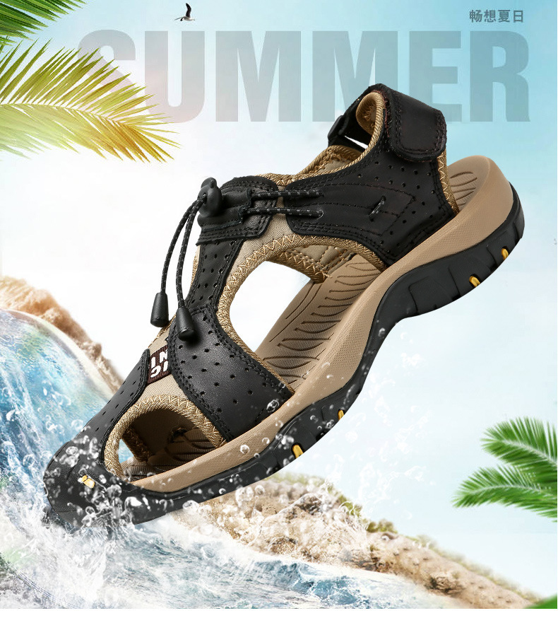 국경 2022 년 여름 새로운 통기성 Baotou 비치 신발 유행 남성 중공 샌들 남성 신발 대형스토어 가기
