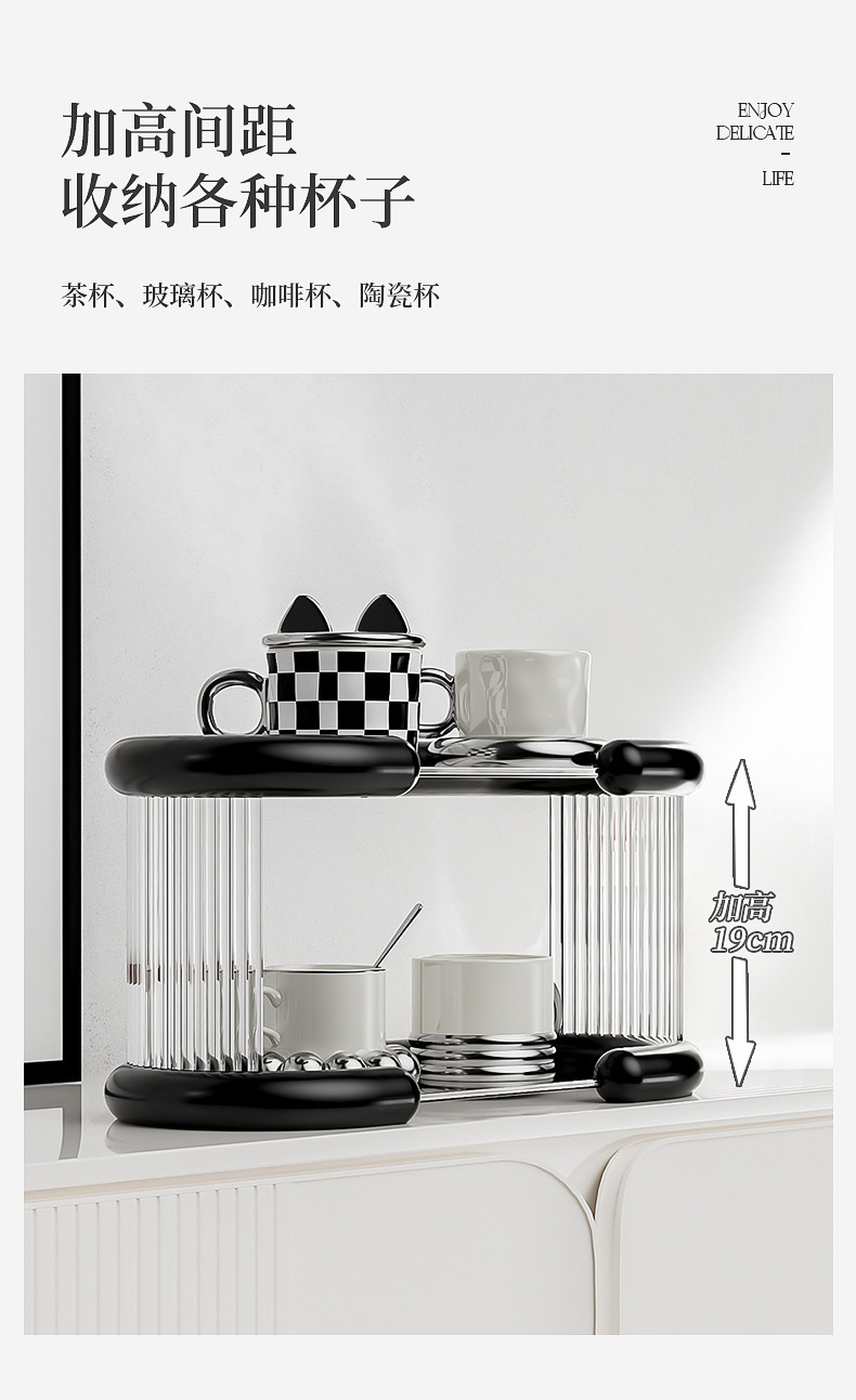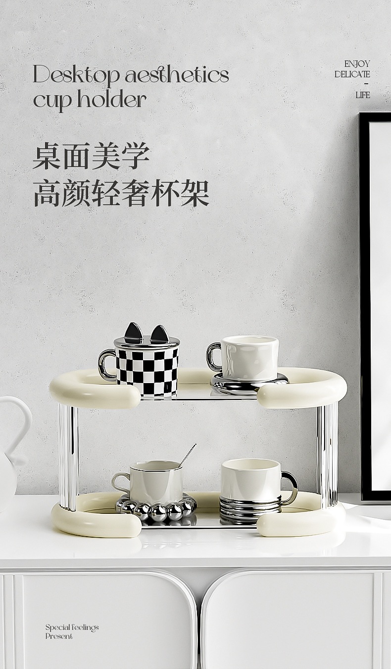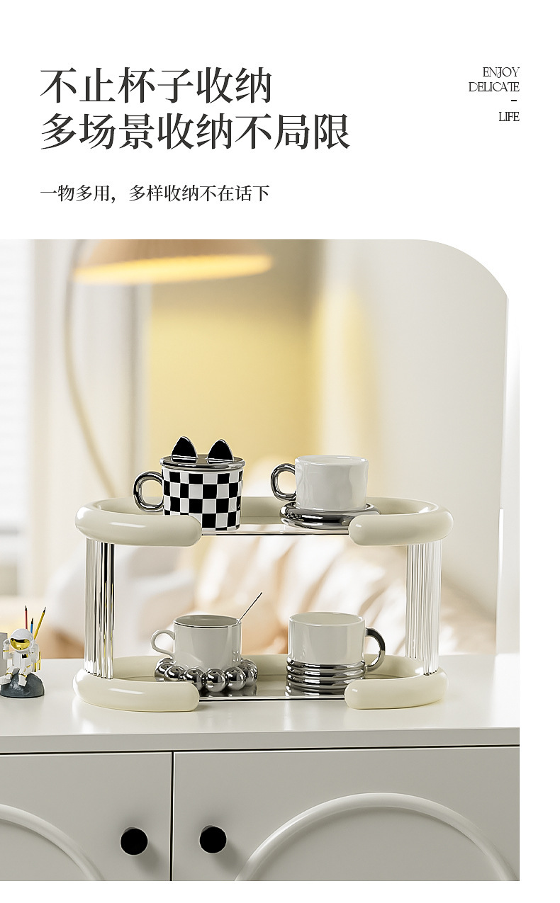 하이 엔드 라이트 럭셔리 워터 컵 스토리지 랙 티룸 컵 배열 랙 데스크탑 더블 레이어 머그 스토리지 랙