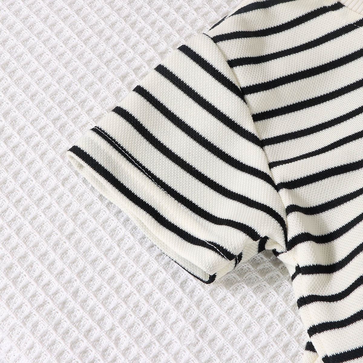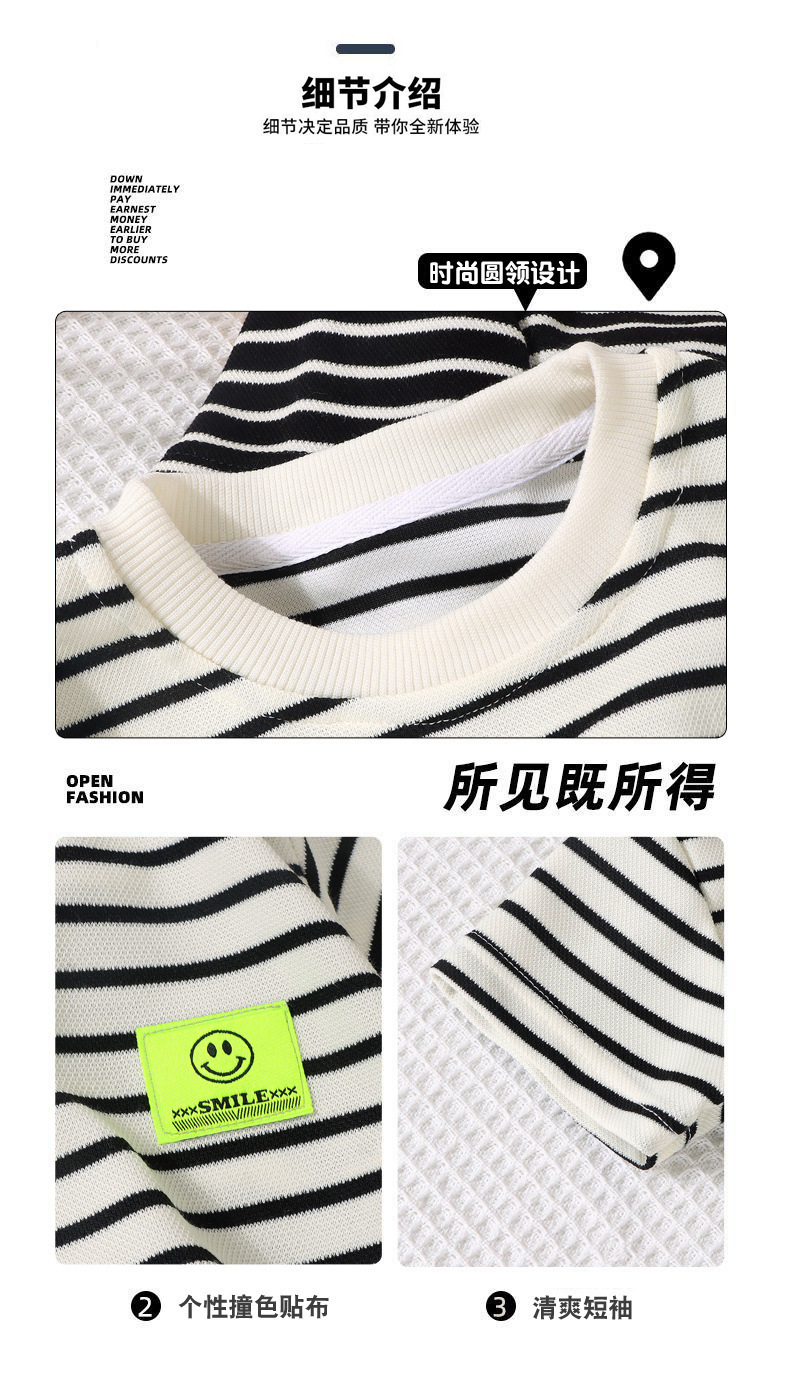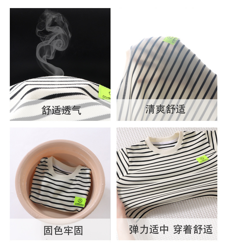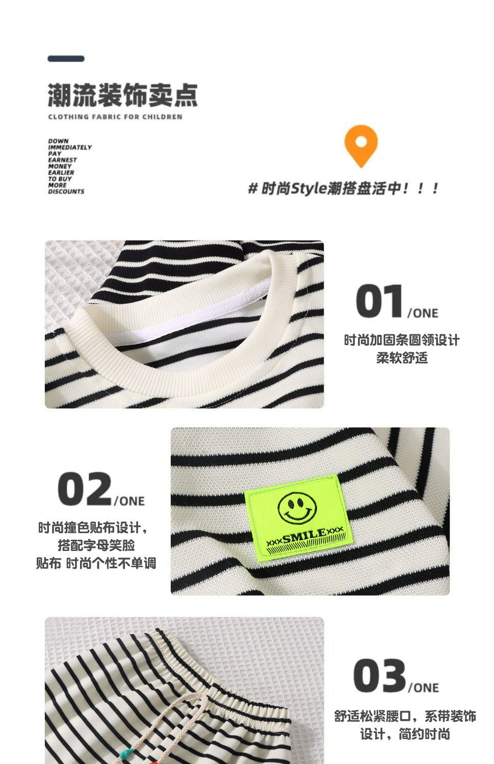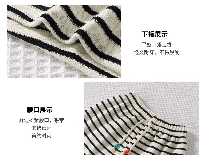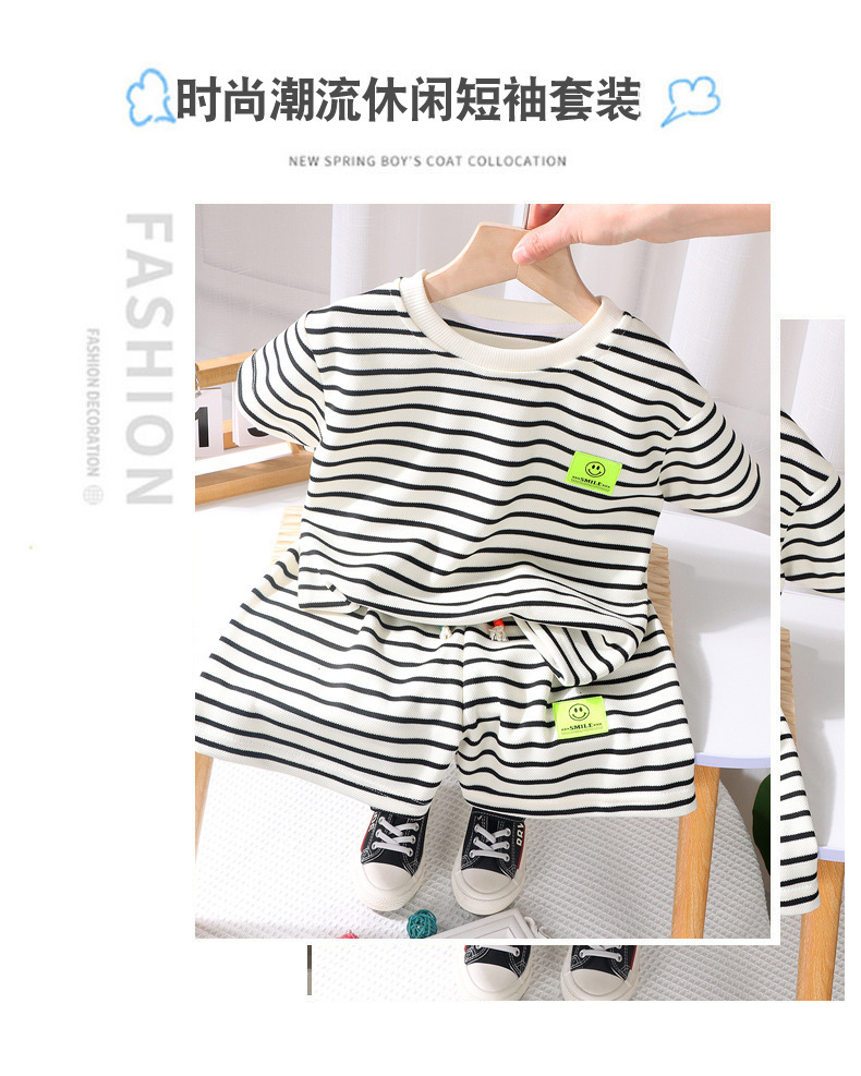 2024 여름 아동 스트라이프 반팔 세트 캐주얼 패션 티셔츠 신상 한국 스타일 홈웨어 한국 스타일 트렌디 아동복