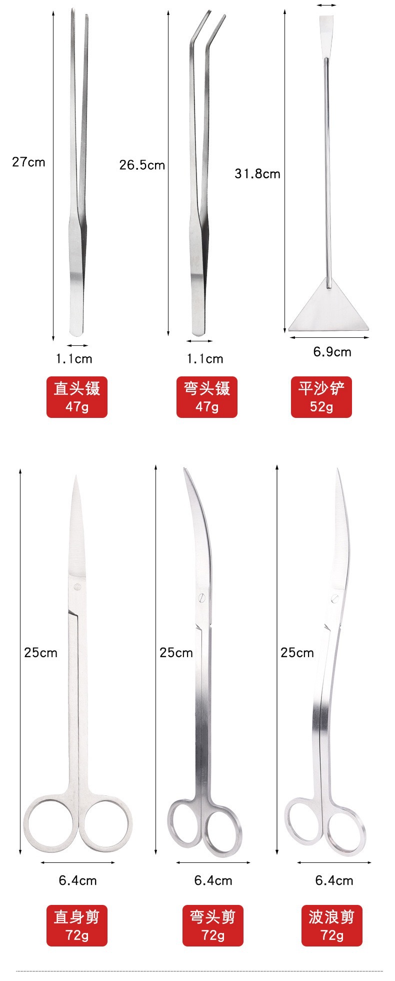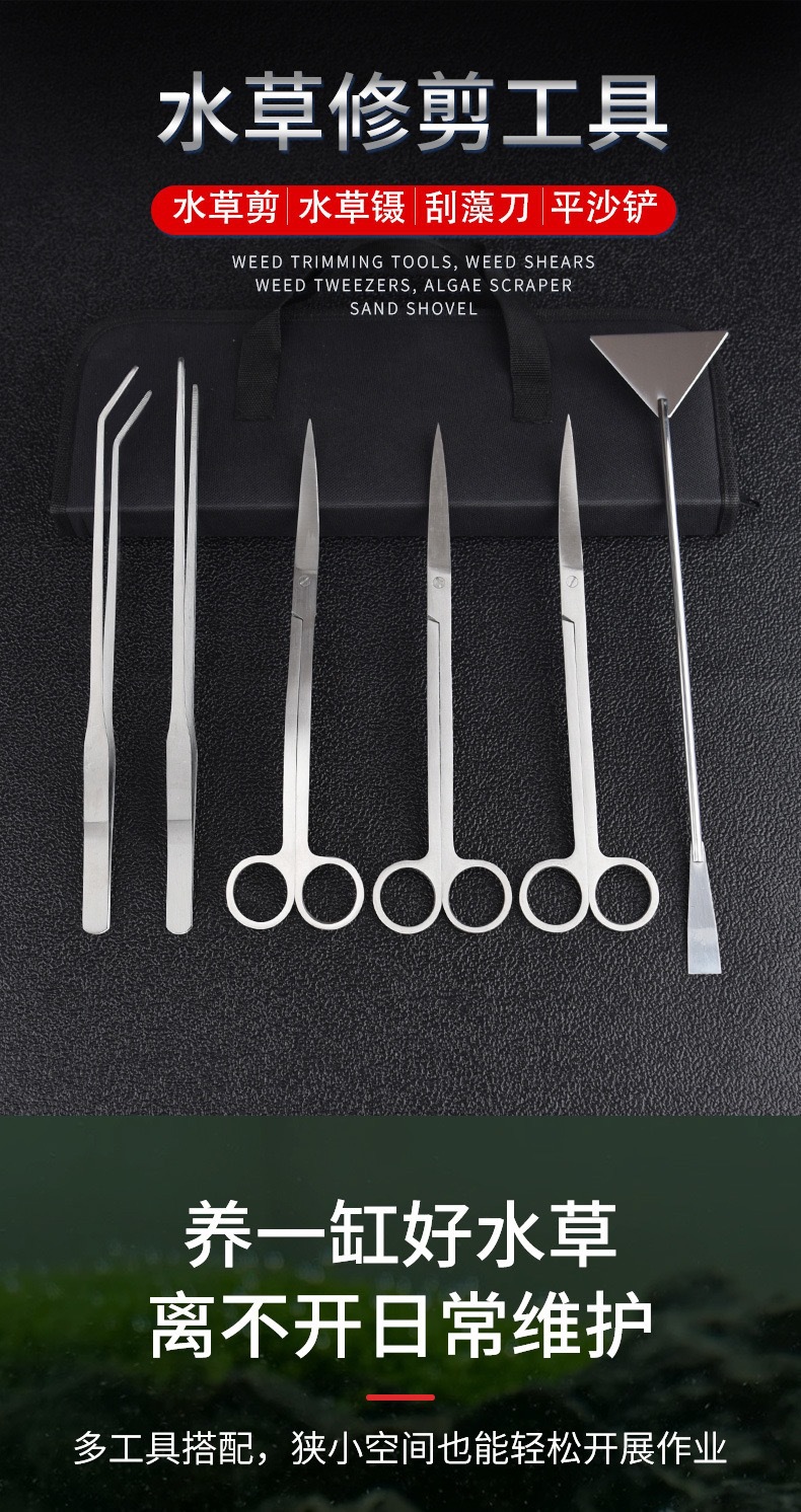 수족관 조경 도구 세트 물 잔디 핀셋 가위 스테인레스 스틸 클립 플랫 모래 삽 어항 긁는 조류 칼 도매