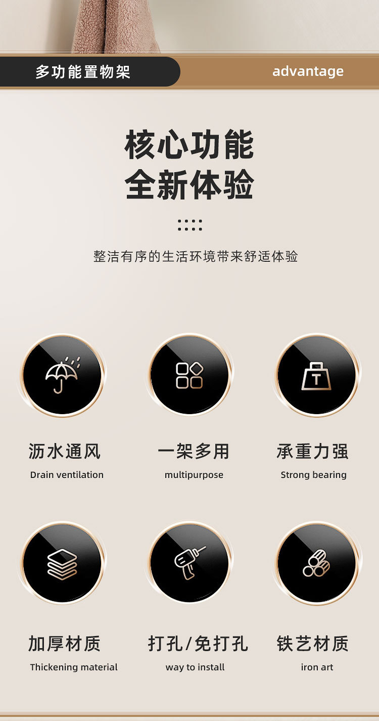 펀치 프리 아이언 트라이앵글 스토리지 랙 욕실 배수 랙 벽걸이 화장실 보관 및 마무리스토어 가기