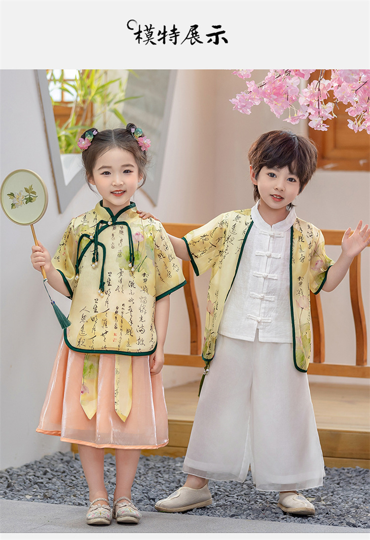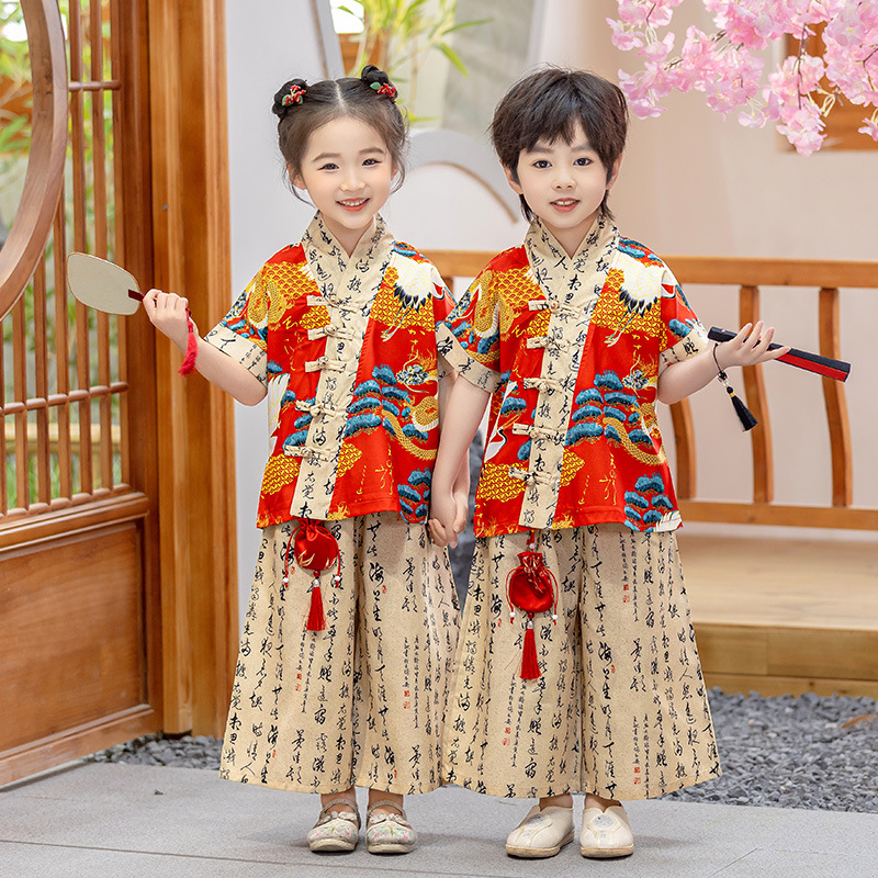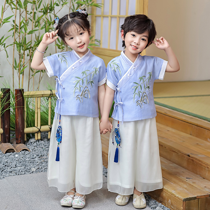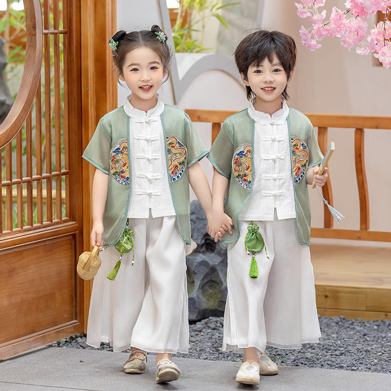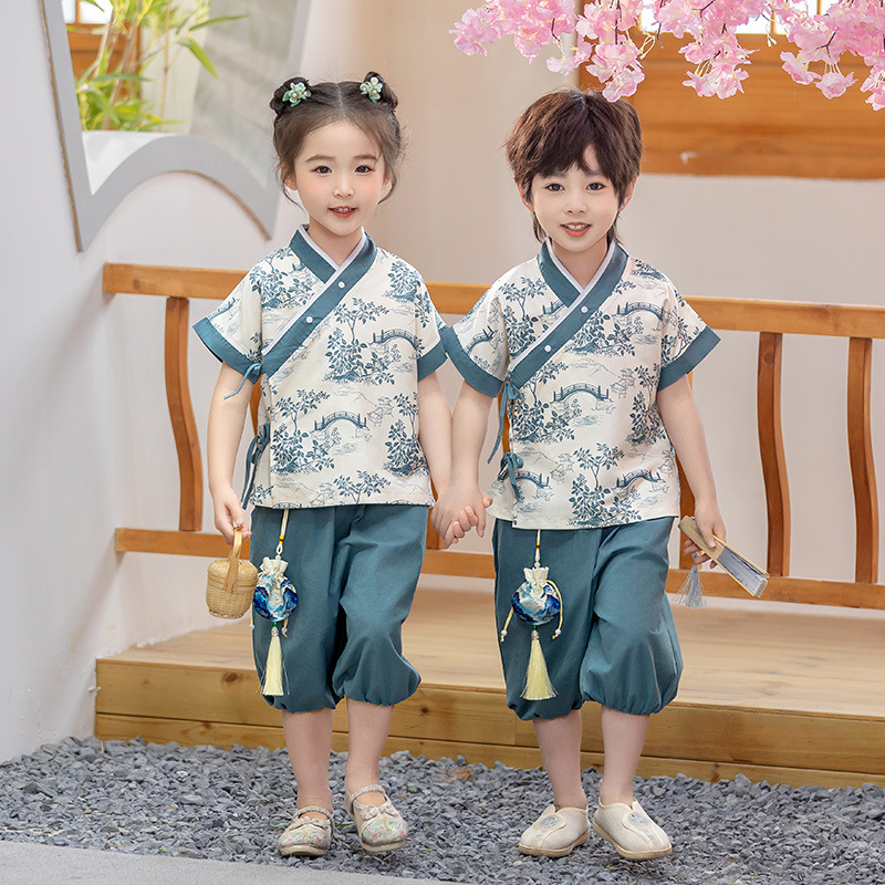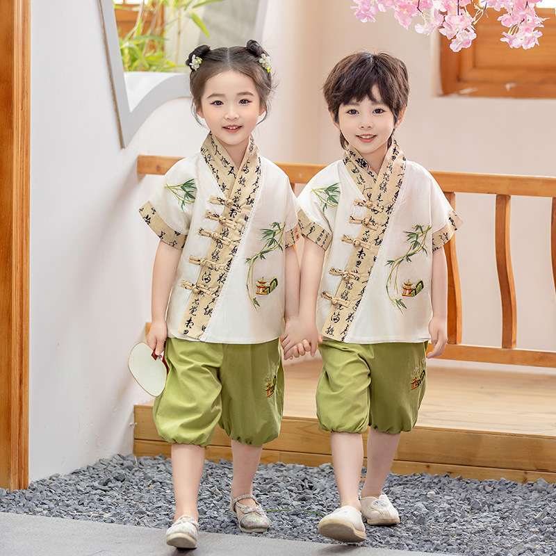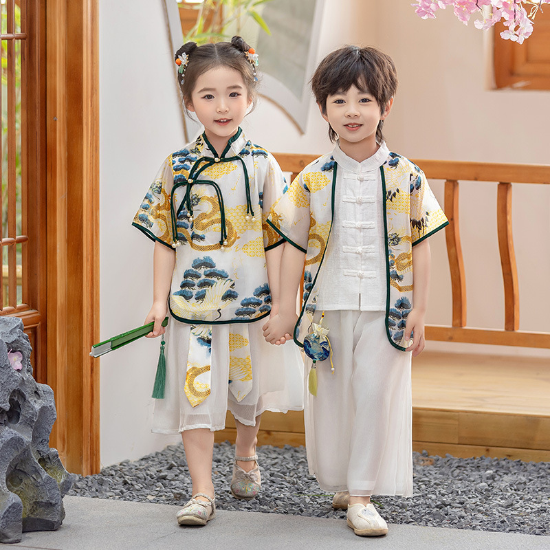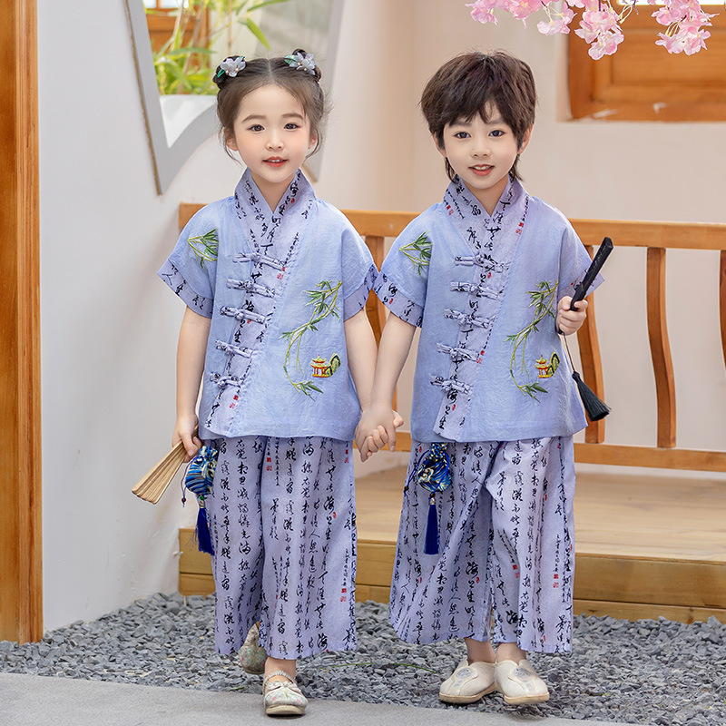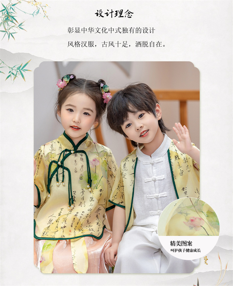 어린이 Hanfu 소년 중국 스타일 고대 의상 여름 소녀 당나라 정장 부모-자식 유치원 초등학생 민족 공연 의상
