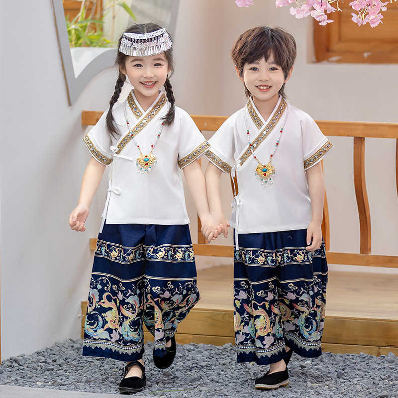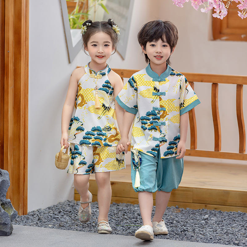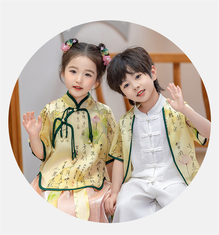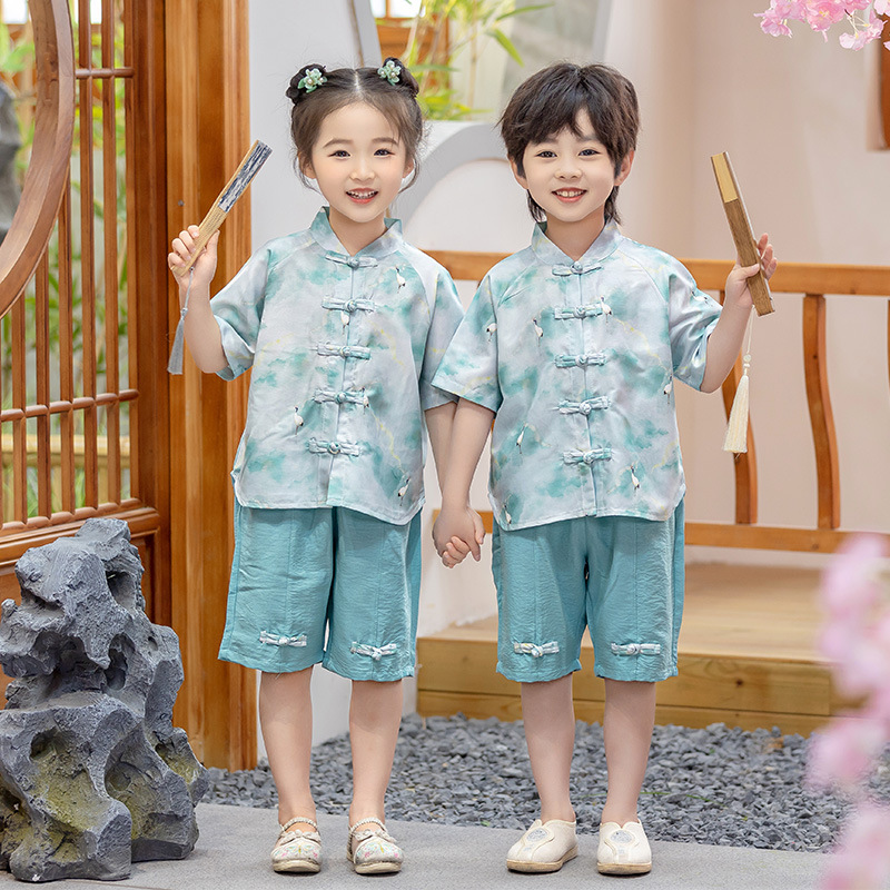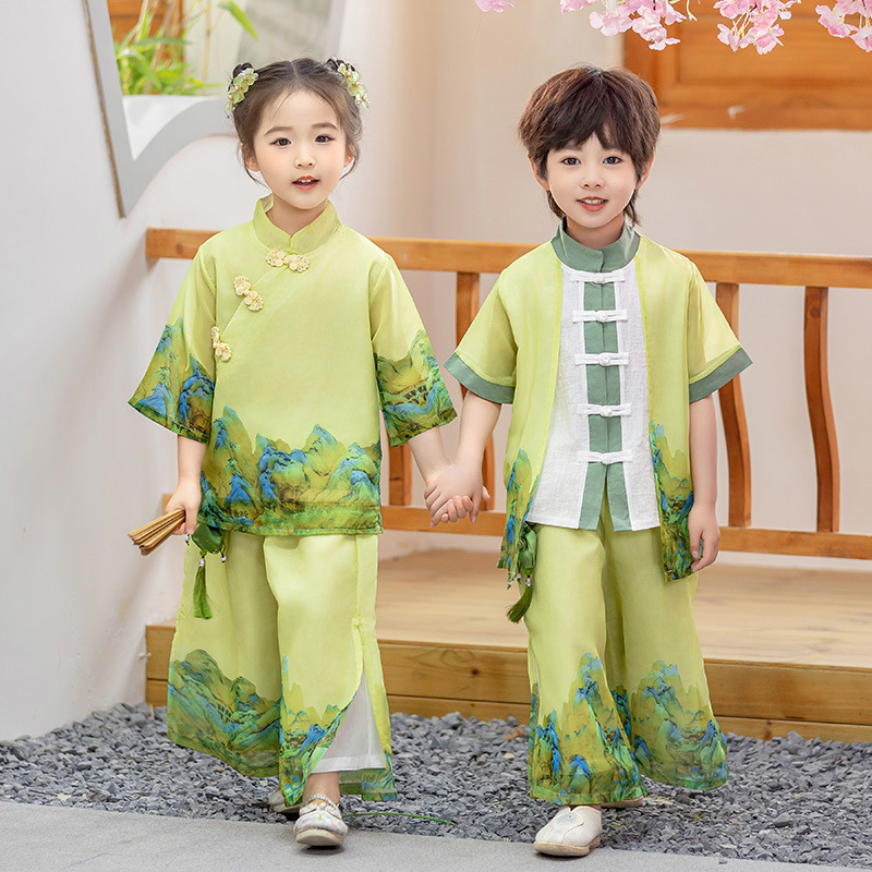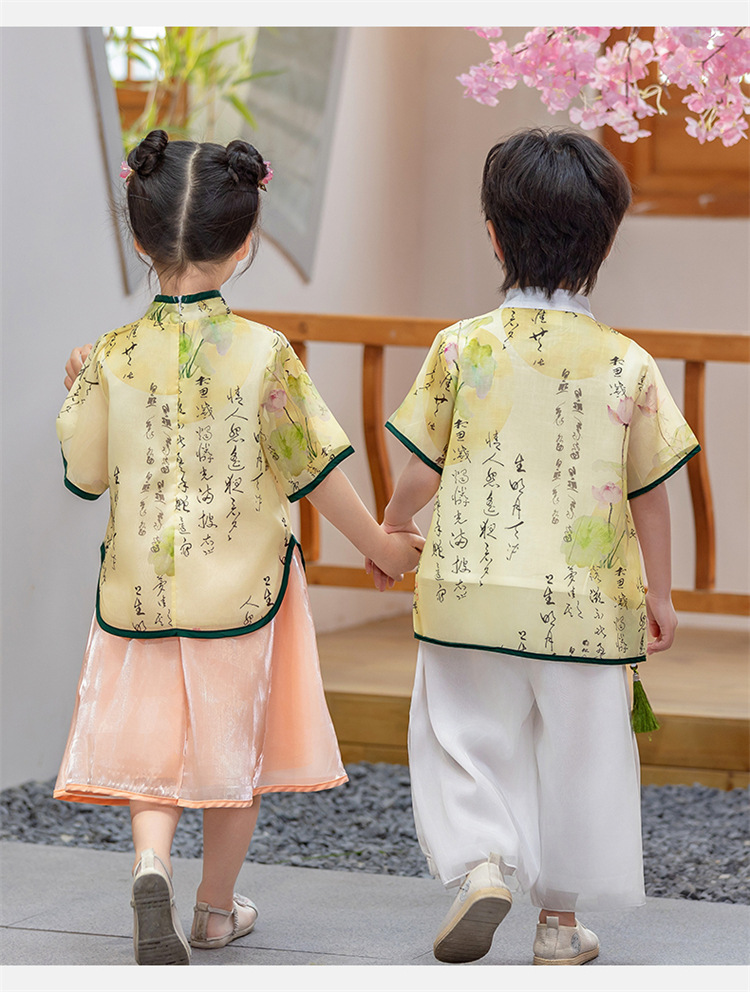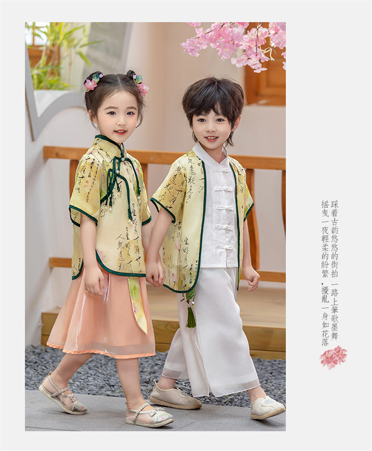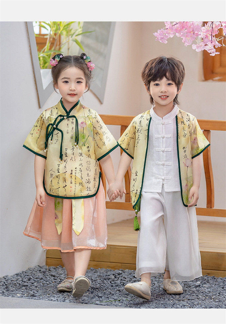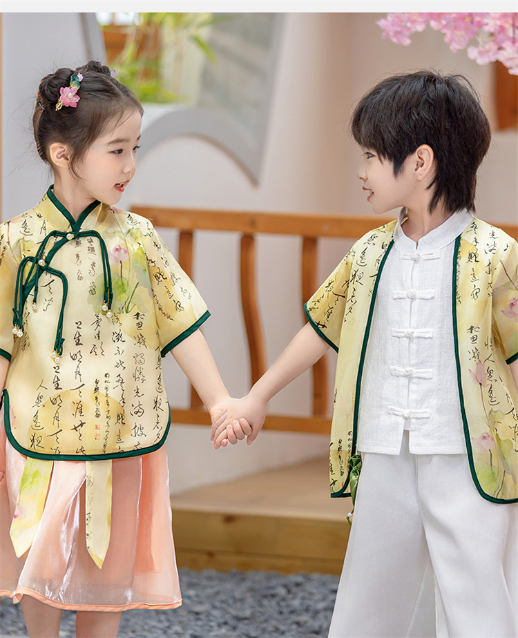 어린이 Hanfu 소년 중국 스타일 고대 의상 여름 소녀 당나라 정장 부모-자식 유치원 초등학생 민족 공연 의상
