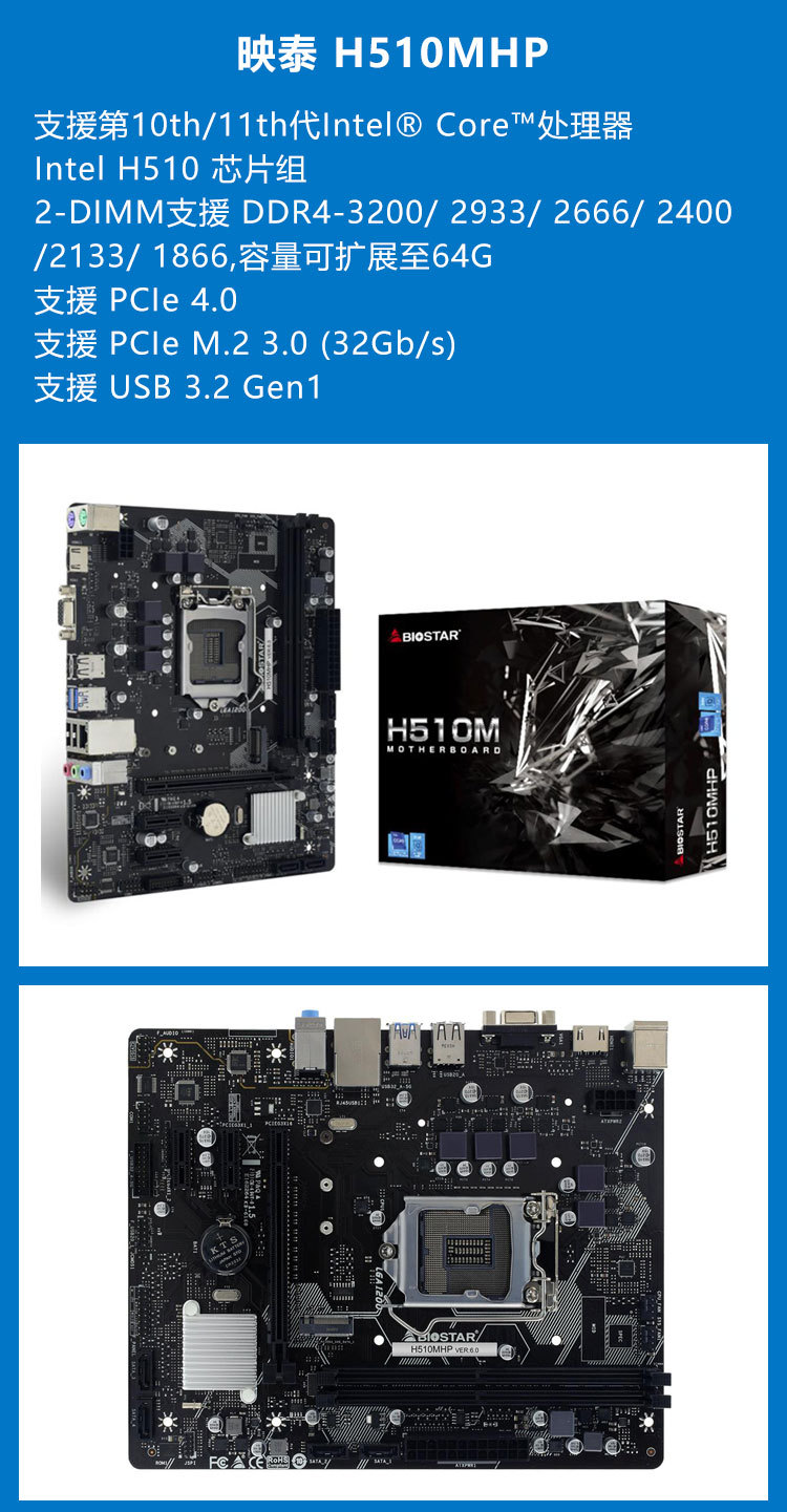 Yingtai H510MHP 데스크톱 컴퓨터 마더 보드 10105/10400/11400/11600K 프로세서 CPU에 적용 가능