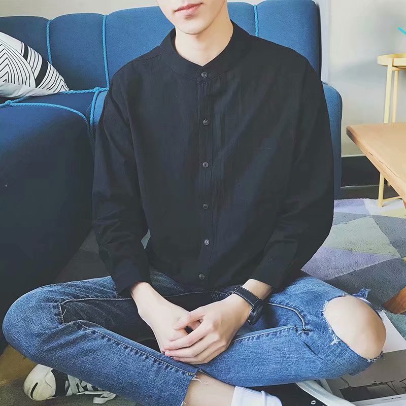 2021 년 봄 새로운 한국식 하라주쿠 BF 긴팔 셔츠 남성용 홍콩 스타일 코튼 앤 리넨 캐주얼 루즈 셔츠 트렌디스토어 가기