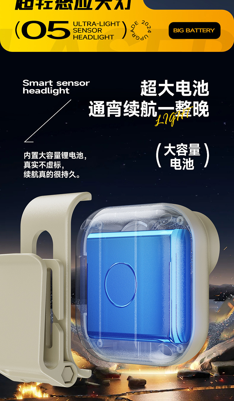 새로운 센서 헤드라이트, 휴대용, 강한 빛, 야외 캠핑, 낚시, 충전식, 방수, 긴 배터리 수명, 미니 작업등스토어 가기