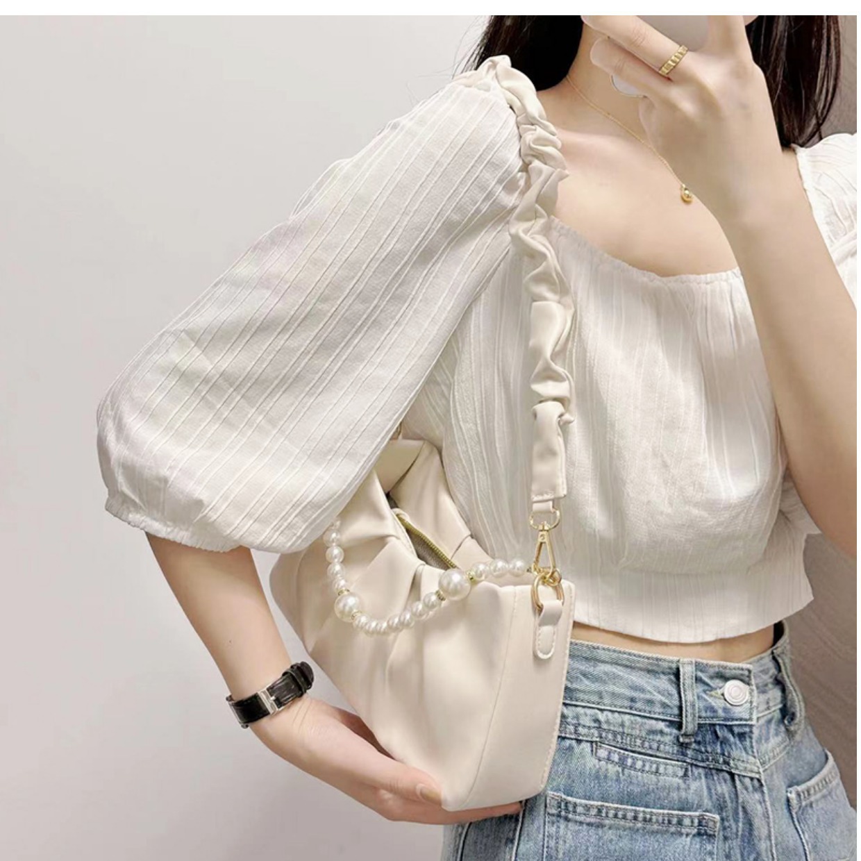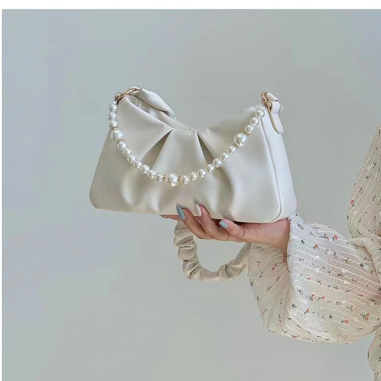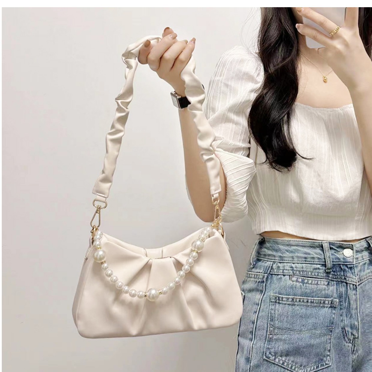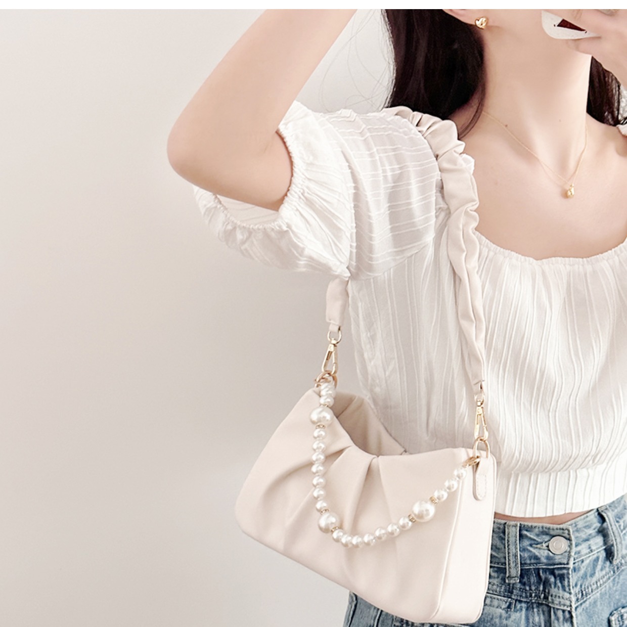 2025년 틈새 디자인 여성 가방 주름진 진주 구름 모양 숄더백 크로스백 핸드백 라이트 럭셔리 작은 사각 가방스토어 가기