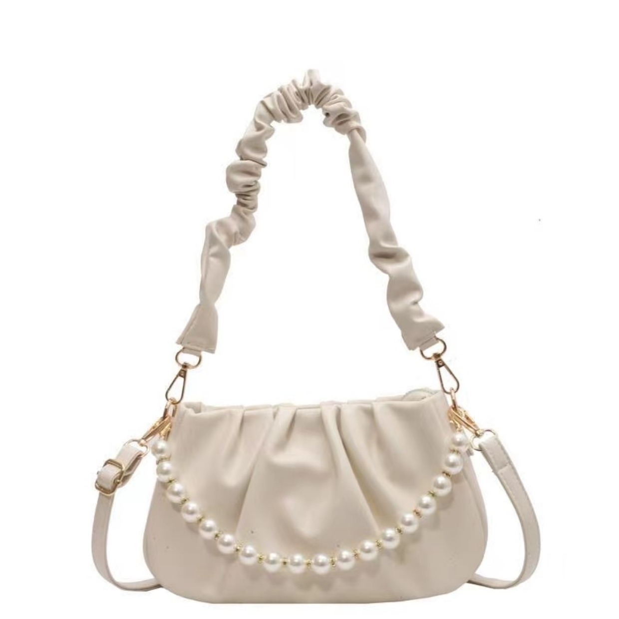 2025년 틈새 디자인 여성 가방 주름진 진주 구름 모양 숄더백 크로스백 핸드백 라이트 럭셔리 작은 사각 가방