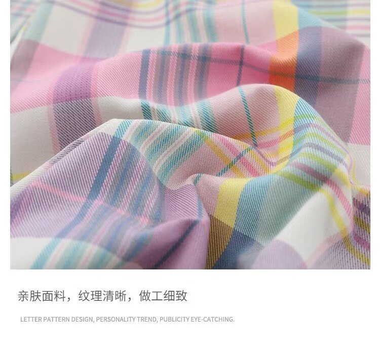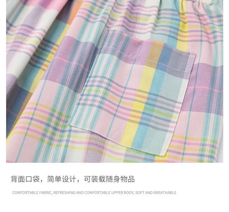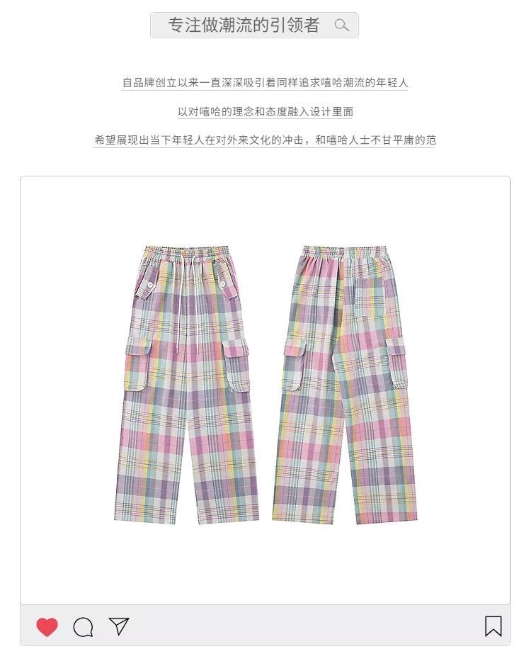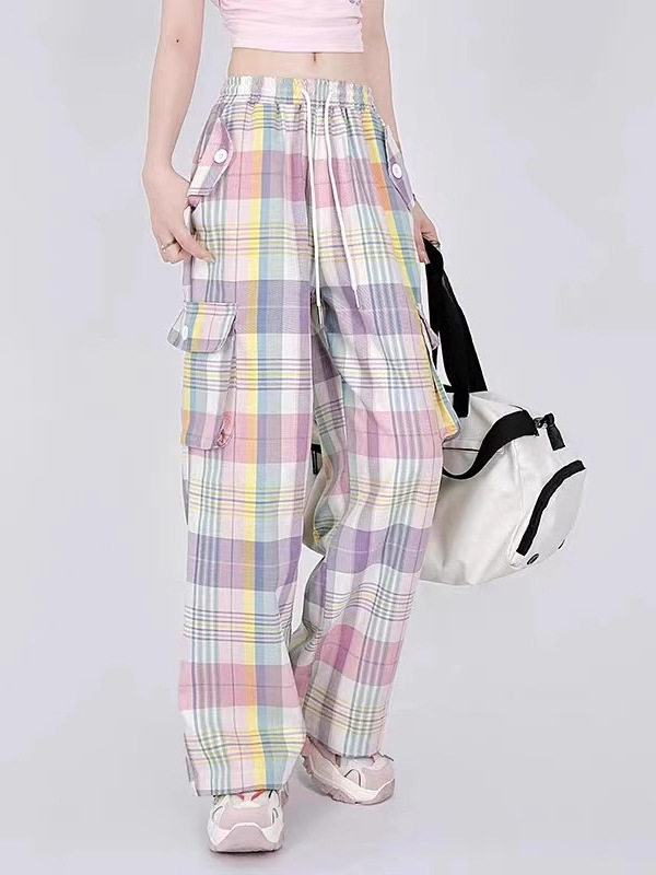 여자의 2024 새로운 여름 도파민 컬러 격자 무늬 캐주얼 바지 여자의 느슨한 스트레이트 올 매치 와이드 레그 오버올스토어 가기
