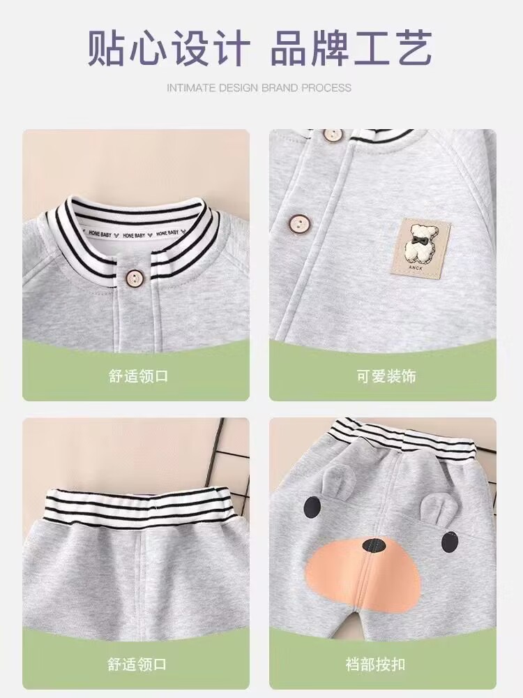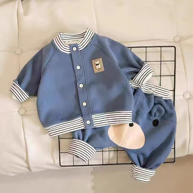 봄과 가을 소년과 소녀 아기 싱글 레이어 세트 만화 줄무늬 높은 허리 엉덩이 바지 어린이 코트 바지 한국 스타일 세트스토어 가기