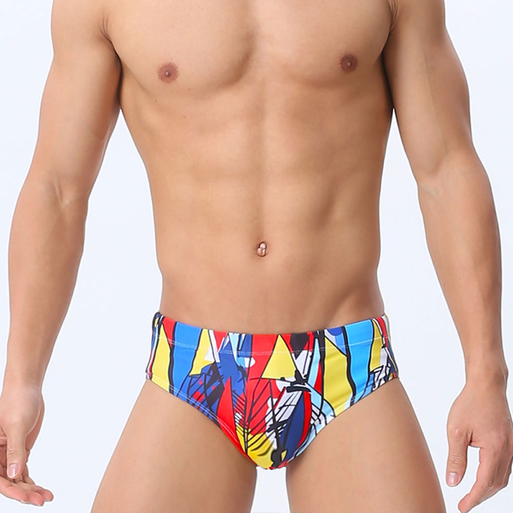 UXH 유럽과 미국의 예술 낙서 남자 삼각형 수영 트렁크 컵 섹시한 해변 휴가 빠른 건조 브리프스토어 가기