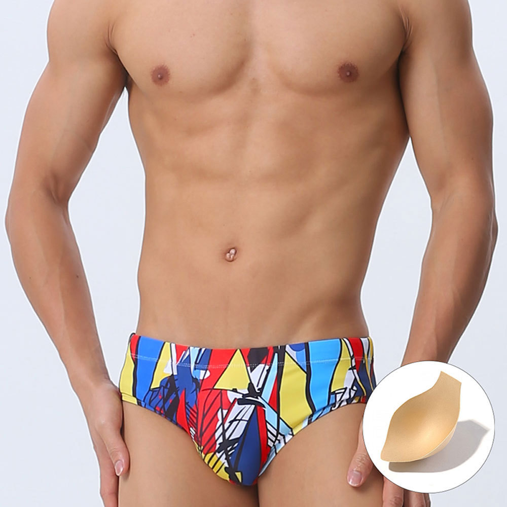 UXH 유럽과 미국의 예술 낙서 남자 삼각형 수영 트렁크 컵 섹시한 해변 휴가 빠른 건조 브리프