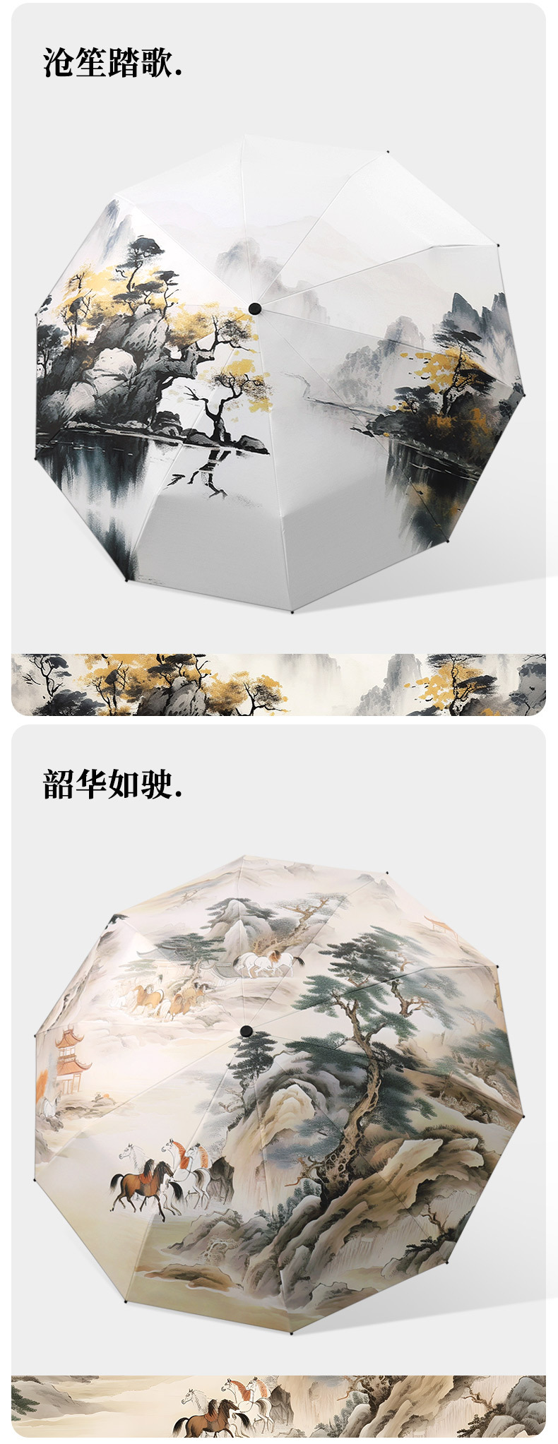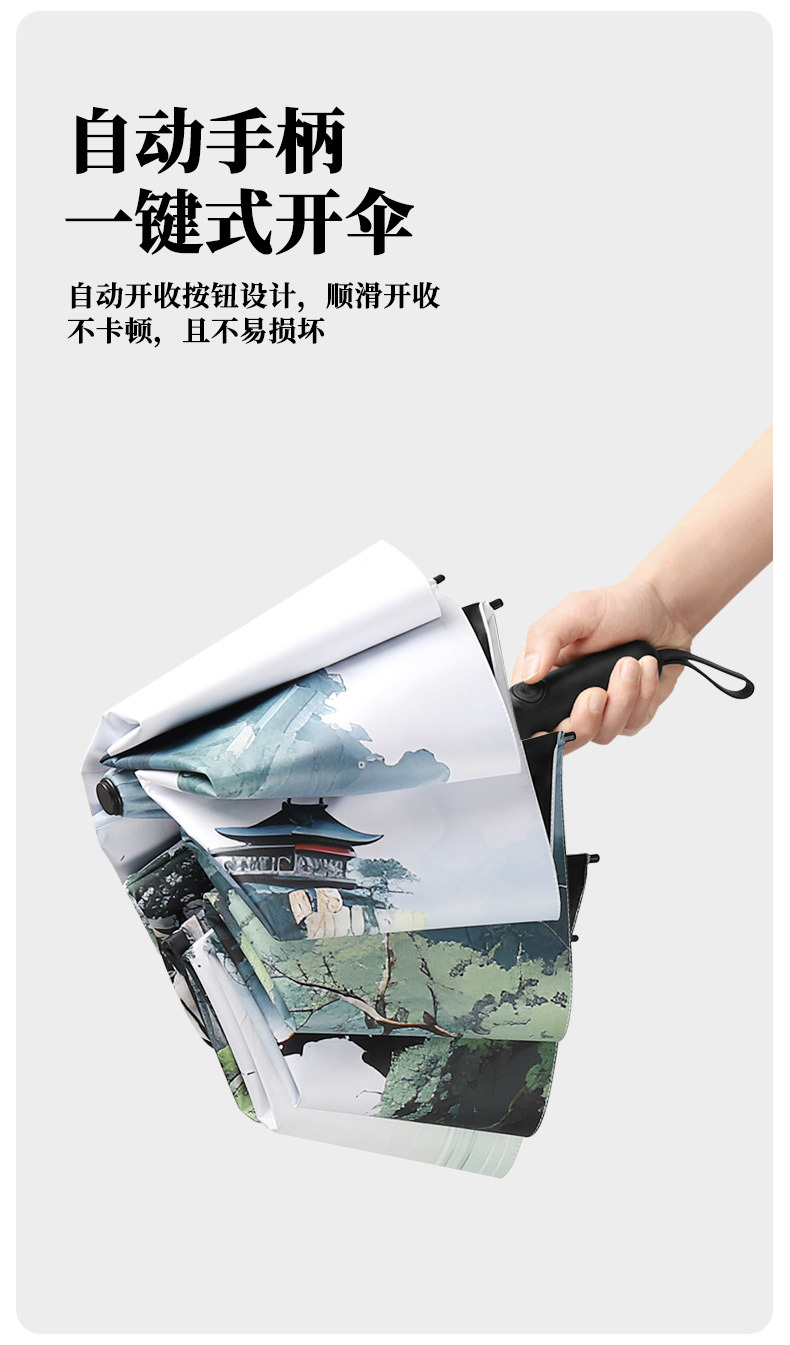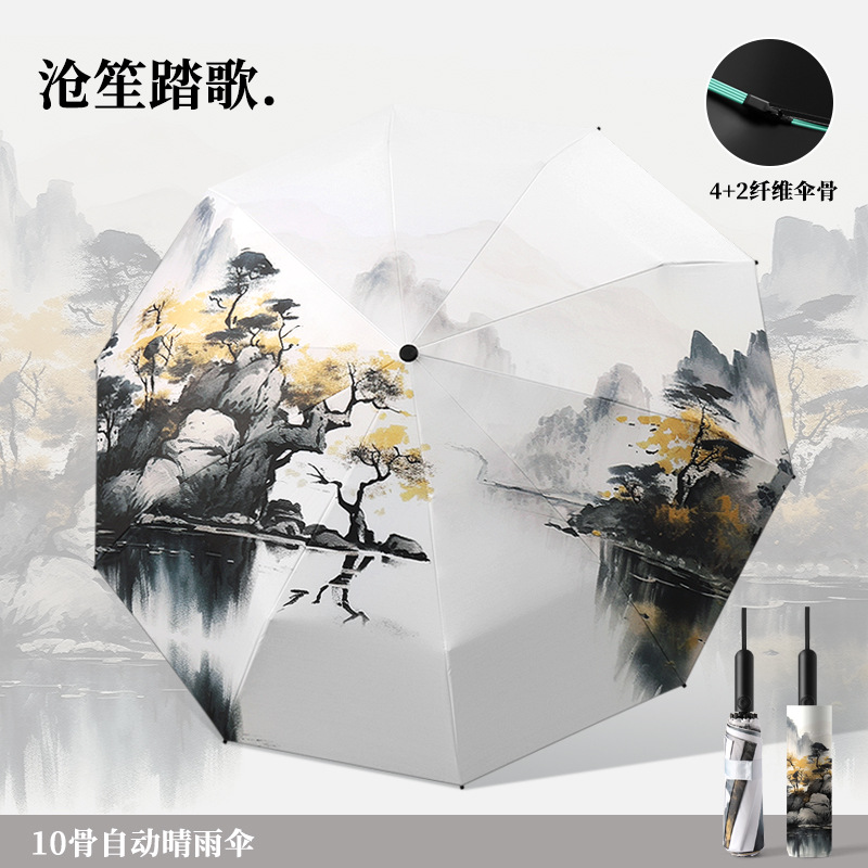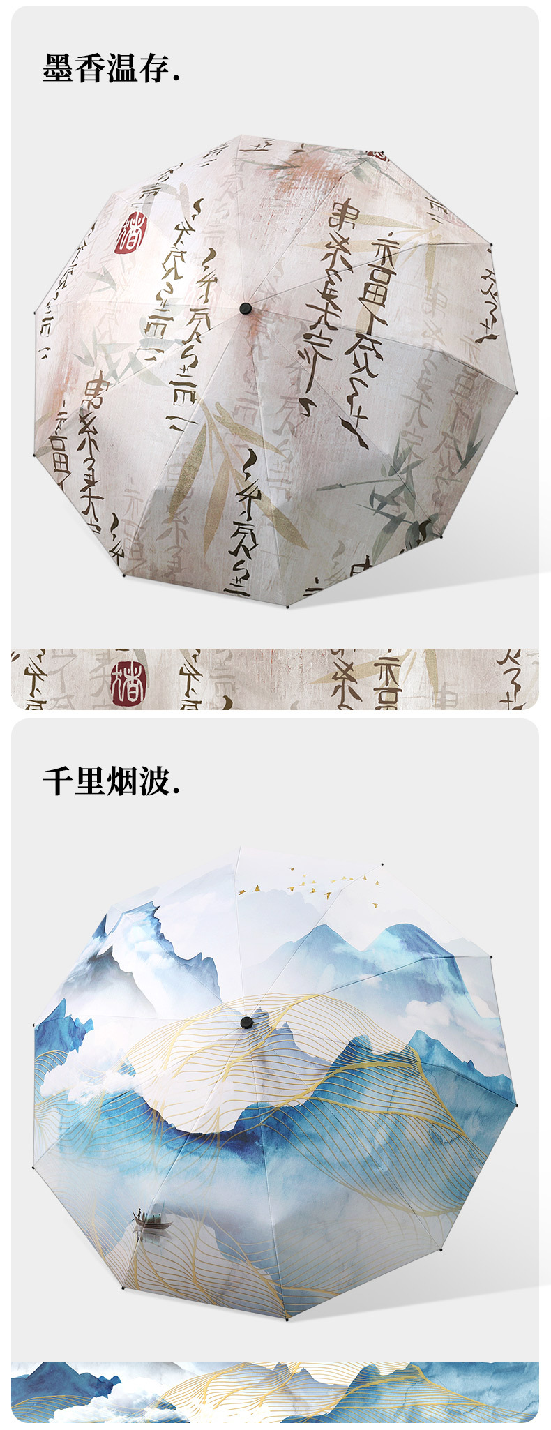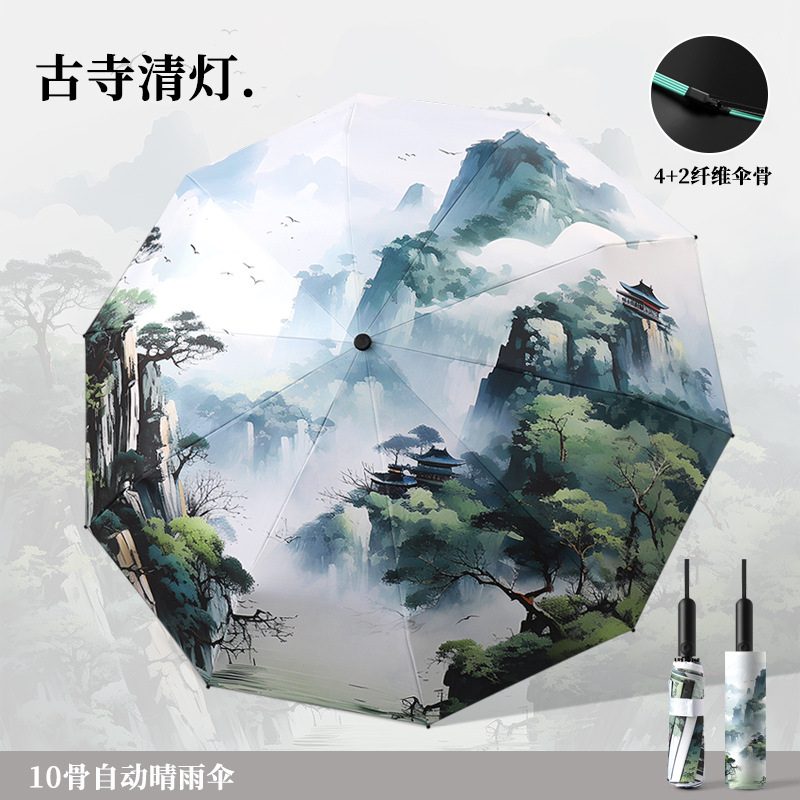 새로운 국가 트렌드 스타일 완전 자동 우산 접이식 복고풍 비 또는 빛 파라솔 자외선 방지 태양 우산