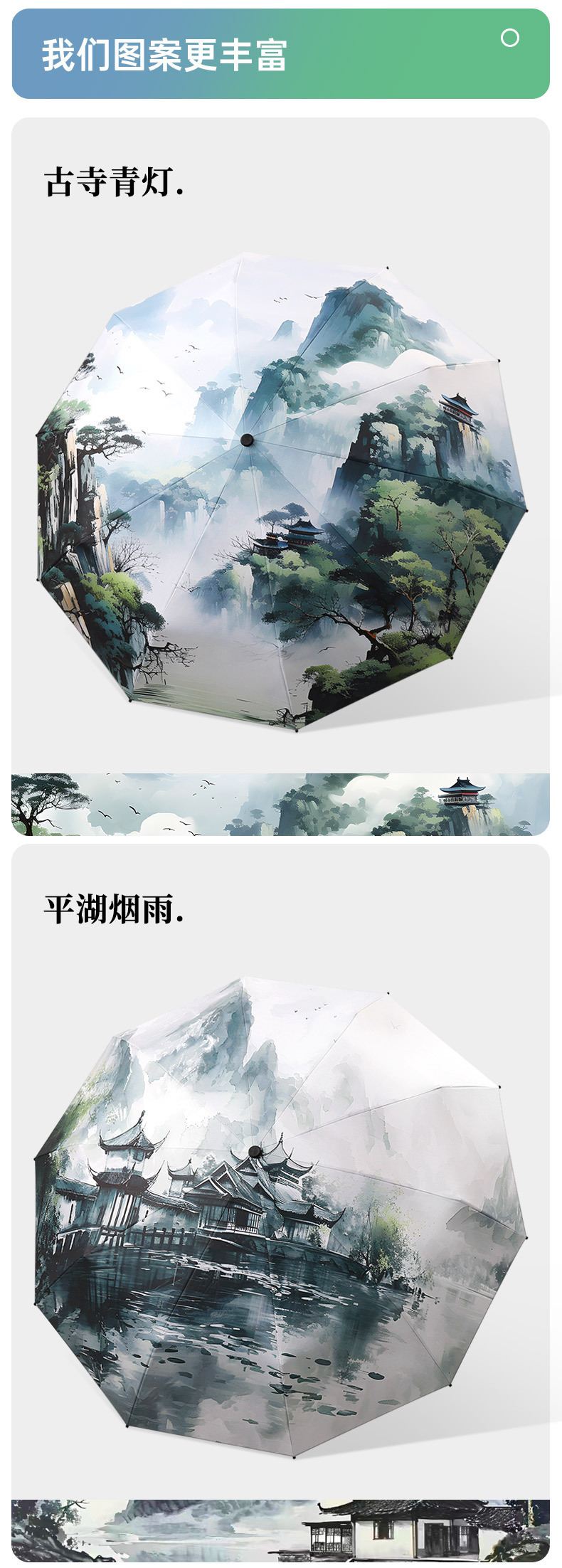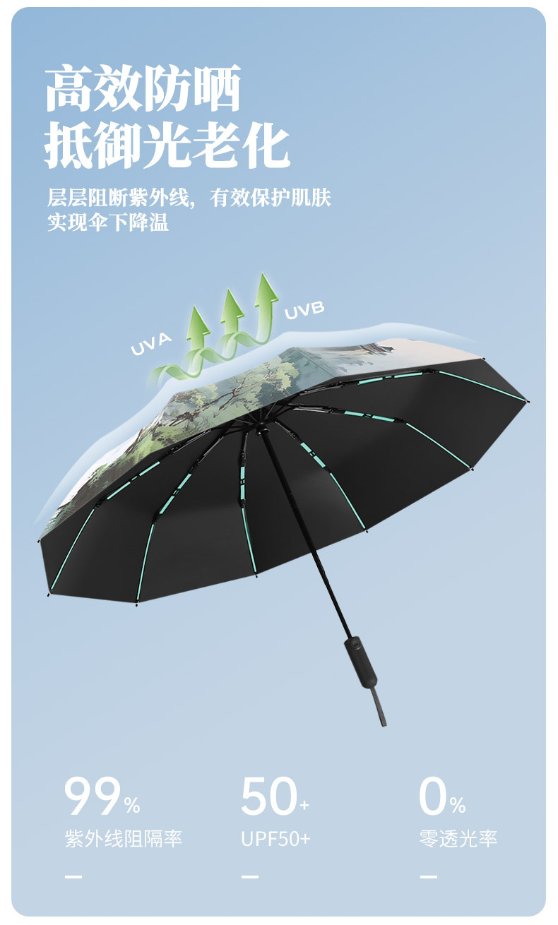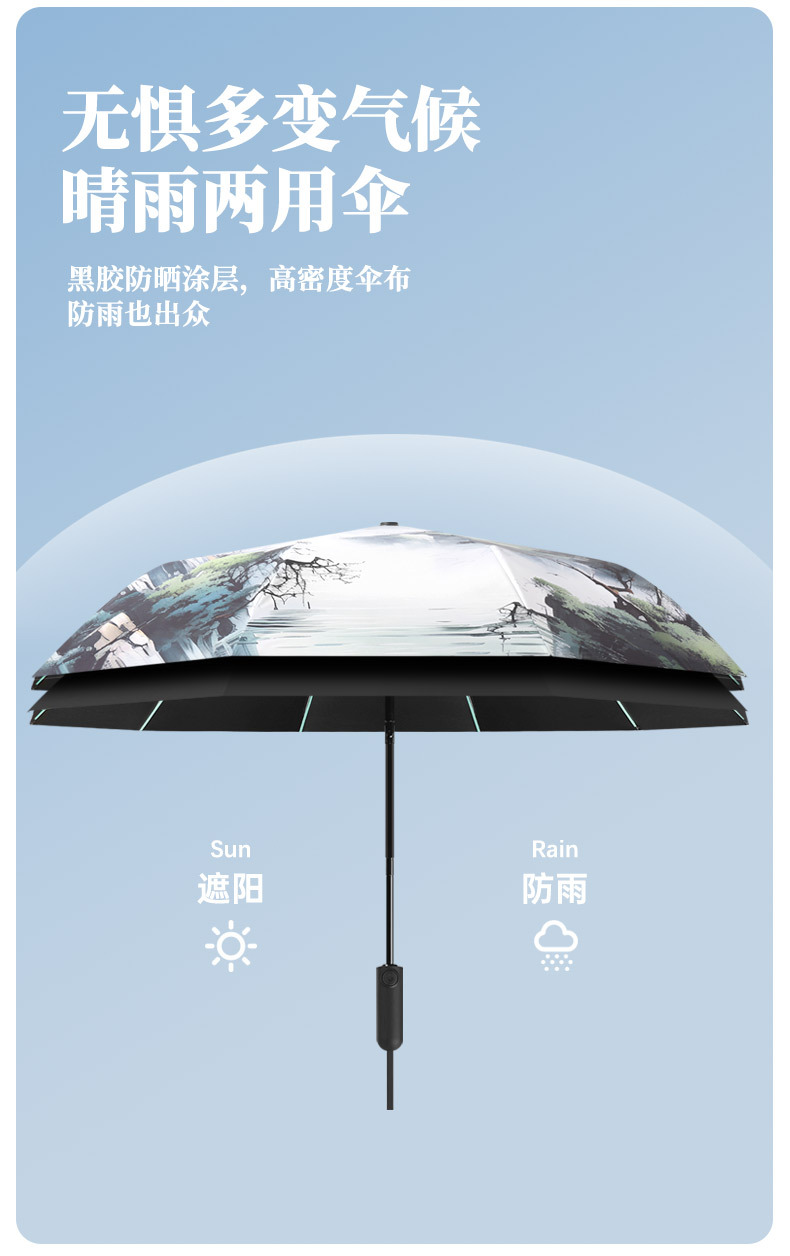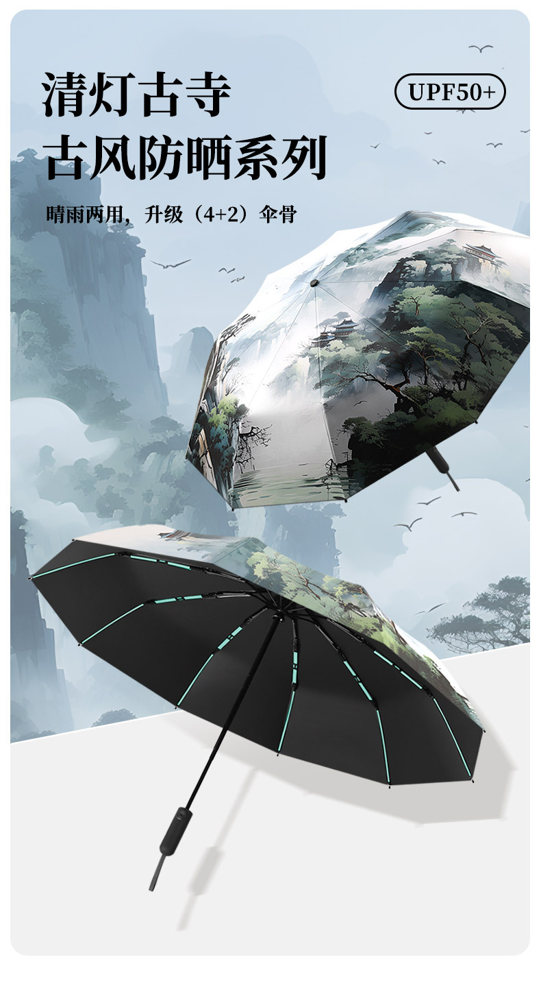 새로운 국가 트렌드 스타일 완전 자동 우산 접이식 복고풍 비 또는 빛 파라솔 자외선 방지 태양 우산
