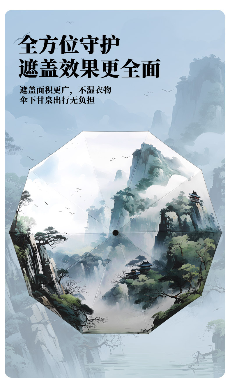 • 58.5*10 30% 자동 우산 디지털 인쇄 해바라기 손잡이-수천 마일의 연기 파도.
