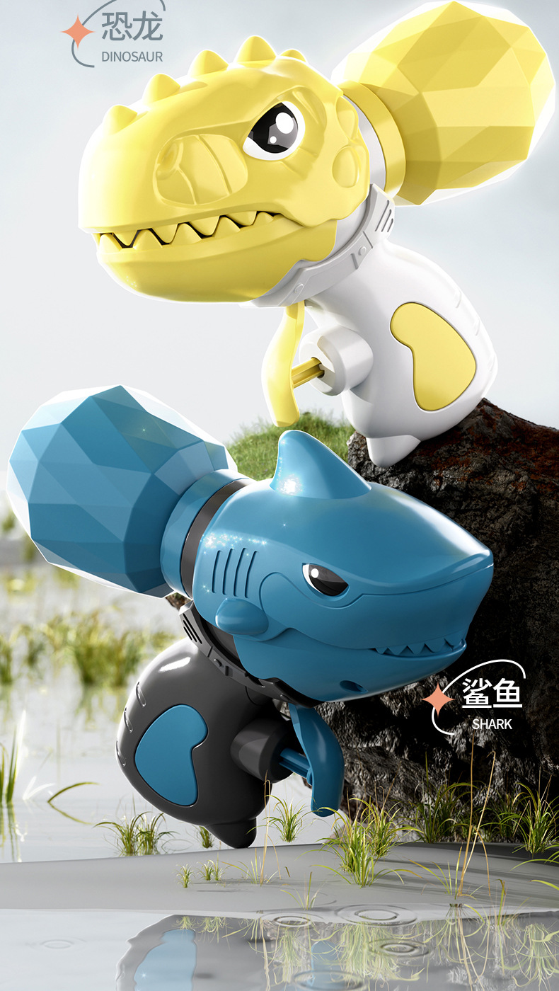공룡 작은 물총 기하학적 상어 물총 장난감 어린이 장난감 총 물 축제 물 총 어린이 장난감 물총스토어 가기