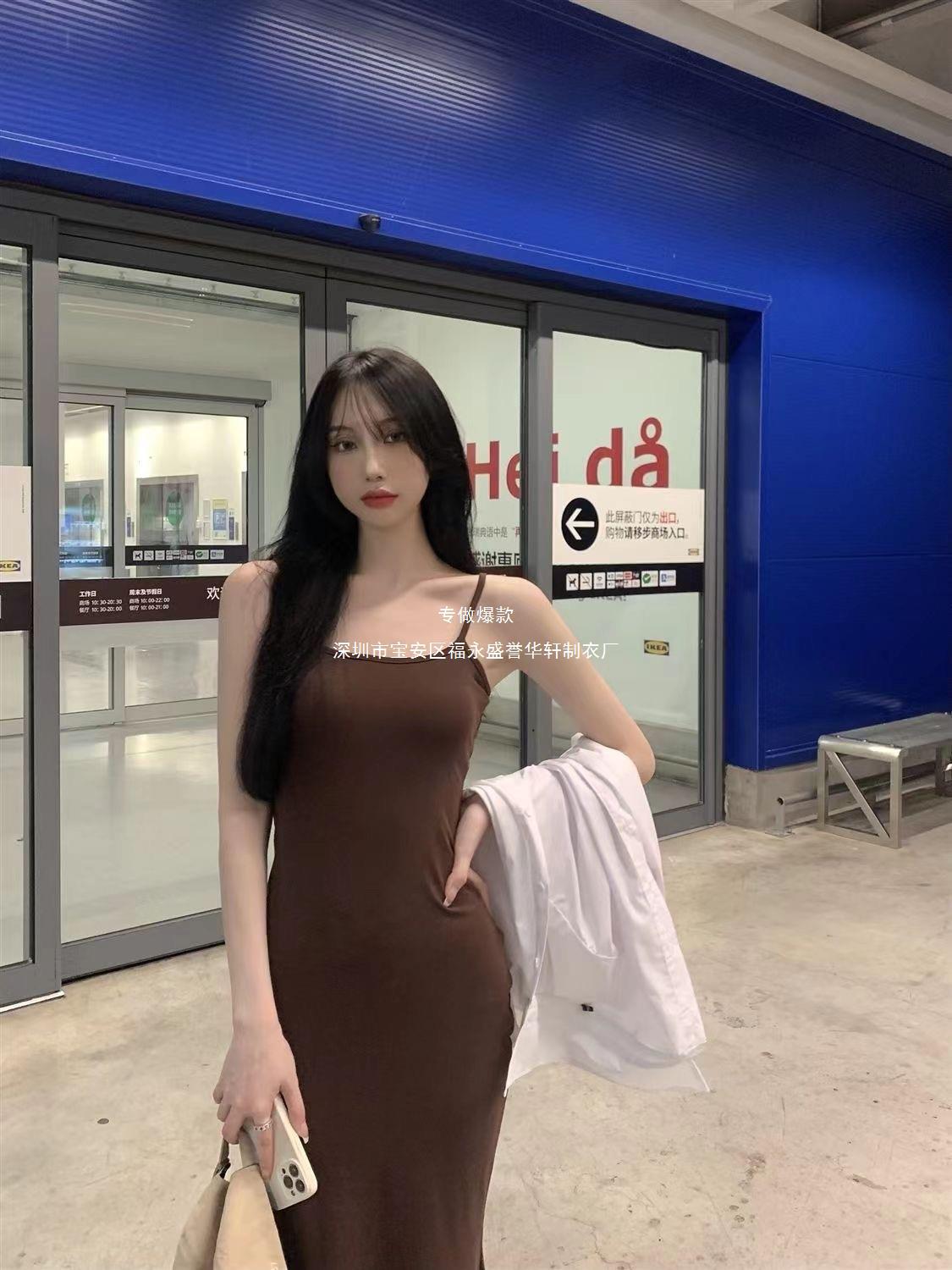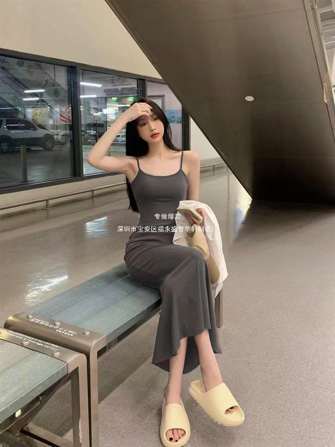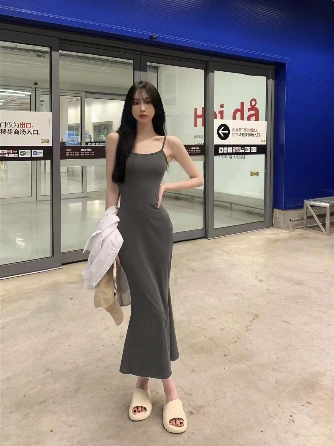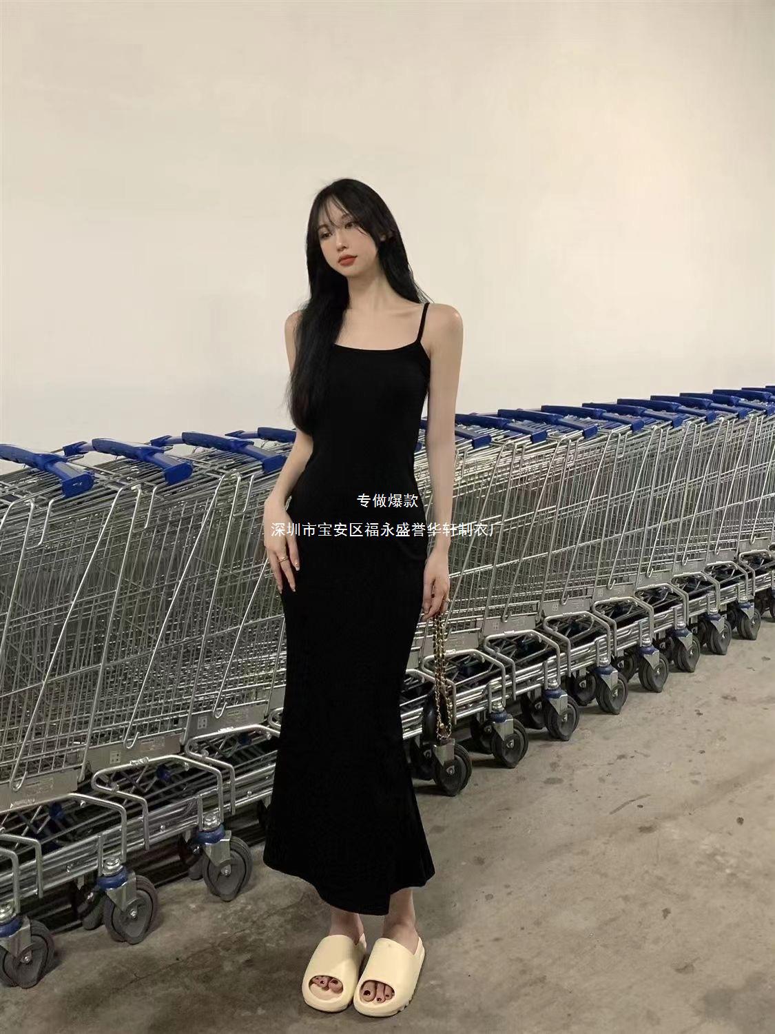 뜨거운 소녀 섹시한 타이트 허리 외부 착용 슬링 원피스 여성 여름 2024 새로운 단단한 엉덩이 원피스 긴 원피스 피쉬 원피스스토어 가기