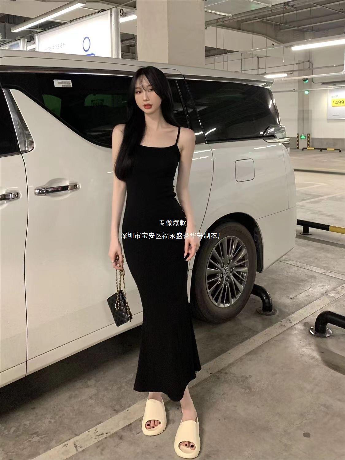 뜨거운 소녀 섹시한 타이트 허리 외부 착용 슬링 원피스 여성 여름 2024 새로운 단단한 엉덩이 원피스 긴 원피스 피쉬 원피스
