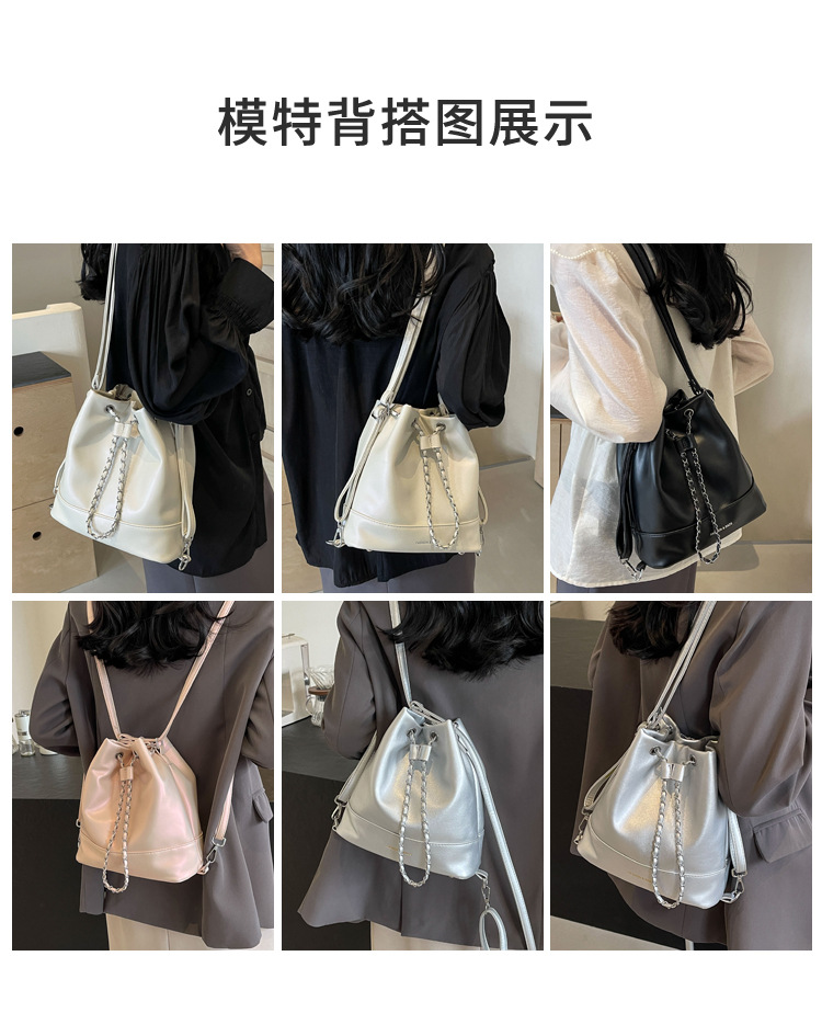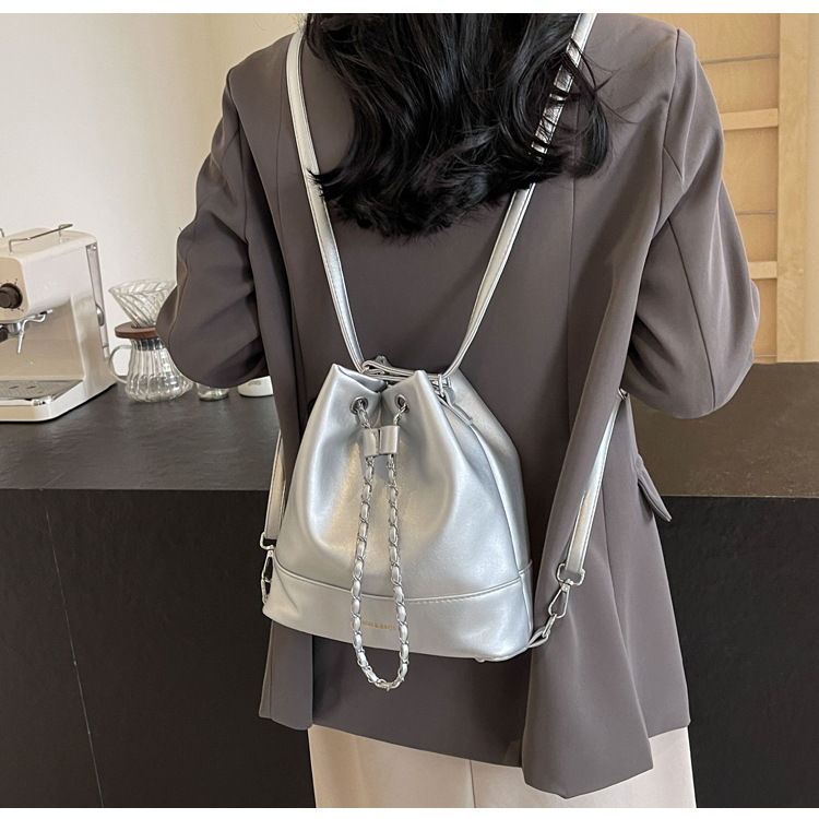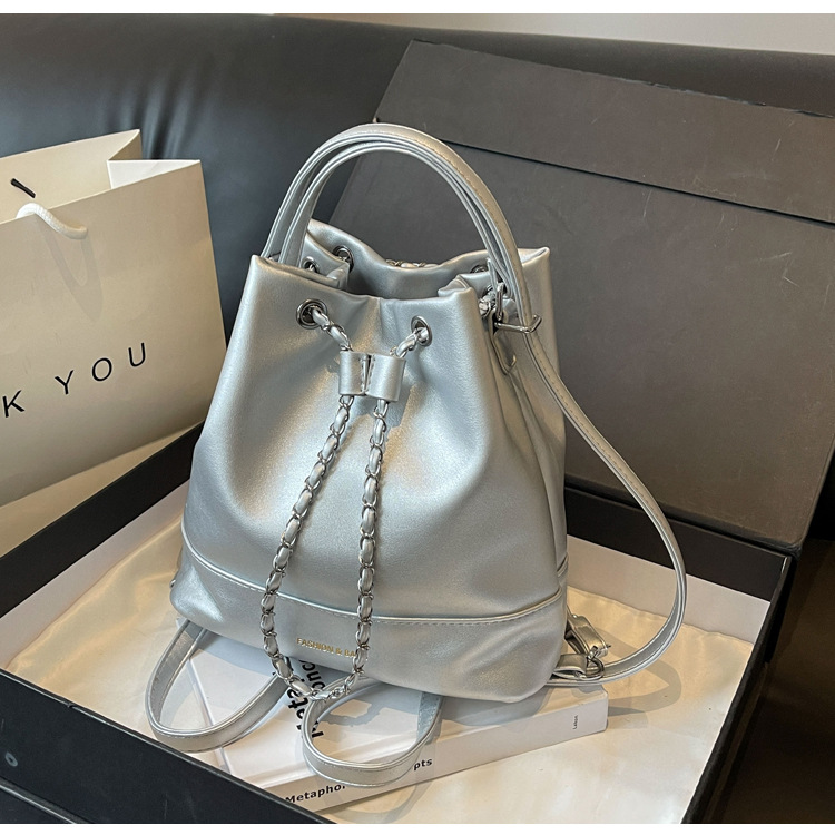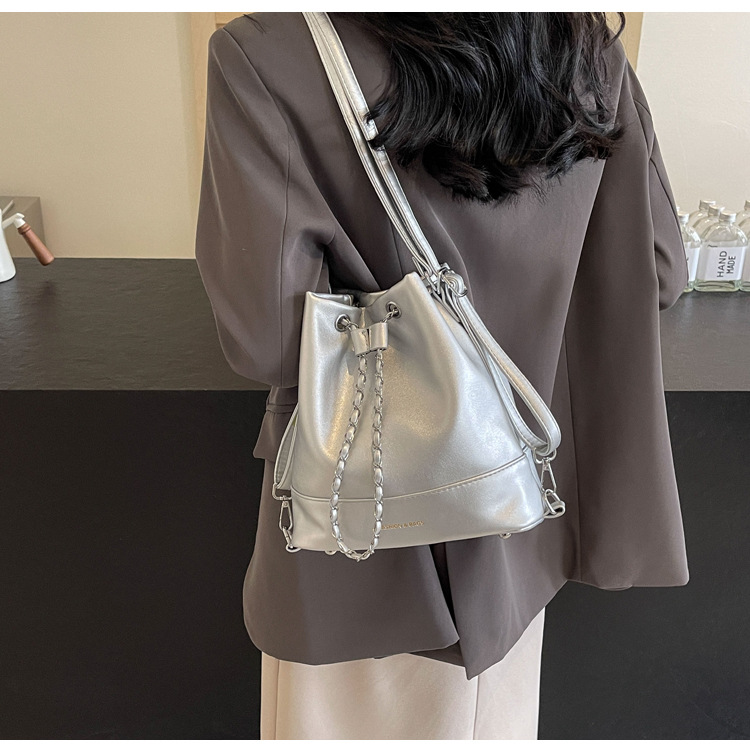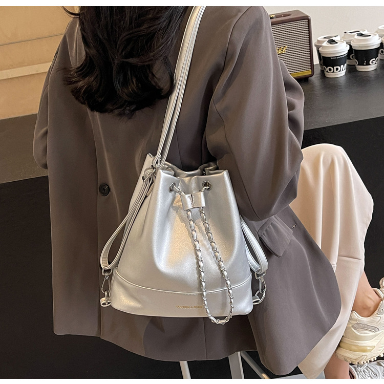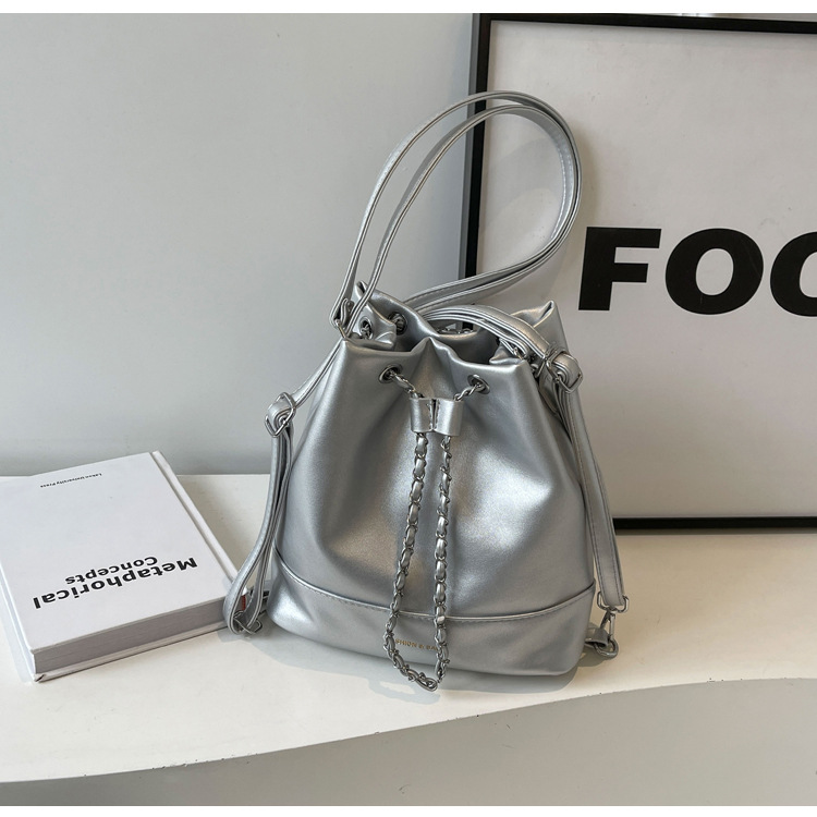 한국식 체인 스트랩 더블 어깨 버킷 백 여성 2024 대학생을위한 독특한 간단한 어깨 크로스 바디 클래스 백스토어 가기
