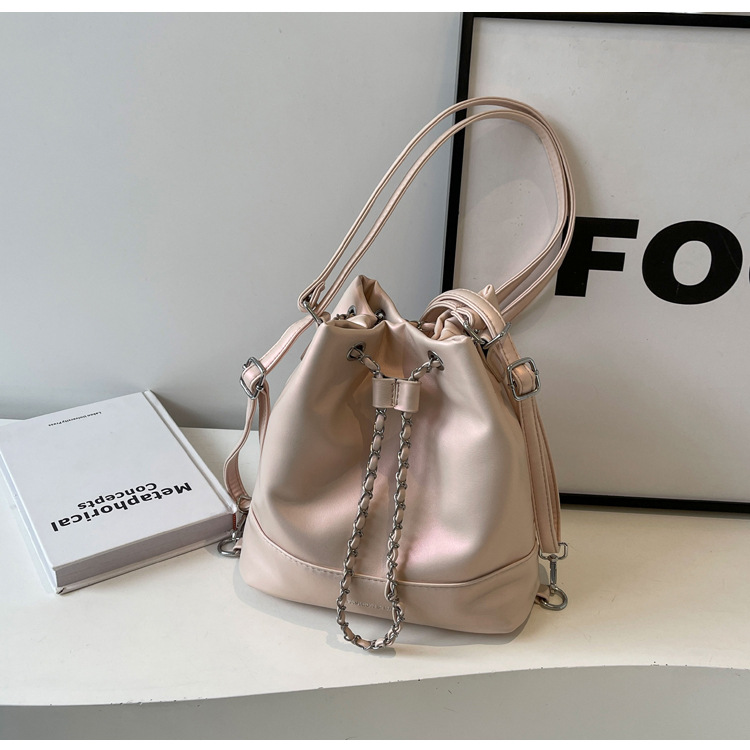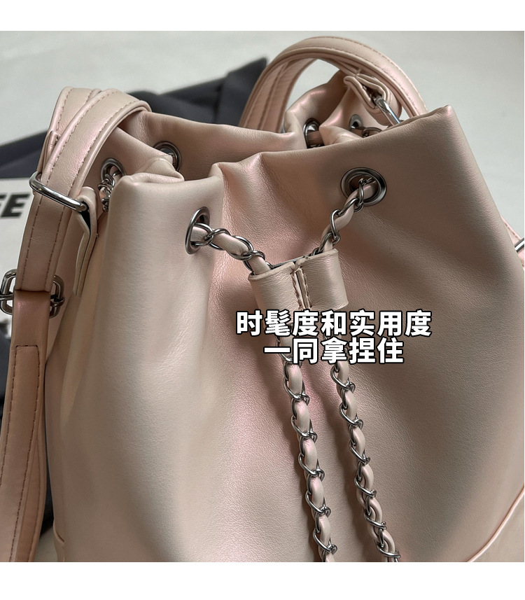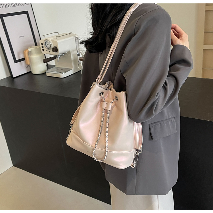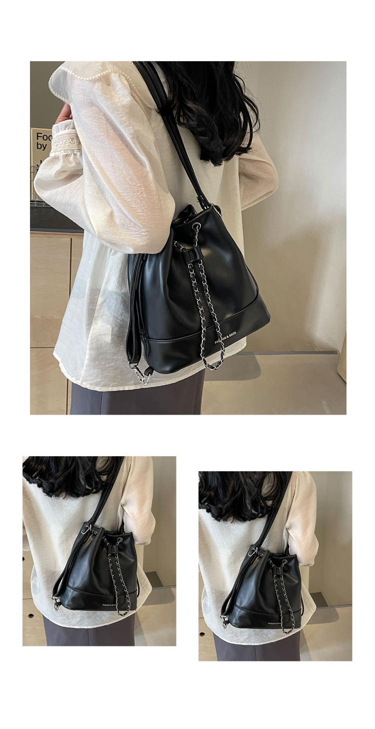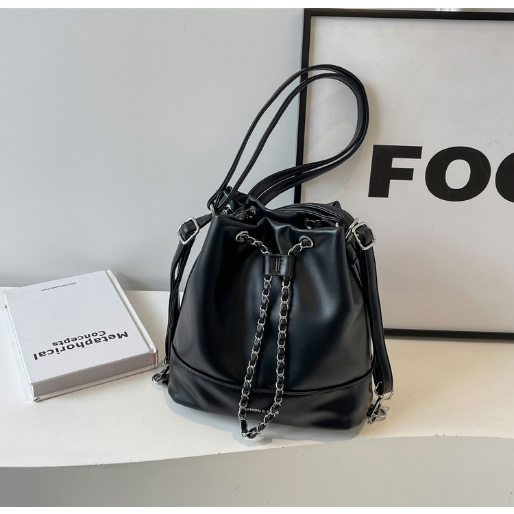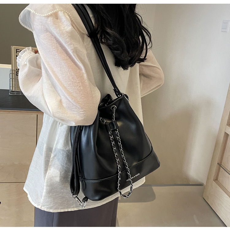 한국식 체인 스트랩 더블 어깨 버킷 백 여성 2024 대학생을위한 독특한 간단한 어깨 크로스 바디 클래스 백