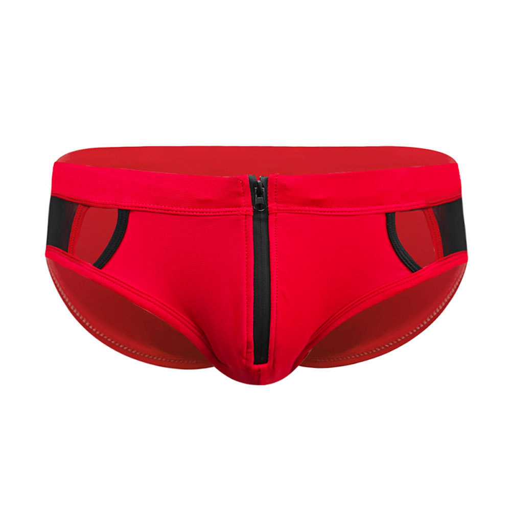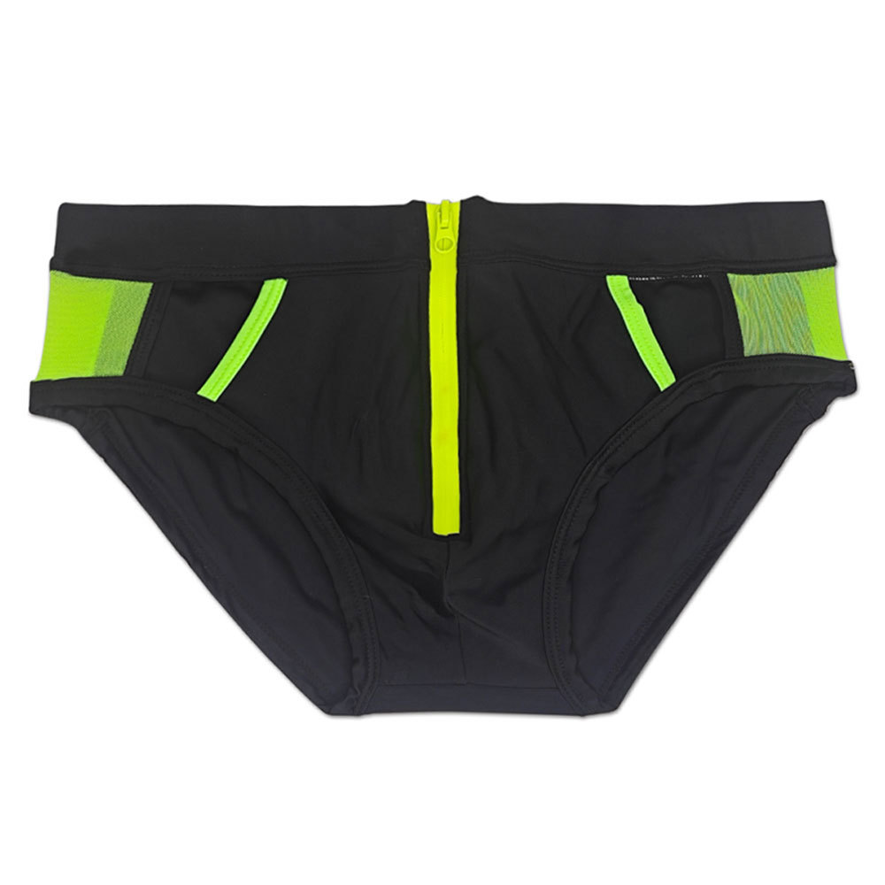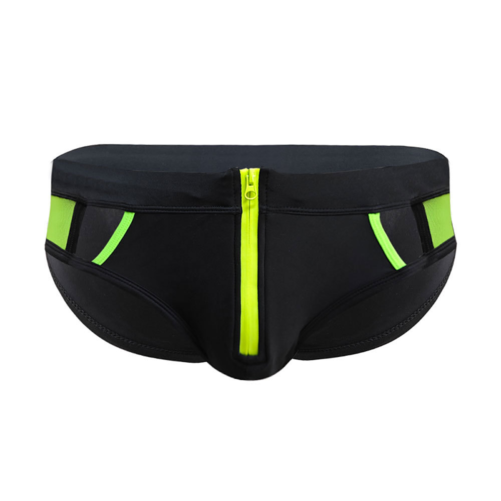 UXH 새로운 남성 유럽 및 미국 중공 전면 지퍼 삼각형 수영 트렁크 패션 섹시한 메쉬 할로우 수영 삼각형