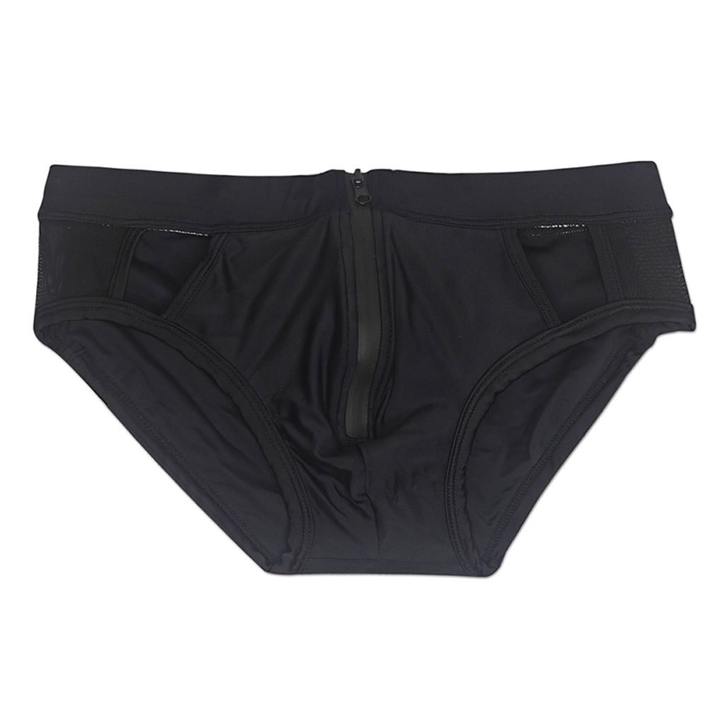 UXH 새로운 남성 유럽 및 미국 중공 전면 지퍼 삼각형 수영 트렁크 패션 섹시한 메쉬 할로우 수영 삼각형스토어 가기