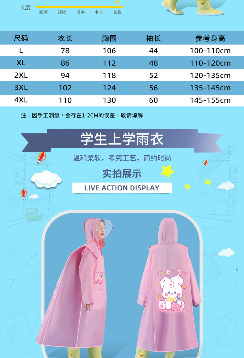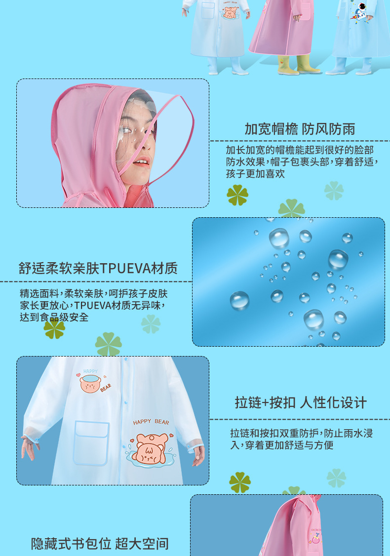 초등학교 및 중학교 학생을위한 어린이 비옷 안티 폭풍우 소녀 소년 아기 만화 비옷 Schoolbag와 함께스토어 가기