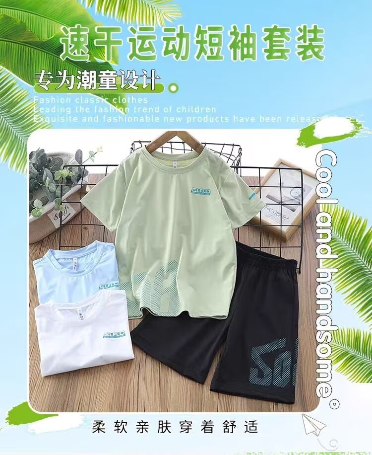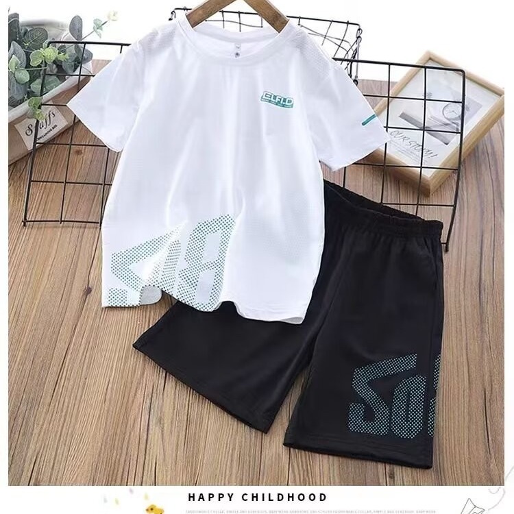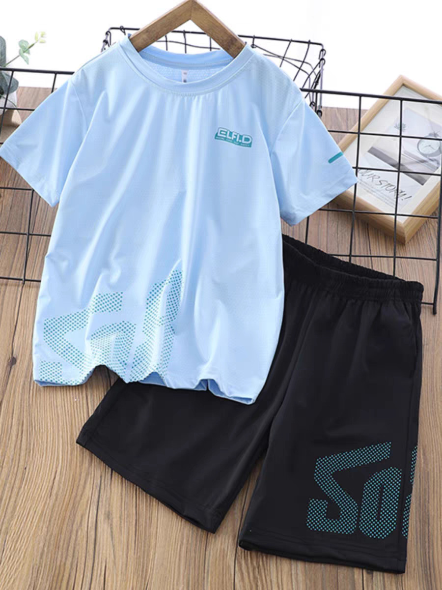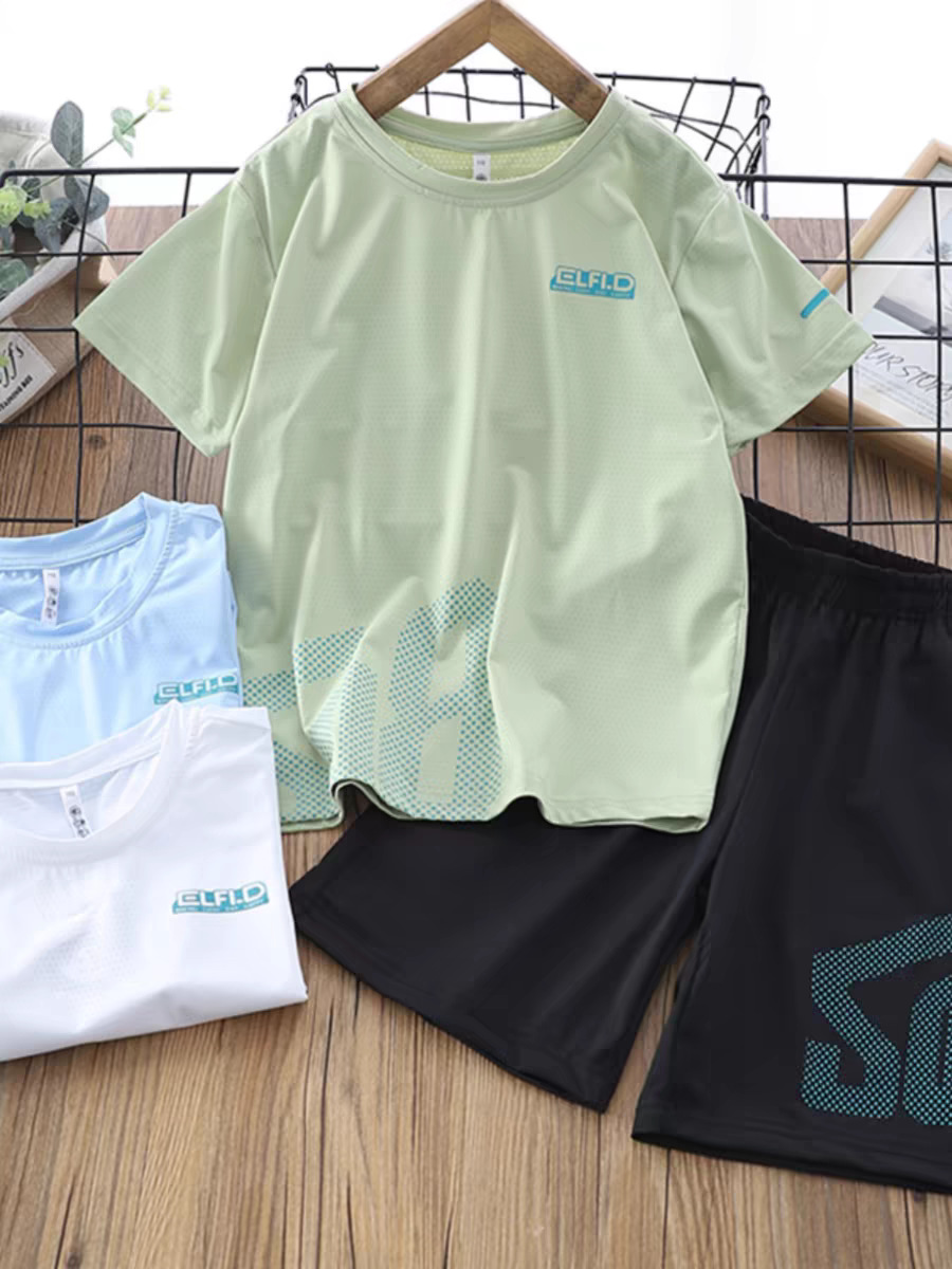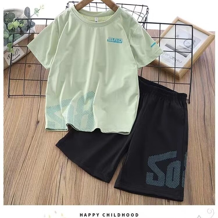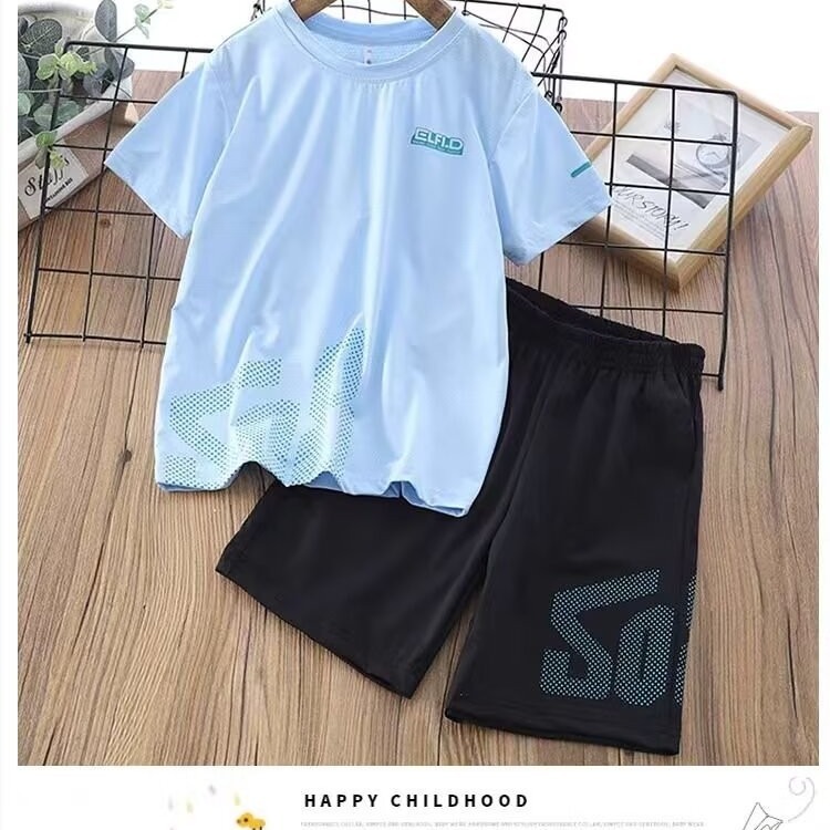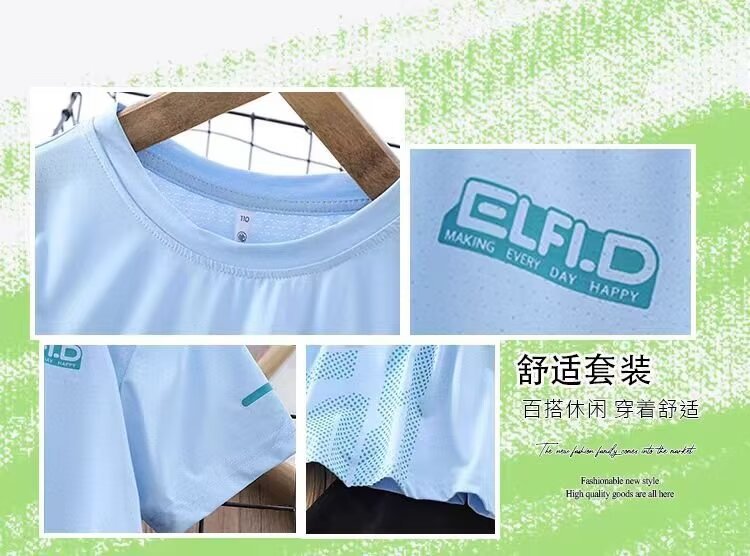 남자들의 세트 여름 얇은 통기성 빠른 건조 옷 어린이 유행 서양식 외부 착용 스포츠 반바지 짧은 소매스토어 가기