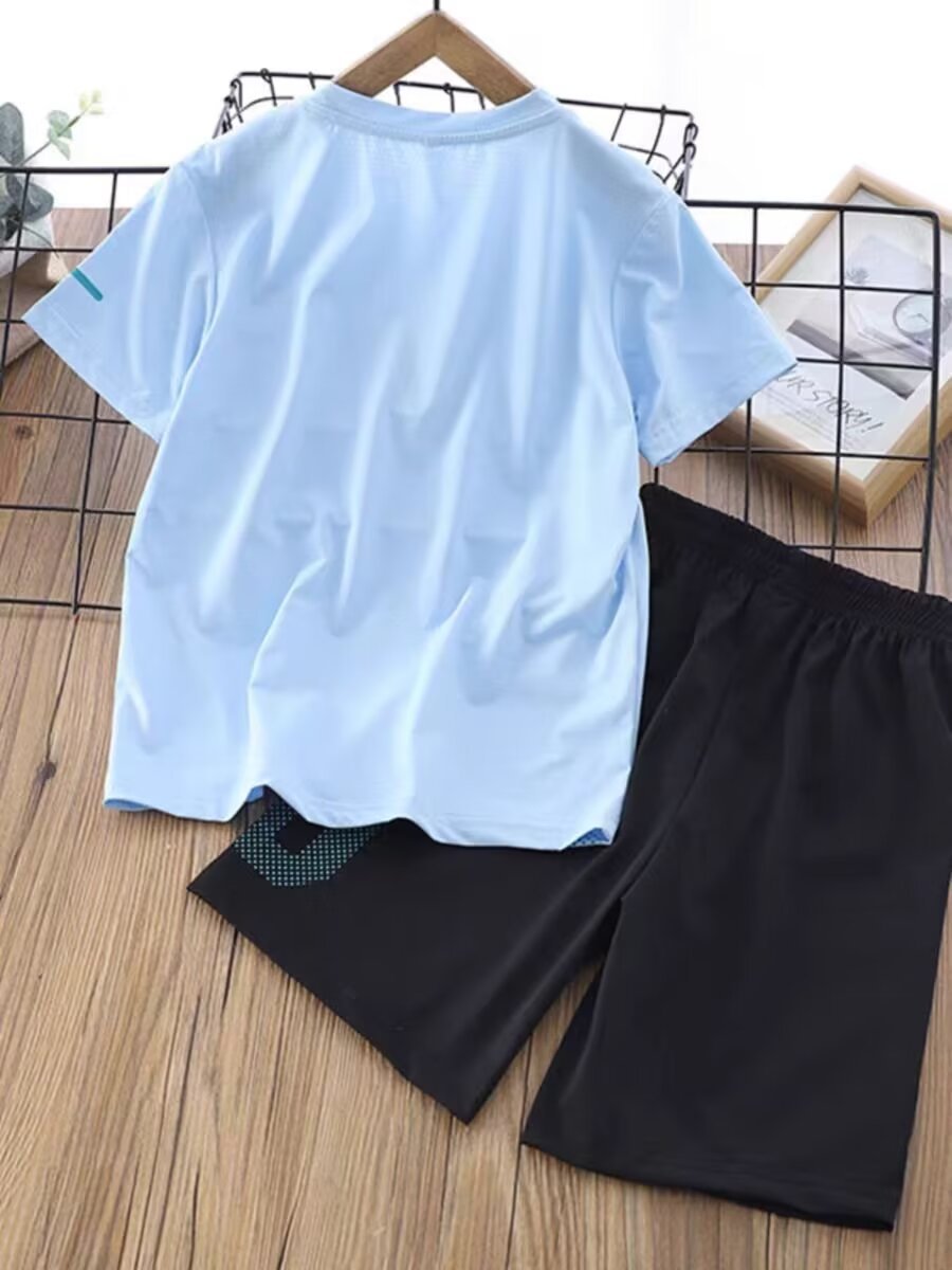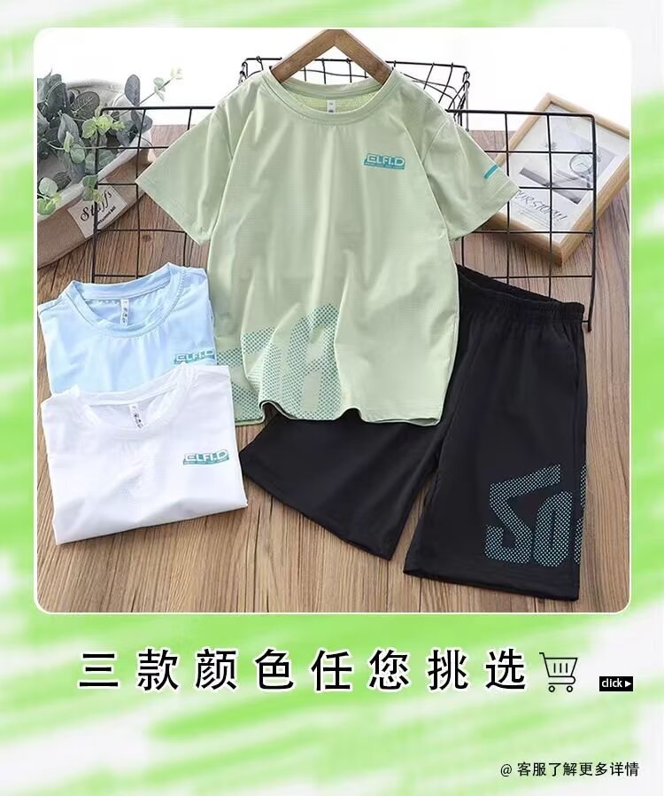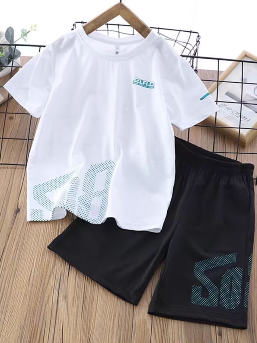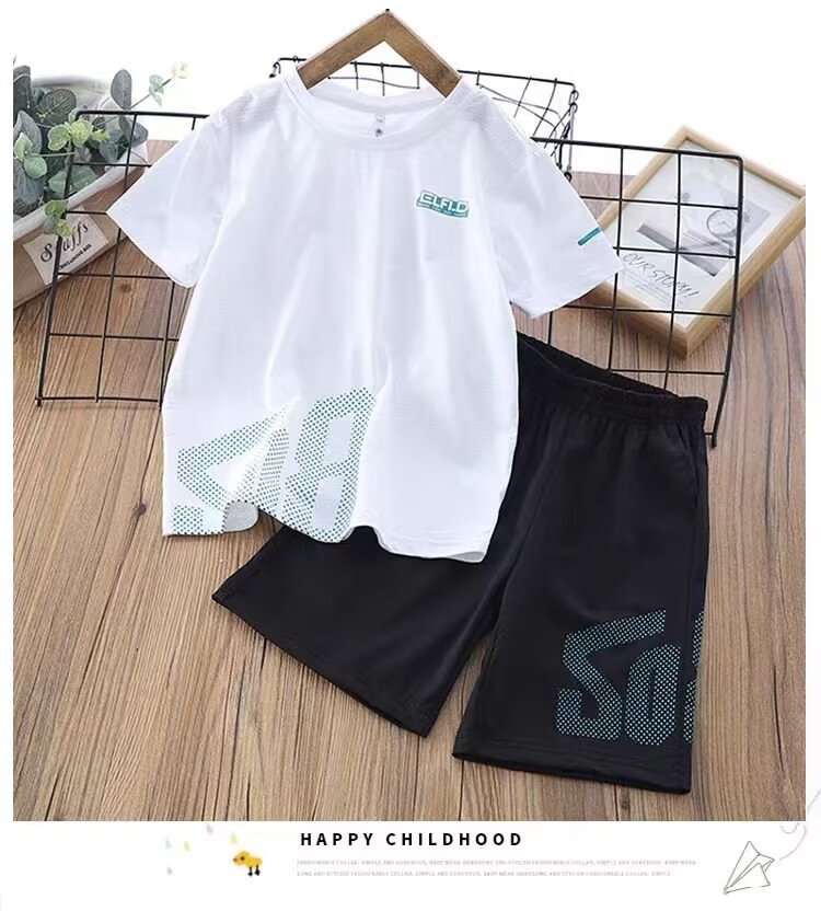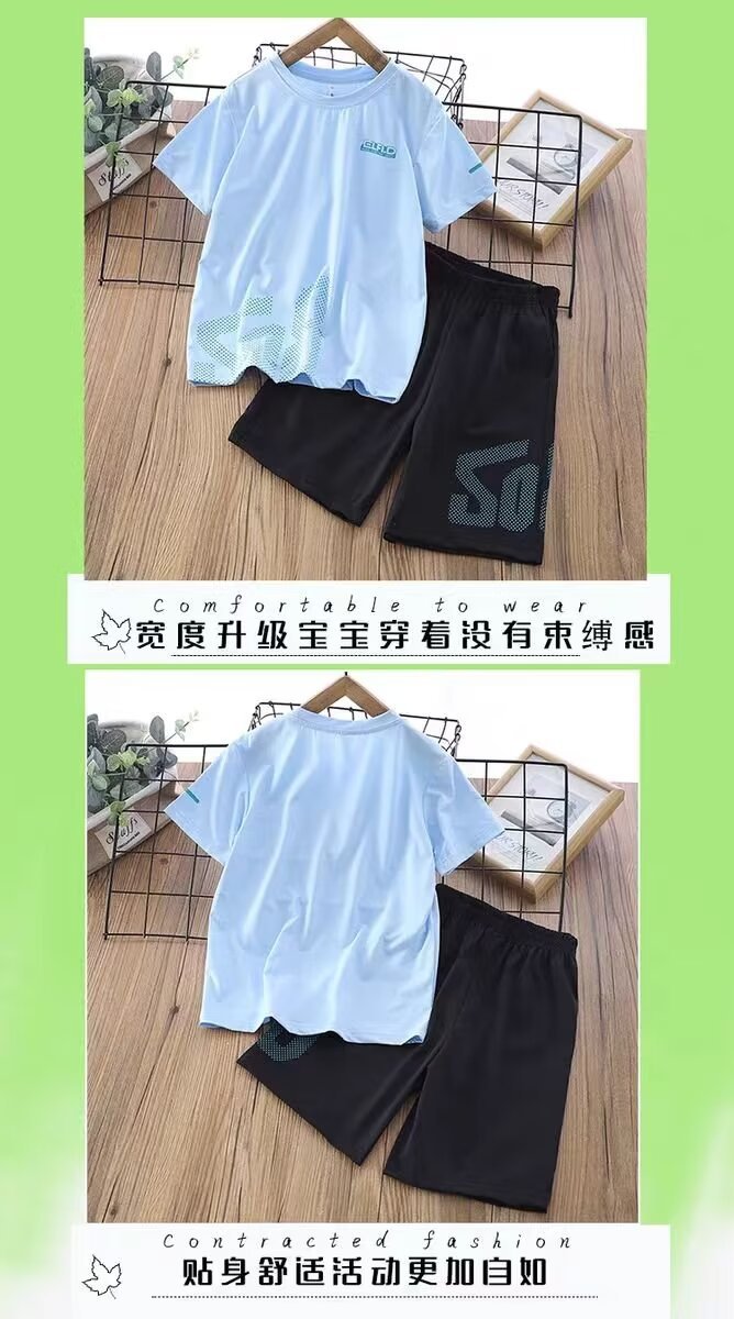남자들의 세트 여름 얇은 통기성 빠른 건조 옷 어린이 유행 서양식 외부 착용 스포츠 반바지 짧은 소매스토어 가기