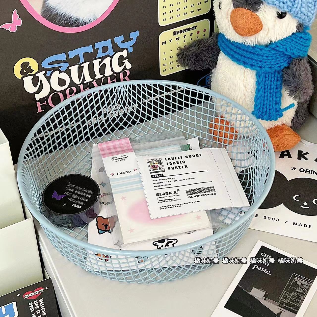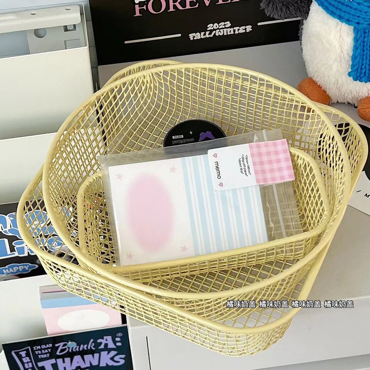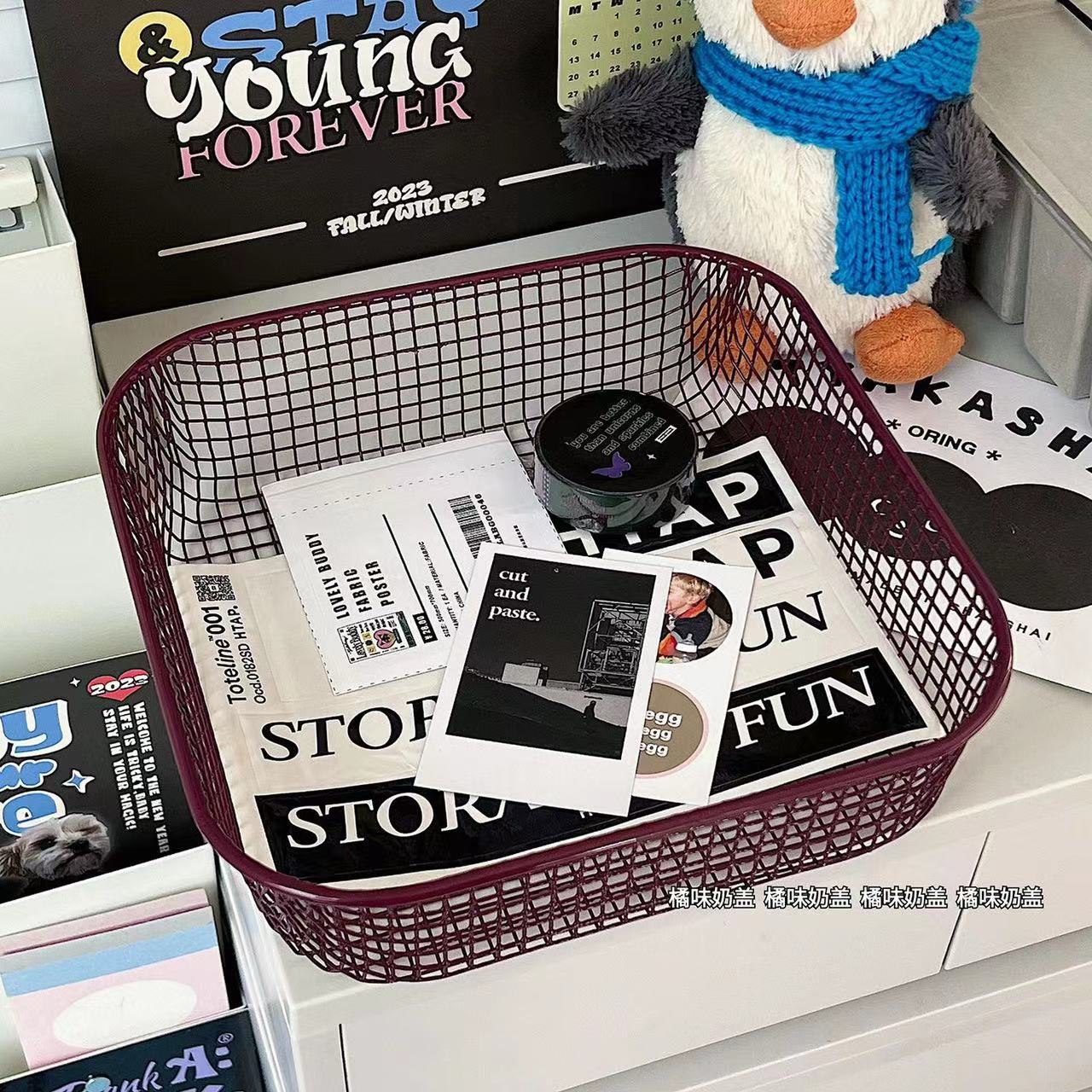 Ins 스타일 책상 잡화 작은 물체 저장 바구니 학생 사무실 문구 보관 상자 데스크탑 철 마감 보관스토어 가기