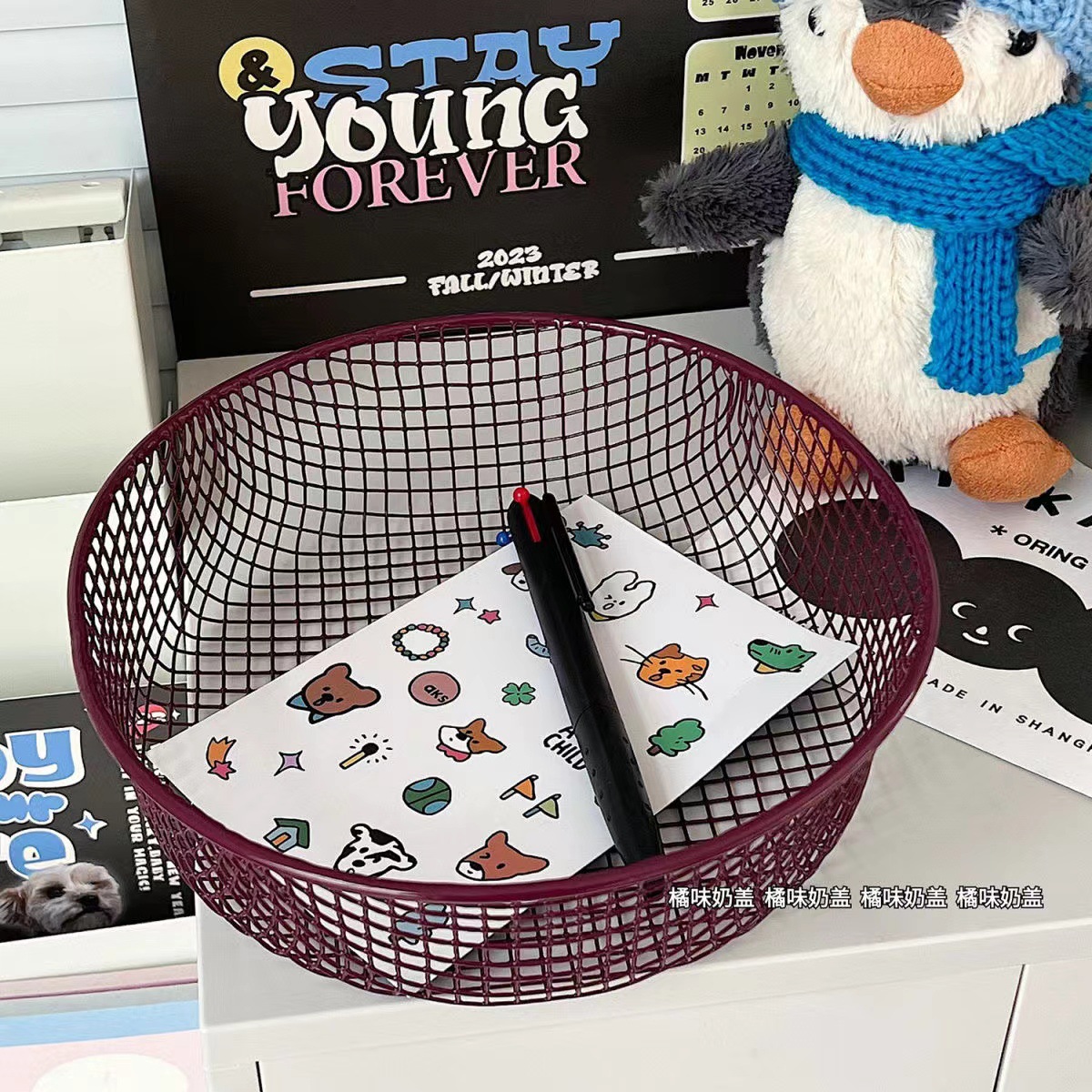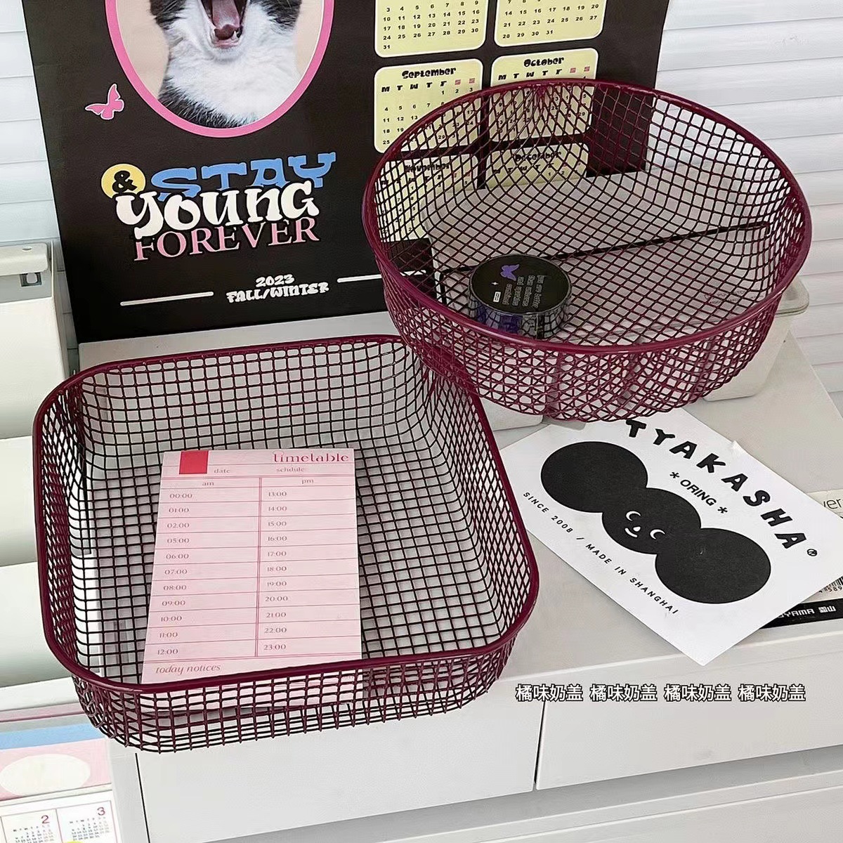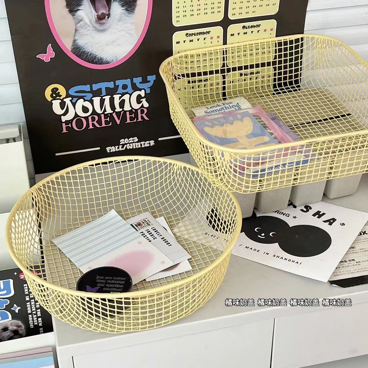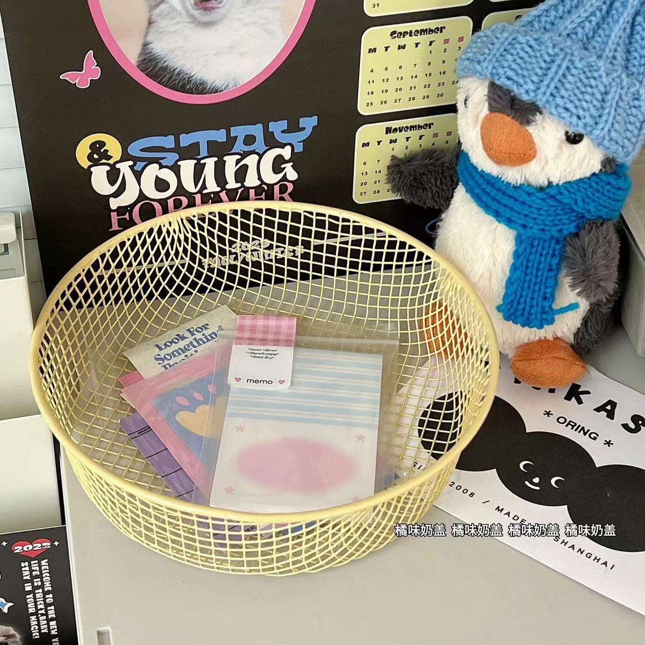 Ins 스타일 책상 잡화 작은 물체 저장 바구니 학생 사무실 문구 보관 상자 데스크탑 철 마감 보관스토어 가기