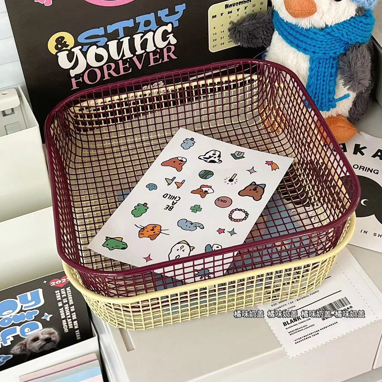 Ins 스타일 책상 잡화 작은 물체 저장 바구니 학생 사무실 문구 보관 상자 데스크탑 철 마감 보관