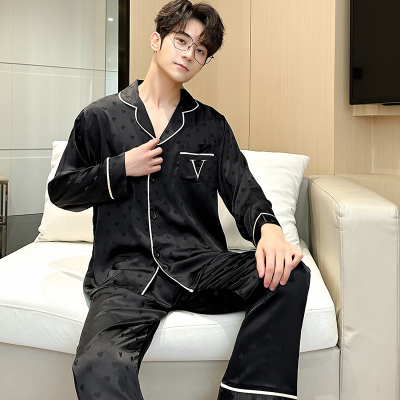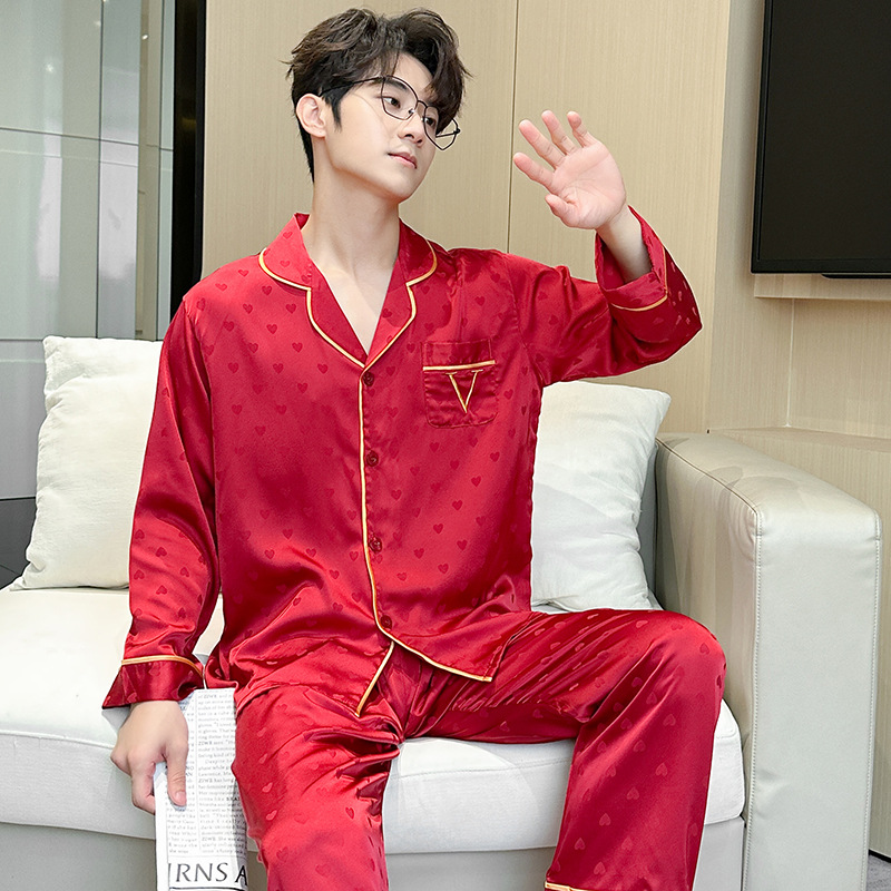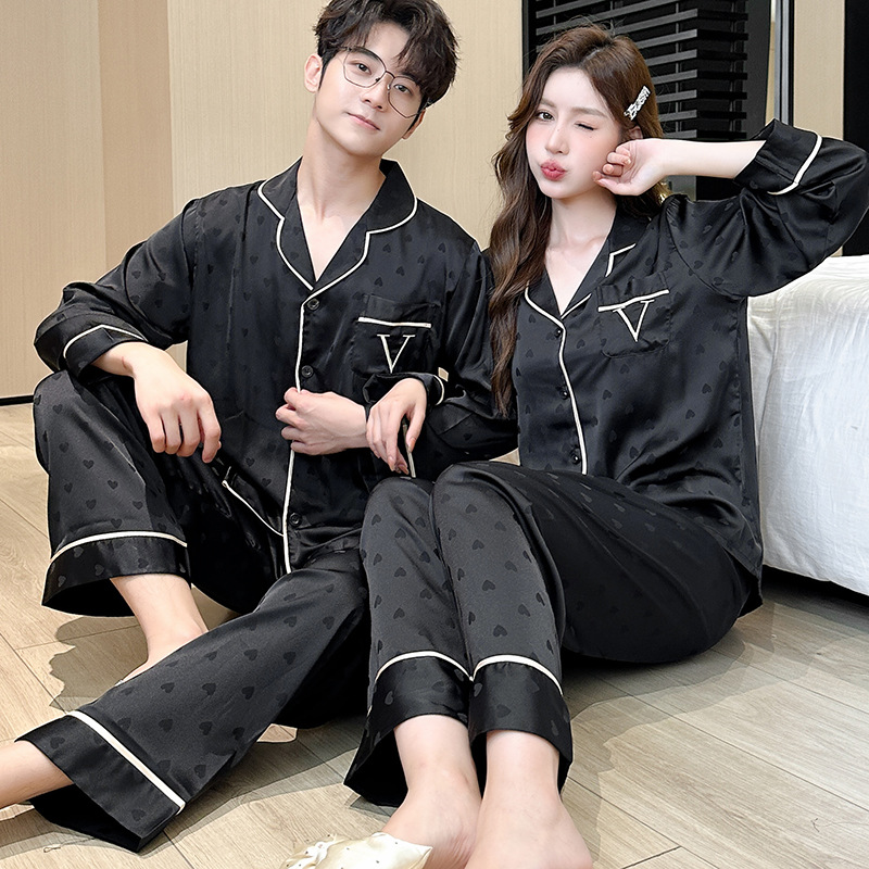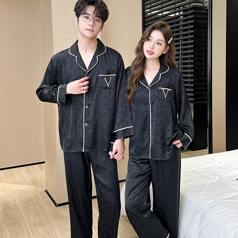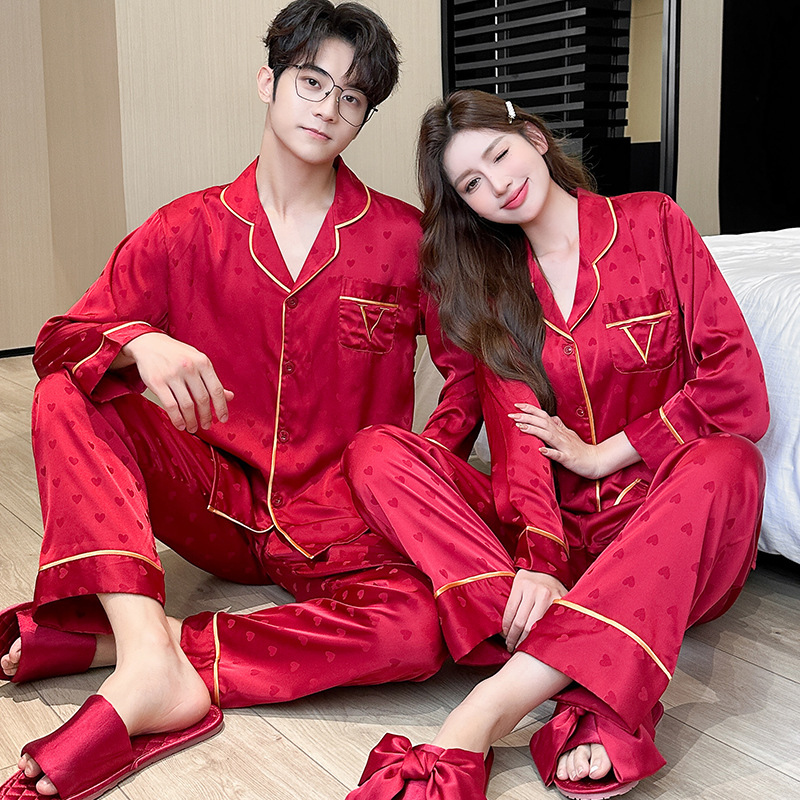 여성을위한 웨딩 얼음 실크 잠옷 커플 봄과 여름 얇은 긴팔 대형 캐주얼 자카드 한국 스타일 남성 홈웨어 세트
