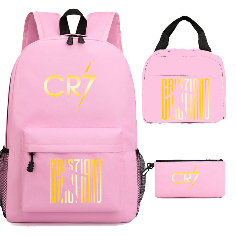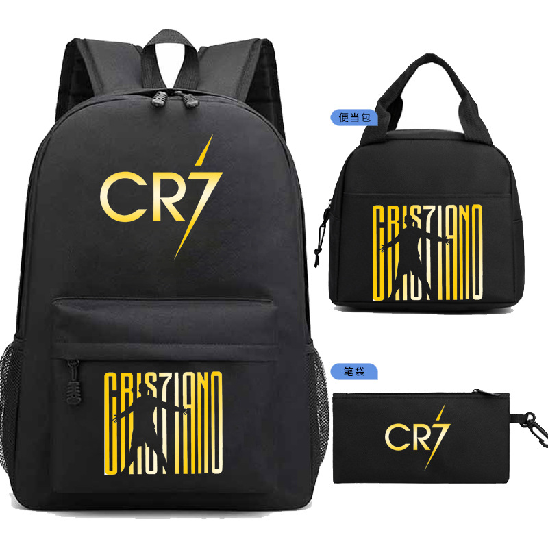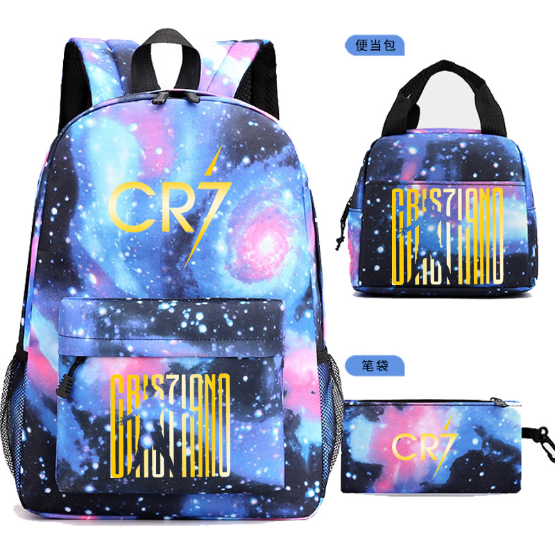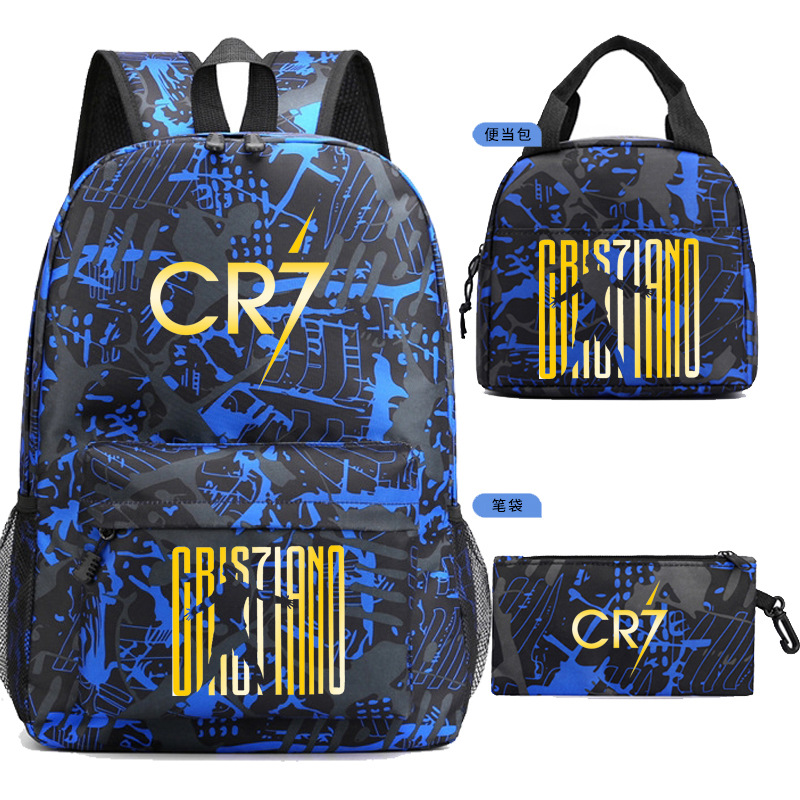 새로운 국경 CR7 청소년 C 루오 패션 배낭 휴대용 절연 가방 연필 가방 어린이 학생 스쿨백 3 피스 세트스토어 가기