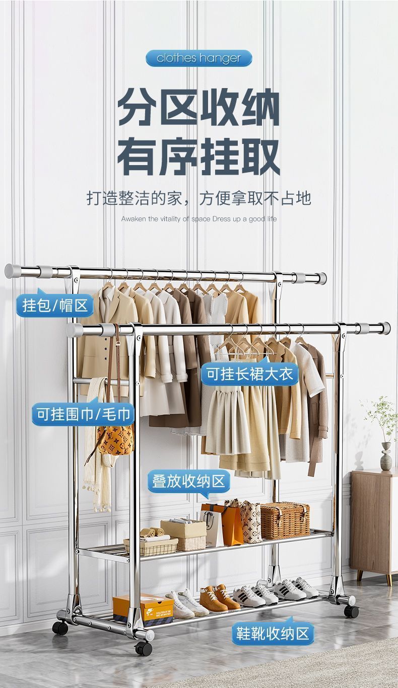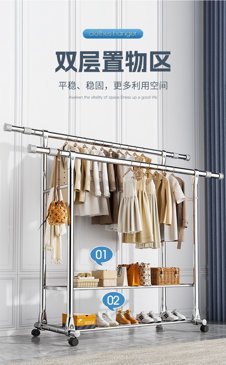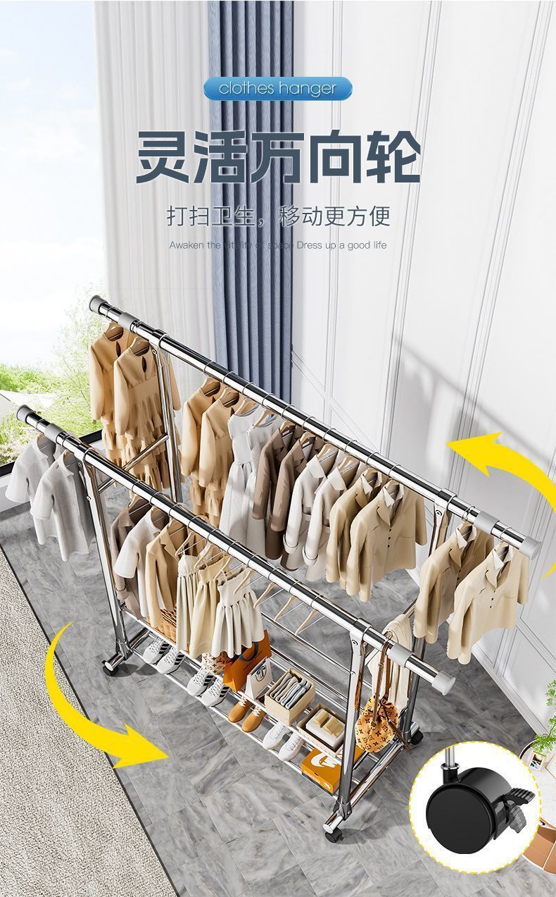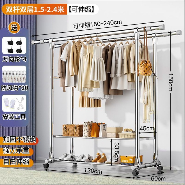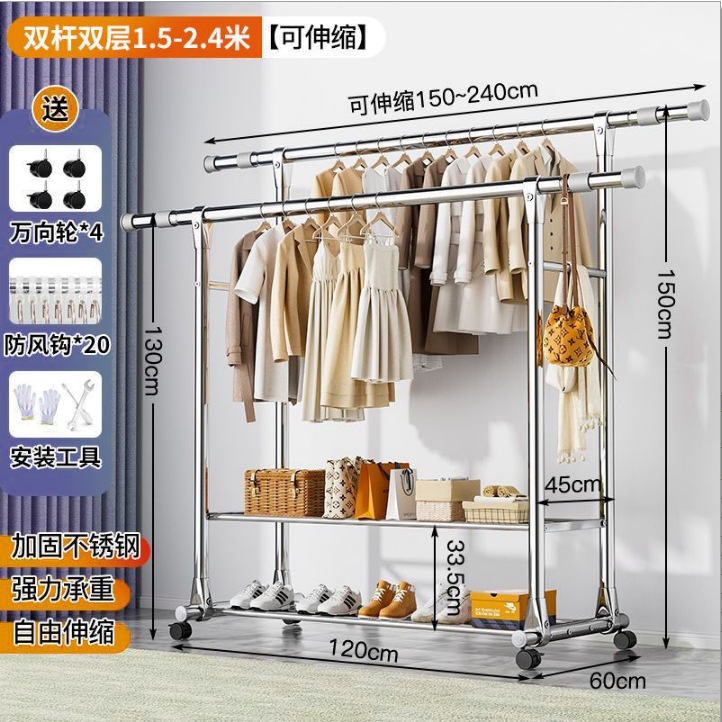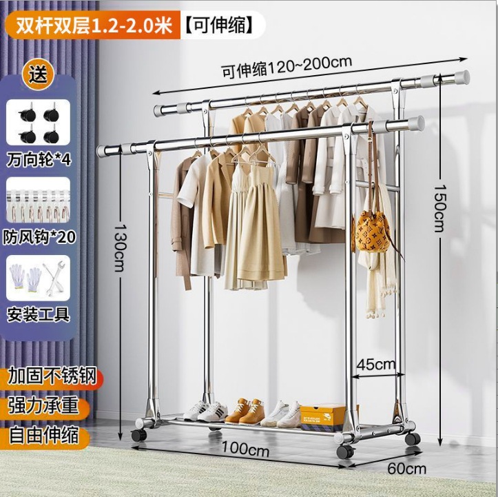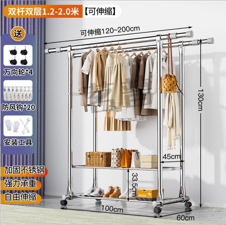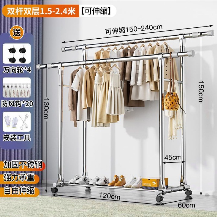 스테인레스 스틸 더블로드 건조 랙 바닥 서 접는 가정용 발코니 건조 랙 개폐식 야외 건조 퀼렛 유물 건조 랙
