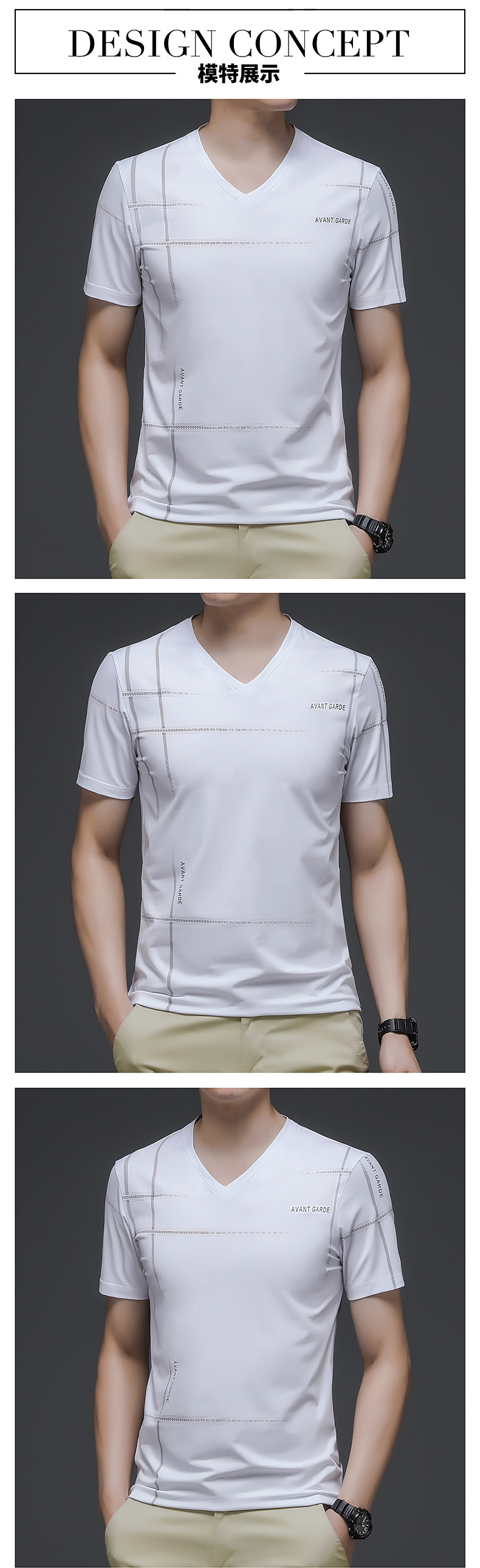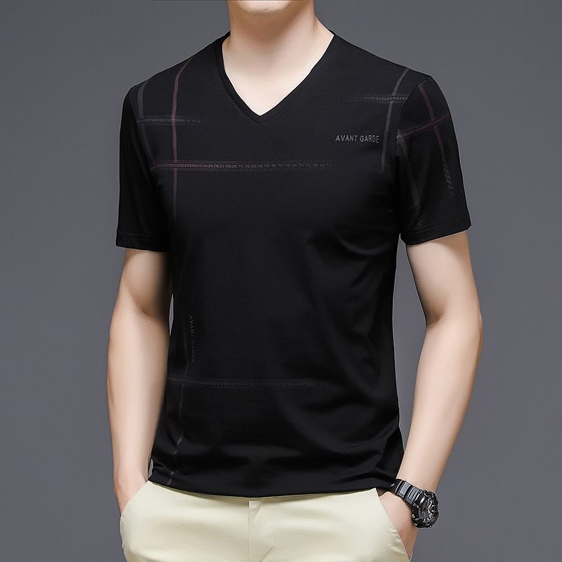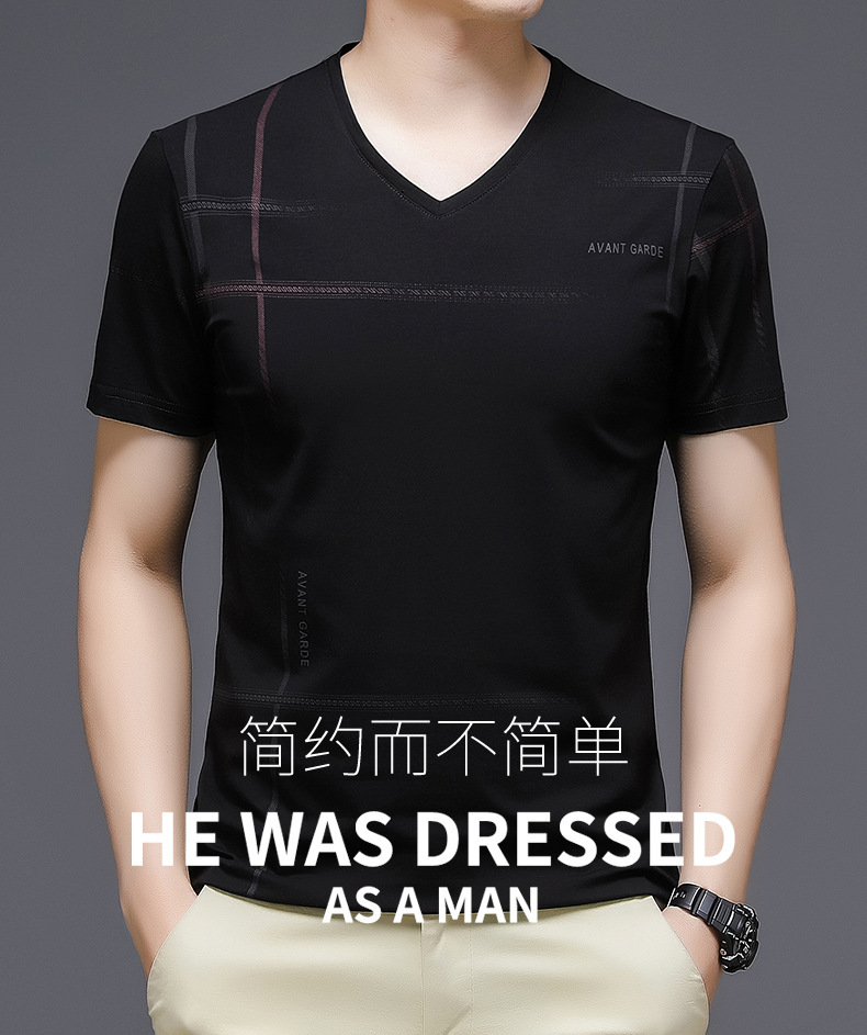 2024夏季新款冰丝短袖t恤男士圆领印花薄款韩版潮流上衣半袖体恤