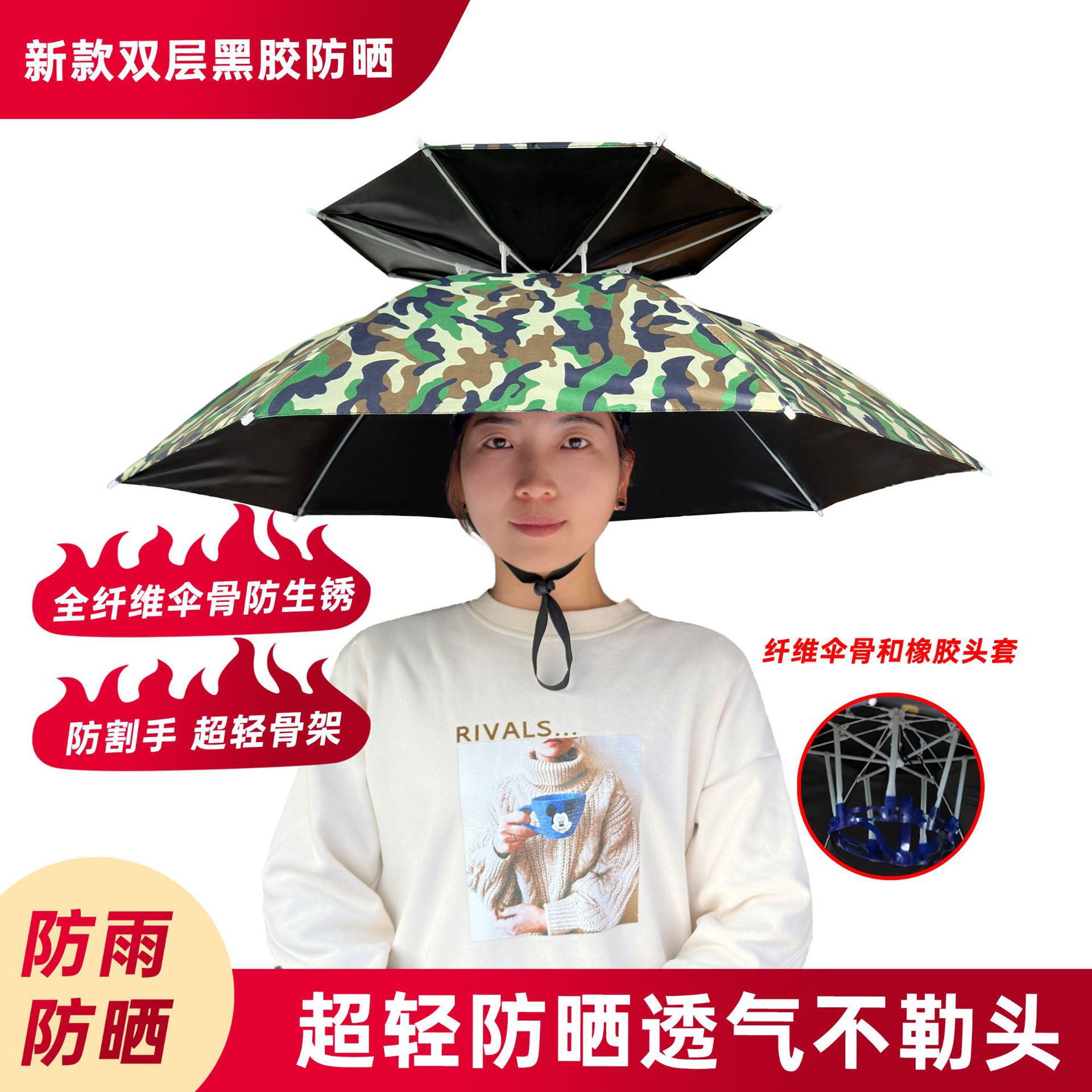 우산 모자 머리 장착 우산 모자 야외 차 따기 위생 선 스크린 모자 우산 접는 검은 접착제 낚시 우산 햇빛스토어 가기