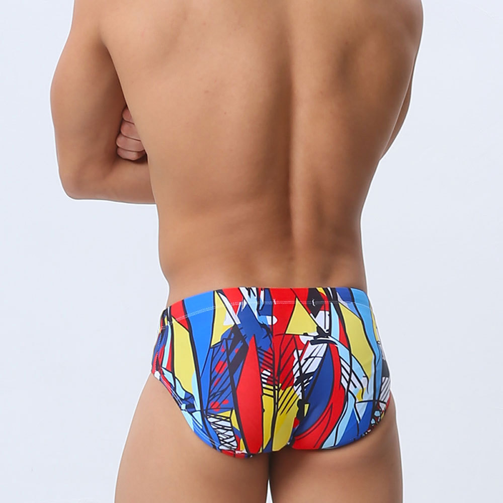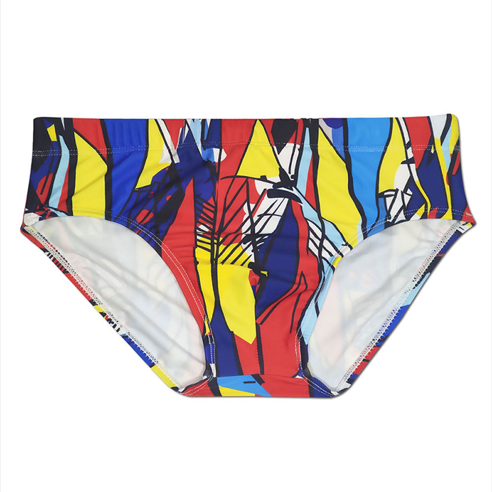 UXH 유럽과 미국의 예술 낙서 남자의 삼각형 수영 트렁크 유행 섹시한 해변 휴가 빠른 건조 대외 무역 브리프 남성
