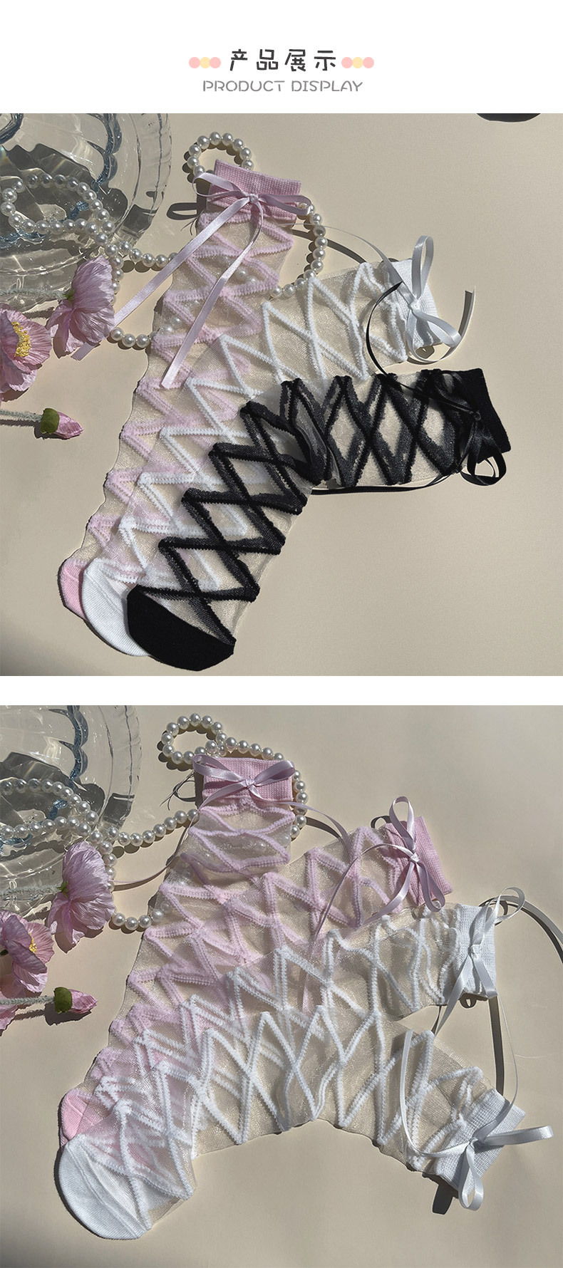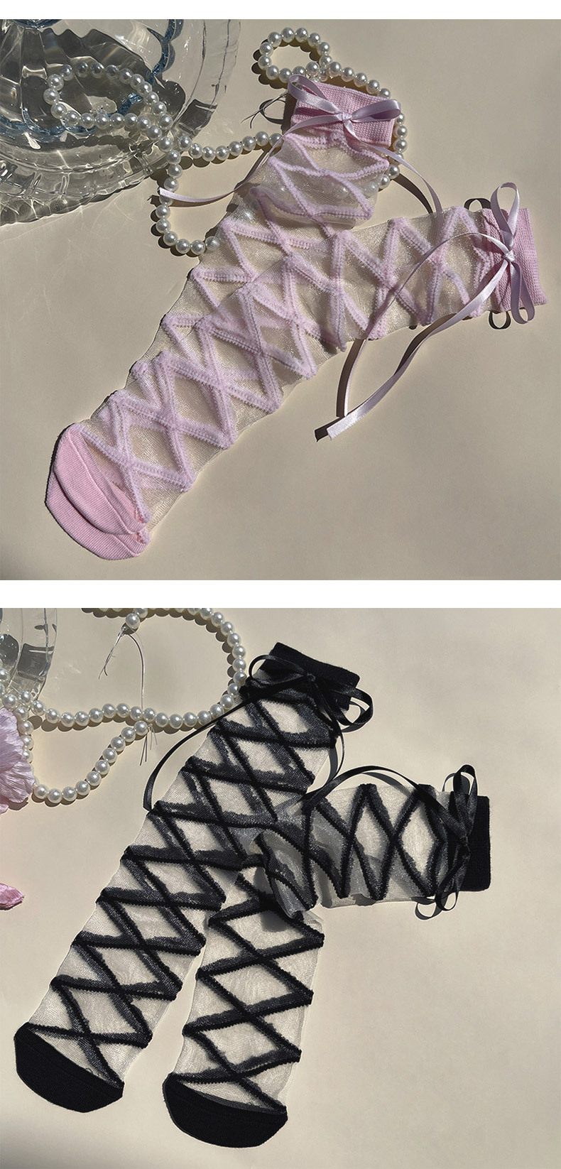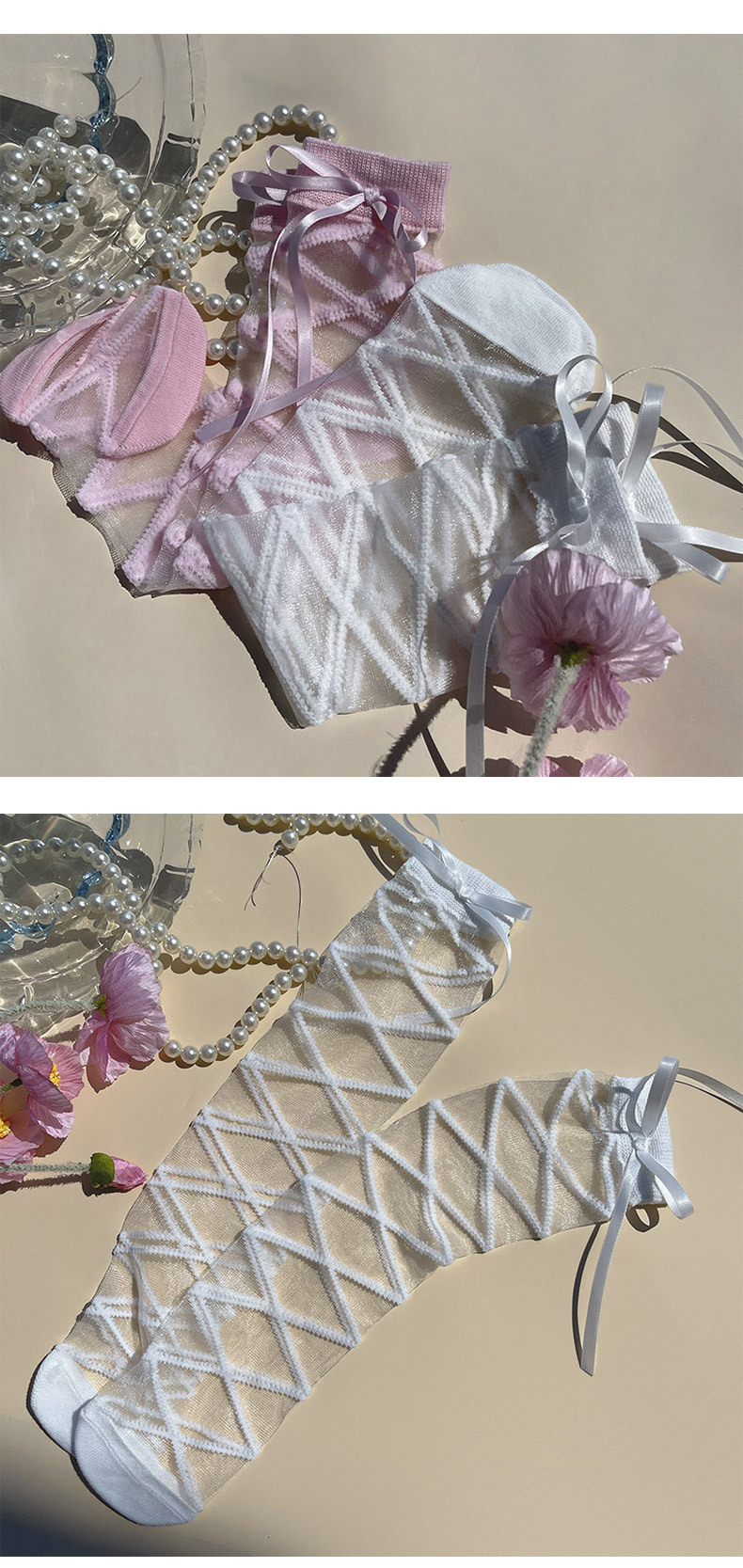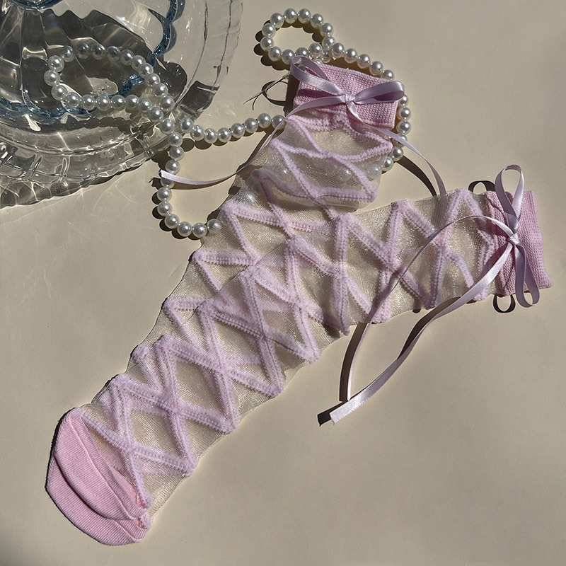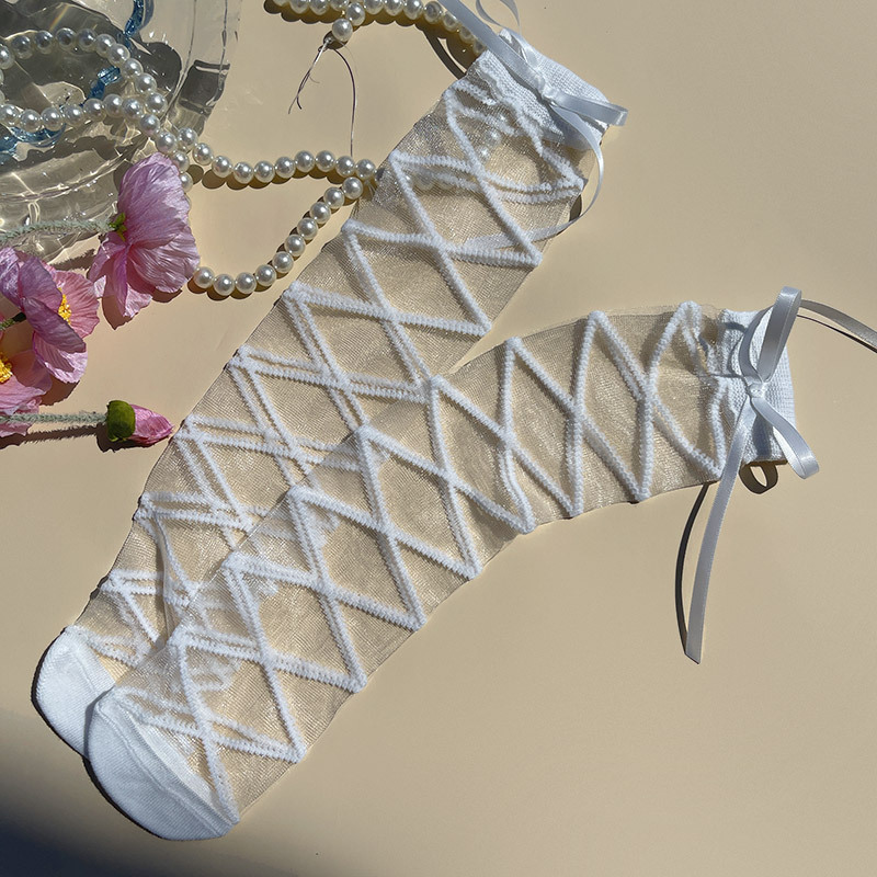 핫문 봄과 여름 새로운 도착 리본 스트랩 크리스탈 유리 실크 여성 어린이 아기의 중간 튜브 스택 양말스토어 가기
