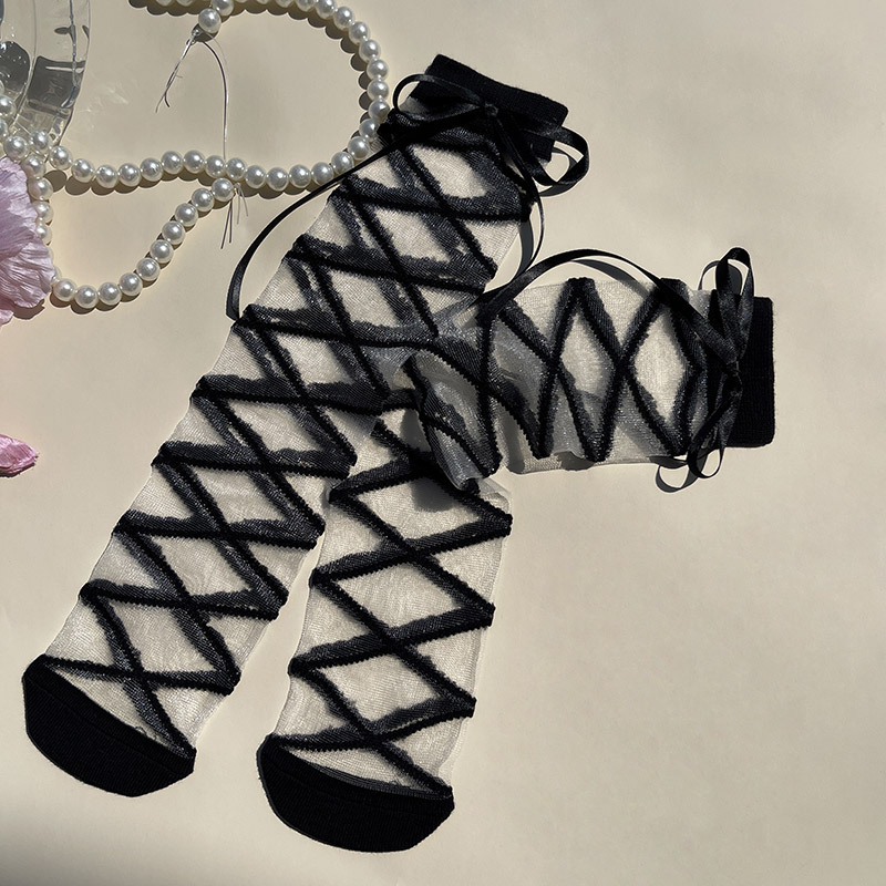 핫문 봄과 여름 새로운 도착 리본 스트랩 크리스탈 유리 실크 여성 어린이 아기의 중간 튜브 스택 양말