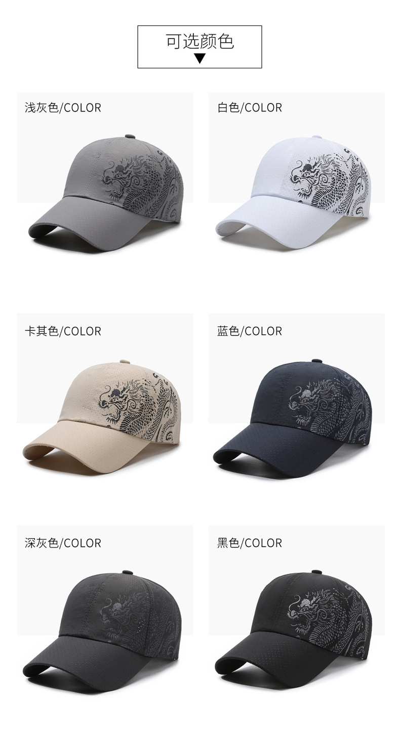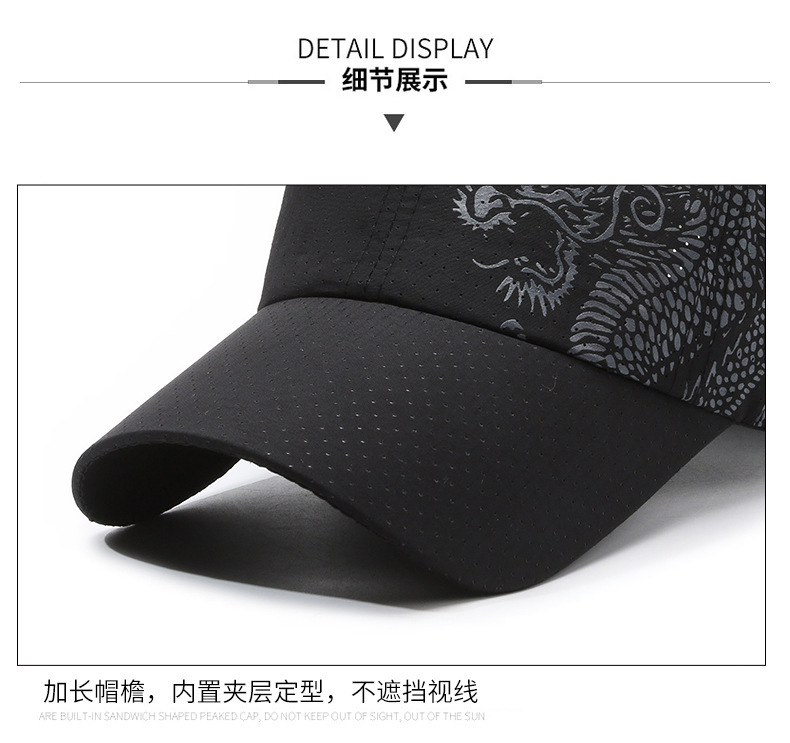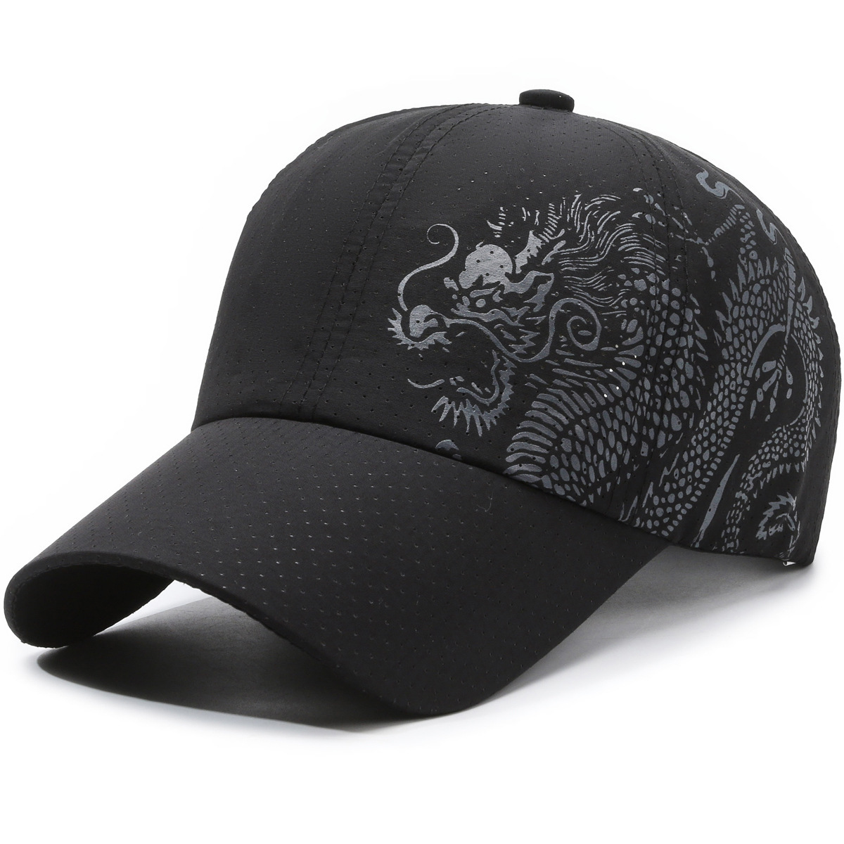 새로운 국가 스타일 중국 용 인쇄 야구 모자 여름 야외 선 스크린 스포츠 빠른 건조 모자 캐주얼 남성과 여성의 모자