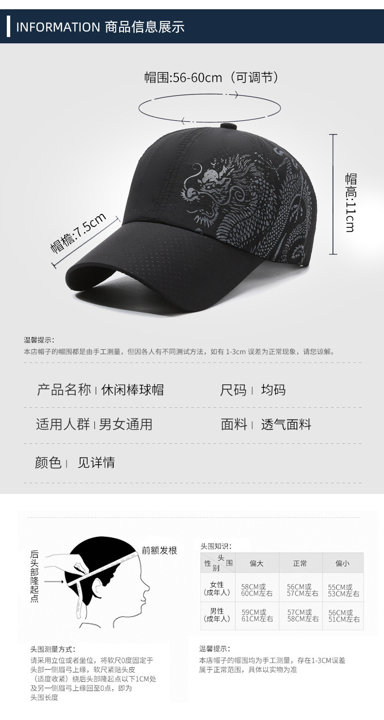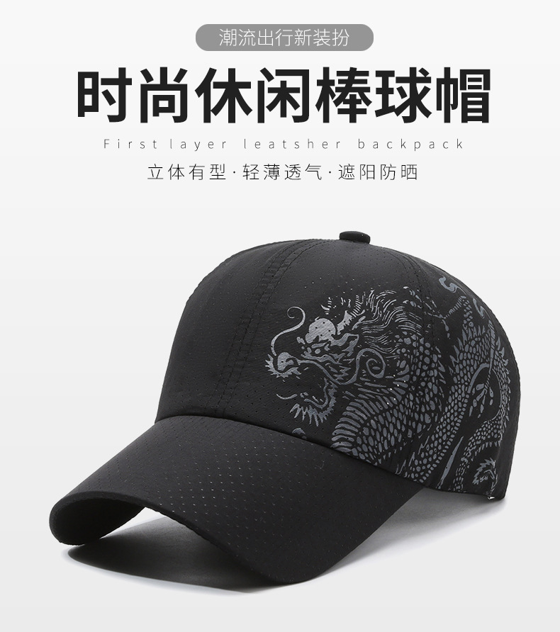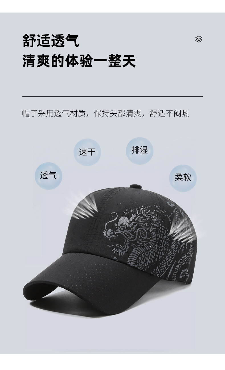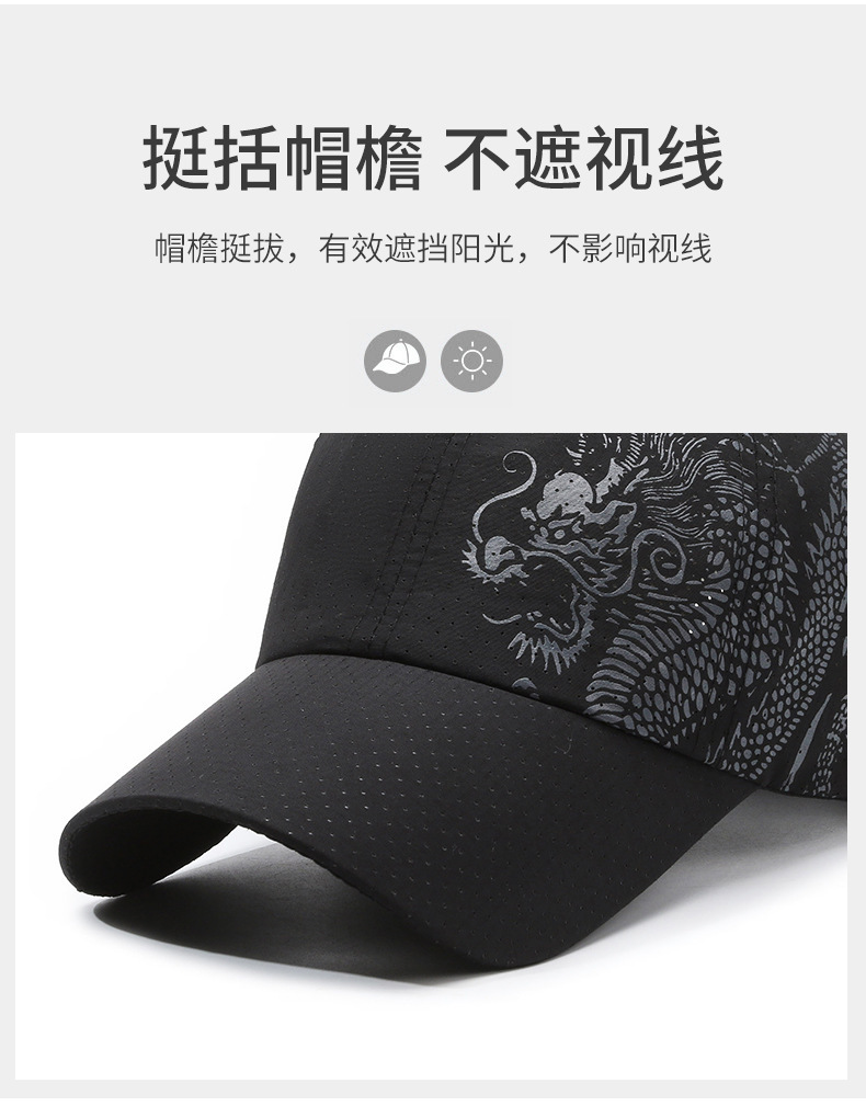 새로운 국가 스타일 중국 용 인쇄 야구 모자 여름 야외 선 스크린 스포츠 빠른 건조 모자 캐주얼 남성과 여성의 모자