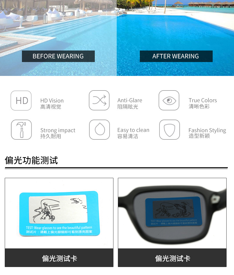 새로운 패션 국경 편광 선글라스 스퀘어 선글라스 클래식 운전 안경 안티 자외선 차양 안경 배치