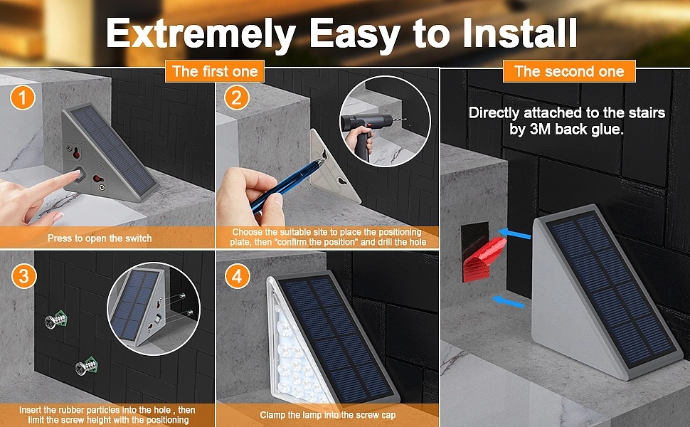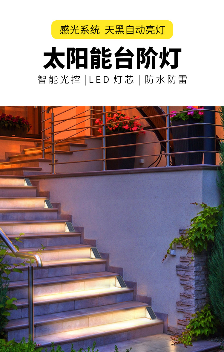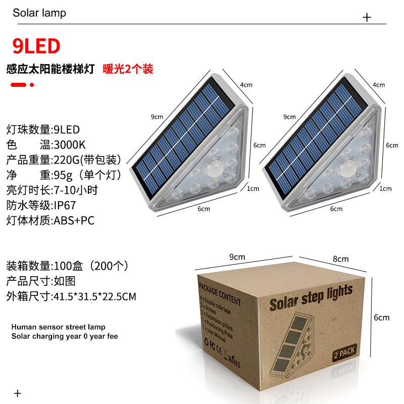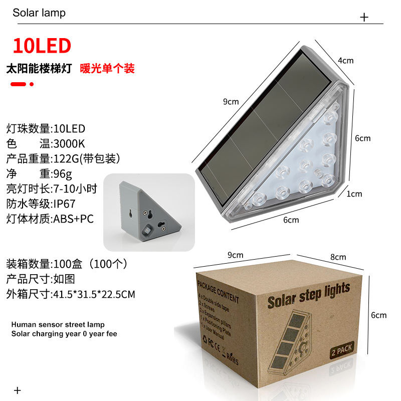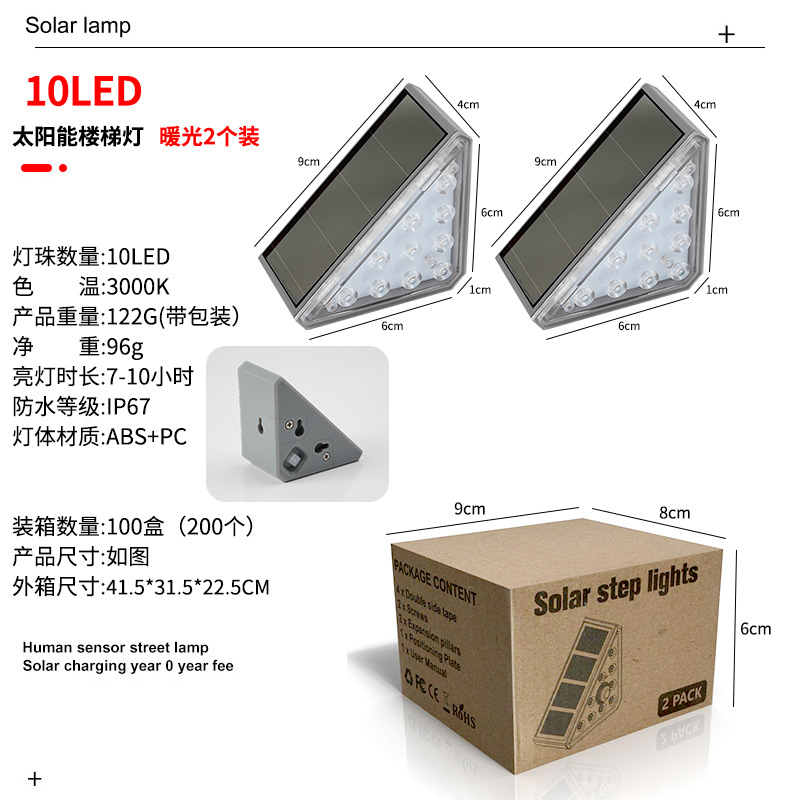 국경 간 야외 방수 삼각형 계단 조명 하이라이트 정원 트레일 조명 도난 방지 태양 계단 조명스토어 가기