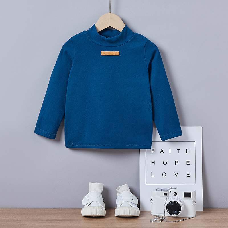 남아 및 여아용 아동용 보온 속옷, 아동용 심플 솔리드 컬러 코튼 탑이 있는 미드 하이 칼라 긴팔 독일 벨벳 바닥 셔츠