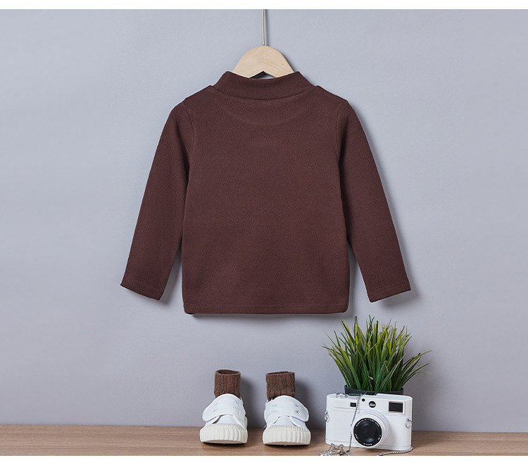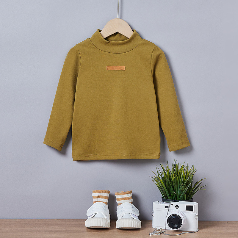 남아 및 여아용 아동용 보온 속옷, 아동용 심플 솔리드 컬러 코튼 탑이 있는 미드 하이 칼라 긴팔 독일 벨벳 바닥 셔츠스토어 가기