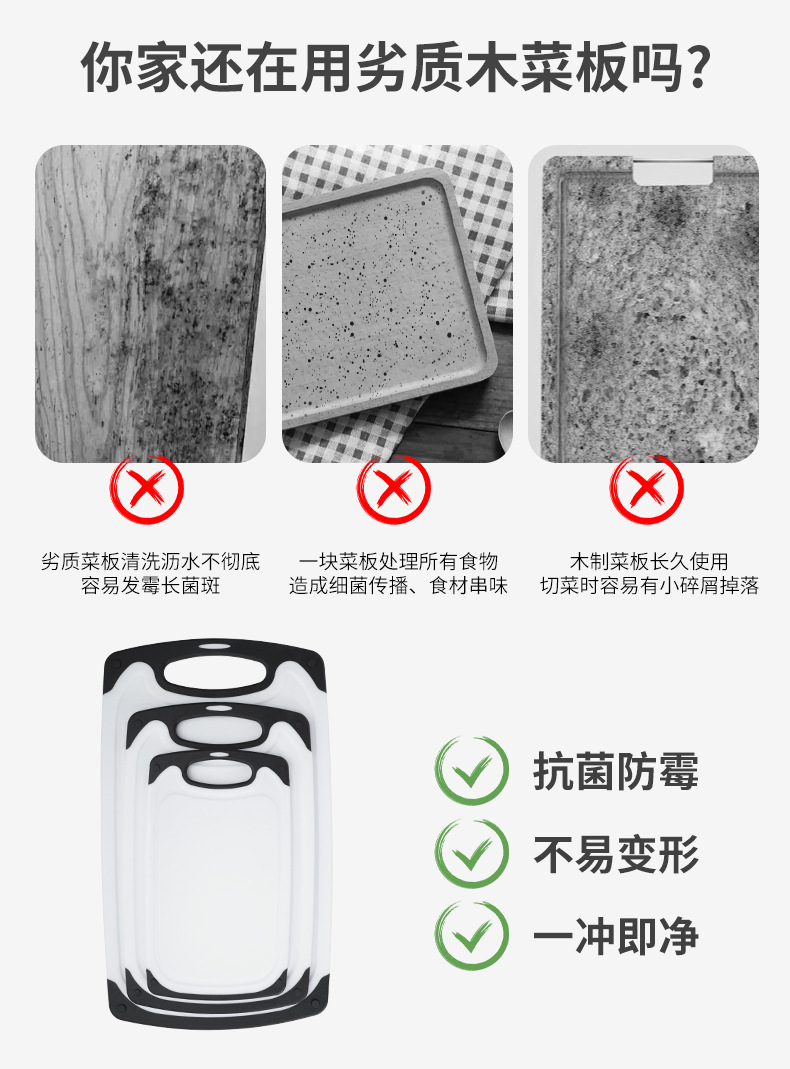 주방 도구 다기능 플라스틱 도마 3 피스 세트 미끄럼 방지 두꺼운 사각형 분류 도마스토어 가기